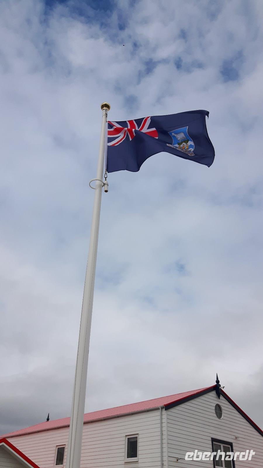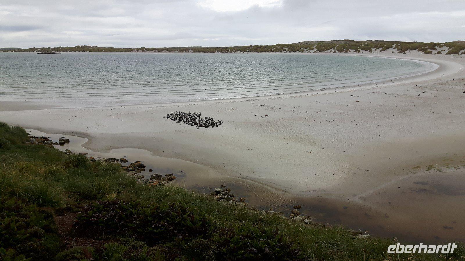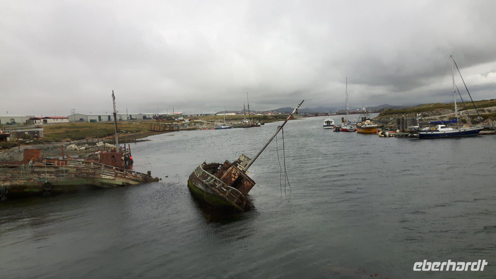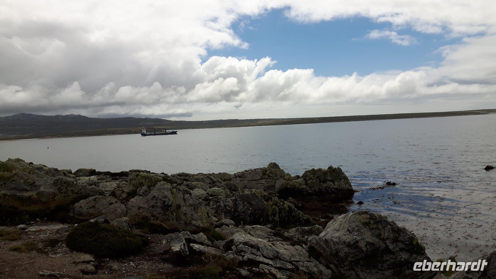 Wir ankern vor der Hauptstadt Stanley in einer schönen, geschützt gelegenen Bucht und lassen uns wieder von Tenderbooten an Land bringen. Wir verzichten heute auf einen örtlichen Guide und erkunden Falkland als Eberhardt Reisegruppe im Alleingang.