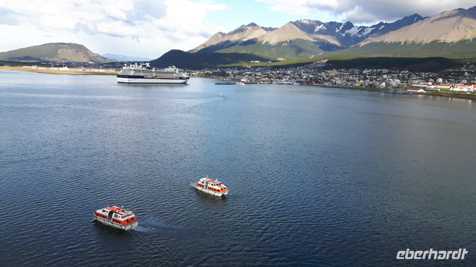 Wir erreichen die argentinische Stadt Ushuaia auf Feuerland am Morgen.