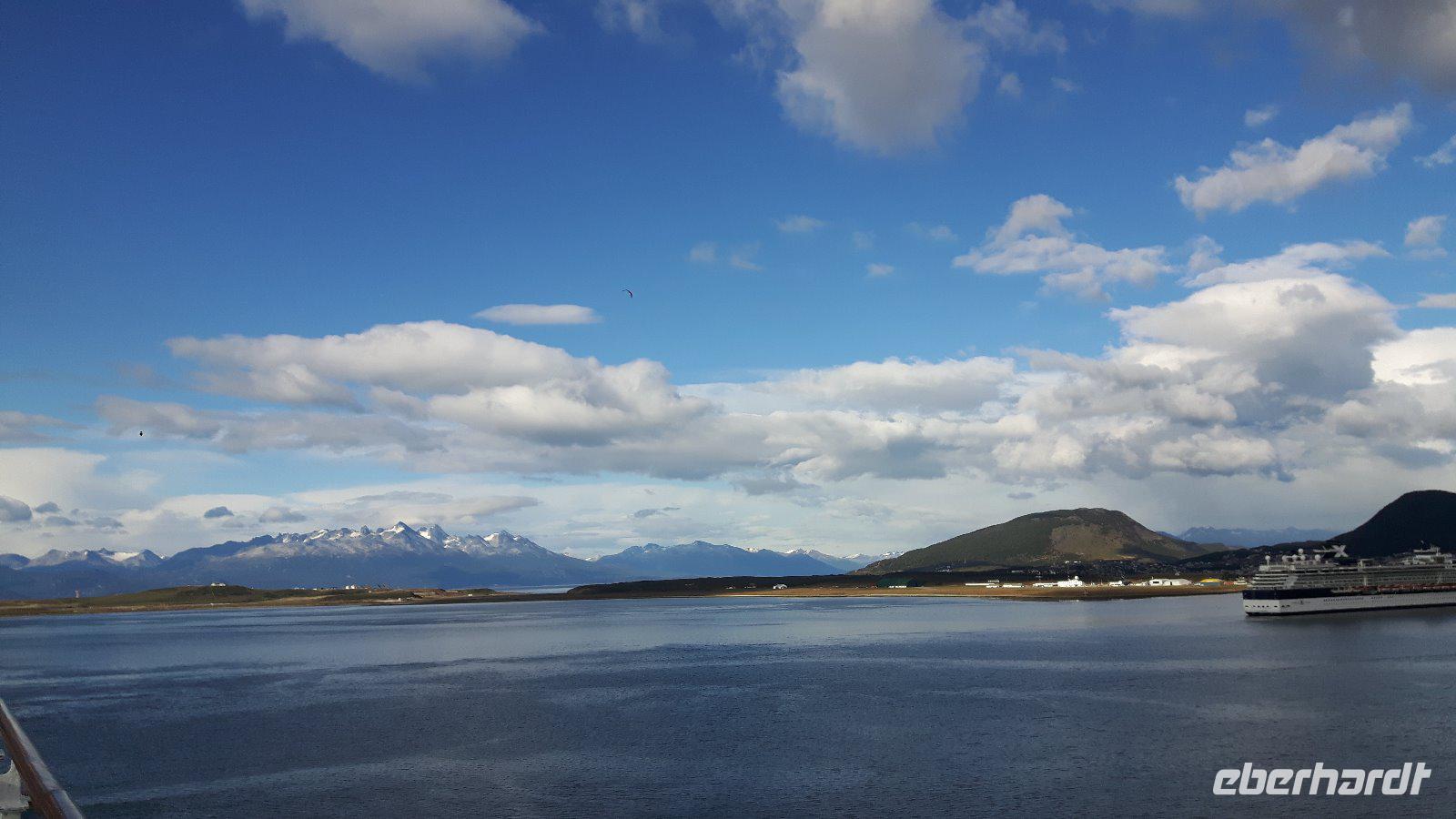 Nach dem Ablegen nimmt unser Kreuzfahrtschiff den Kurs westliche Magellanstraße auf.