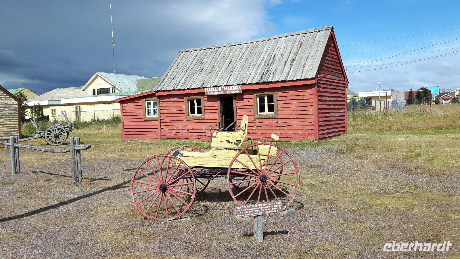 Weiter geht es zum Maggiorino-Borgatello-Museum (Salesianermuseum), welches das Leben der einheimischen Völker und dem Ökosystem im tiefen Süden bezeugt. Unter den zahlreichen Ausstellungsstücken Waffen der Ureinwohner Feuerlands und eine Nachbildung der „Höhle der Hände" (Cueva de las Manos). Auch das „Freilichtmuseum der Erinnerungen" erwartet uns; eine Sammlung antiker, aus Europa importierter Industrie- und Landwirtschaftsmaschinen, ein typisches Pionierhaus, einen rekonstruierten Schurschuppen sowie Fuhrwerke auf hölzernen Rädern wurden hier zusammengetragen. Wieder am Hafen angekommen endet unsere geführte Tour, so haben wir noch Zeit die Eindrücke bei einem Stadtspaziergang, der natürlich wieder in einem Pub endet, zu vertiefen.