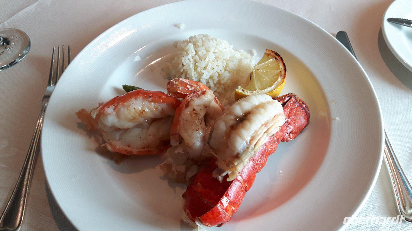 Am Nachmittag heißt es dann sich für den Abend zurecht zu machen; der zweite Galaabend unserer Reise steht heute an. Das ohnehin alle Abende sehr gute Dinner ist heute entsprechend exklusiv; unter anderem stehen Hummerschwanz und Riesengarnelen auf der Speisekarte.
