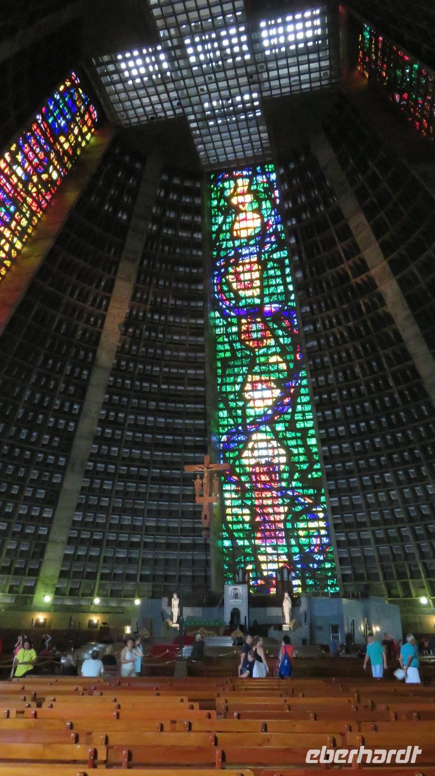 Aber irgendwie stimmten die Wetterbedingungen nicht so ganz und Rio empfing uns mit Regen und grauem statt blauem Himmel. Aber wir hatten unseren eigenen Sonnenschein dabei. Iolanda unsere Reiseleiterin, empfing uns mit so viel Freundlichkeit, dass wir uns unheimlich wohl fühlten. Wir änderten heute direkt das Programm und fuhren somit zunächst erst einmal ins Hotel. Nach dem Mittagessen verschoben wir die Auffahrt zum Zuckerhut auf den nächsten Tag und unternahmen stattdessen eine kleine Stadtrundfahrt. Zunächst beeindruckte uns die Kathedrale Metropolitana. Wenn man es nicht wüsste, würde man vermutlich nicht auf die Idee kommen, dass es sich bei diesem imposanten Gebäude um eine Kathedrale handelt. Anschließend ging es zum wohl berühmtesten Stadion der Welt, dem Maracana. Neben diesem Höhepunkt fuhren wir auch noch am Sambadrom, welches von Oskar Niemeyer erbaut wurde, vorbei. Im Regen sah leider alles ein wenig trist aus und so verkürzten wir die Stadtrundfahrt und hofften auf ein besseres Wetter am nächsten Tag. Am Abend gingen einige noch einmal raus und ließen sich das erste brasilianische Bier und na klar, den ersten Caipirinha schmecken.