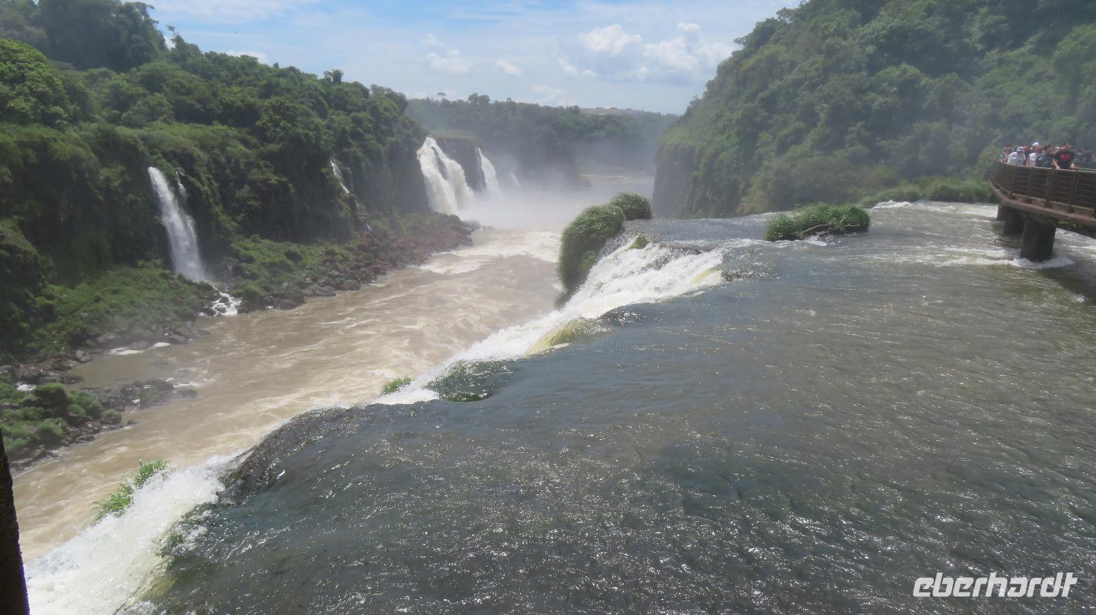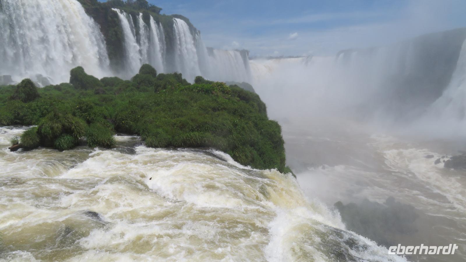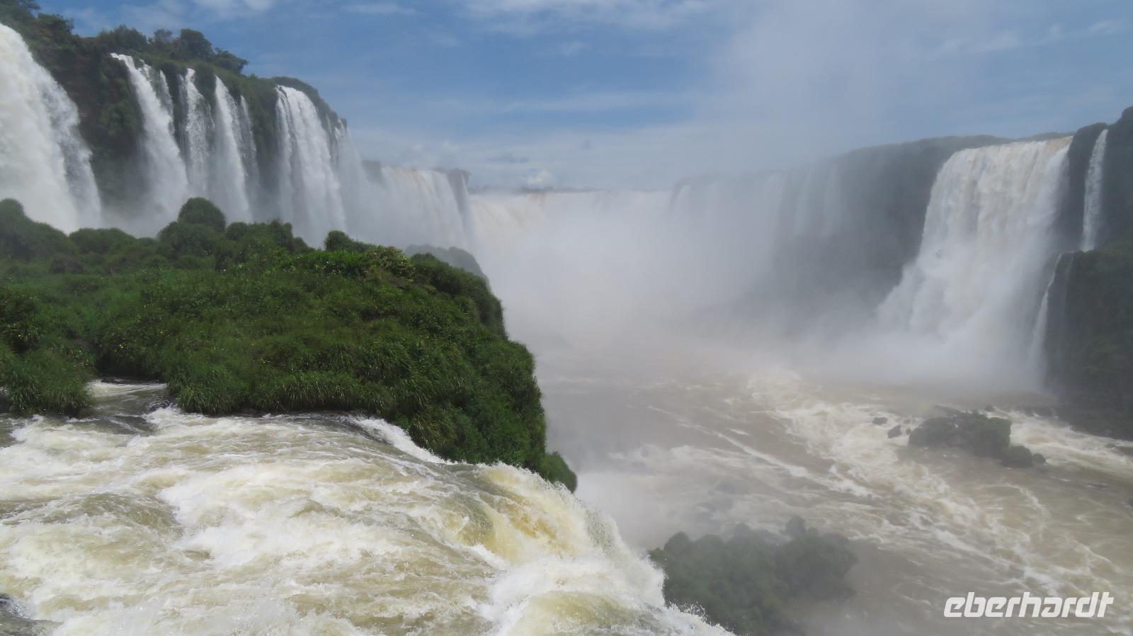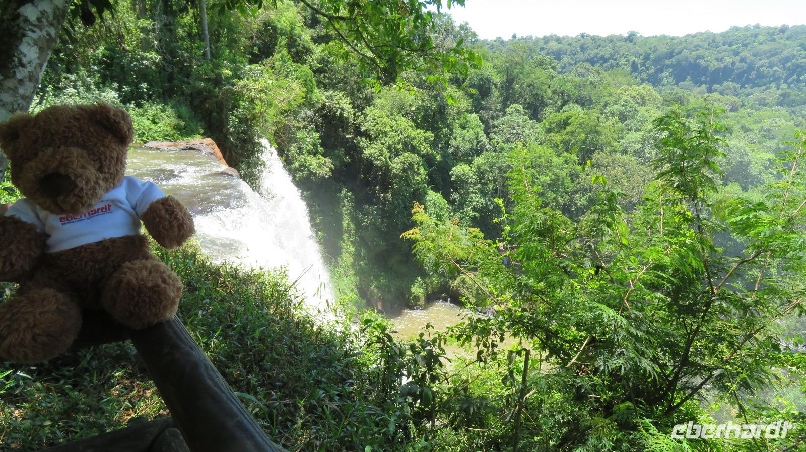 Nach wenigen Meter stiegen auch die aktiven Gäste zu und die Bahn brachte uns bis zum Rand der Teufelsschlucht. Die letzten Meter mussten wir zu Fuß bewältigen und so standen wir über dem Abgrund der Schlucht und die Wassermassen schossen an uns vorbei. Wirklich beeindruckend. Auch wirklich beeindruckend sind die Wege, die man hier laufen kann. Diese führen immer wieder an „kleineren" Wasserfälle vorbei und man erlebt hier eine unglaubliche Flora und Fauna. Insbesondere begeisterten mich hier die vielen farbenfrohen Schmetterlinge und Vögel, die frei herumspringenden Affen und die Schildkröte, die sich die Sonne auf dem Panzer schienen ließ.