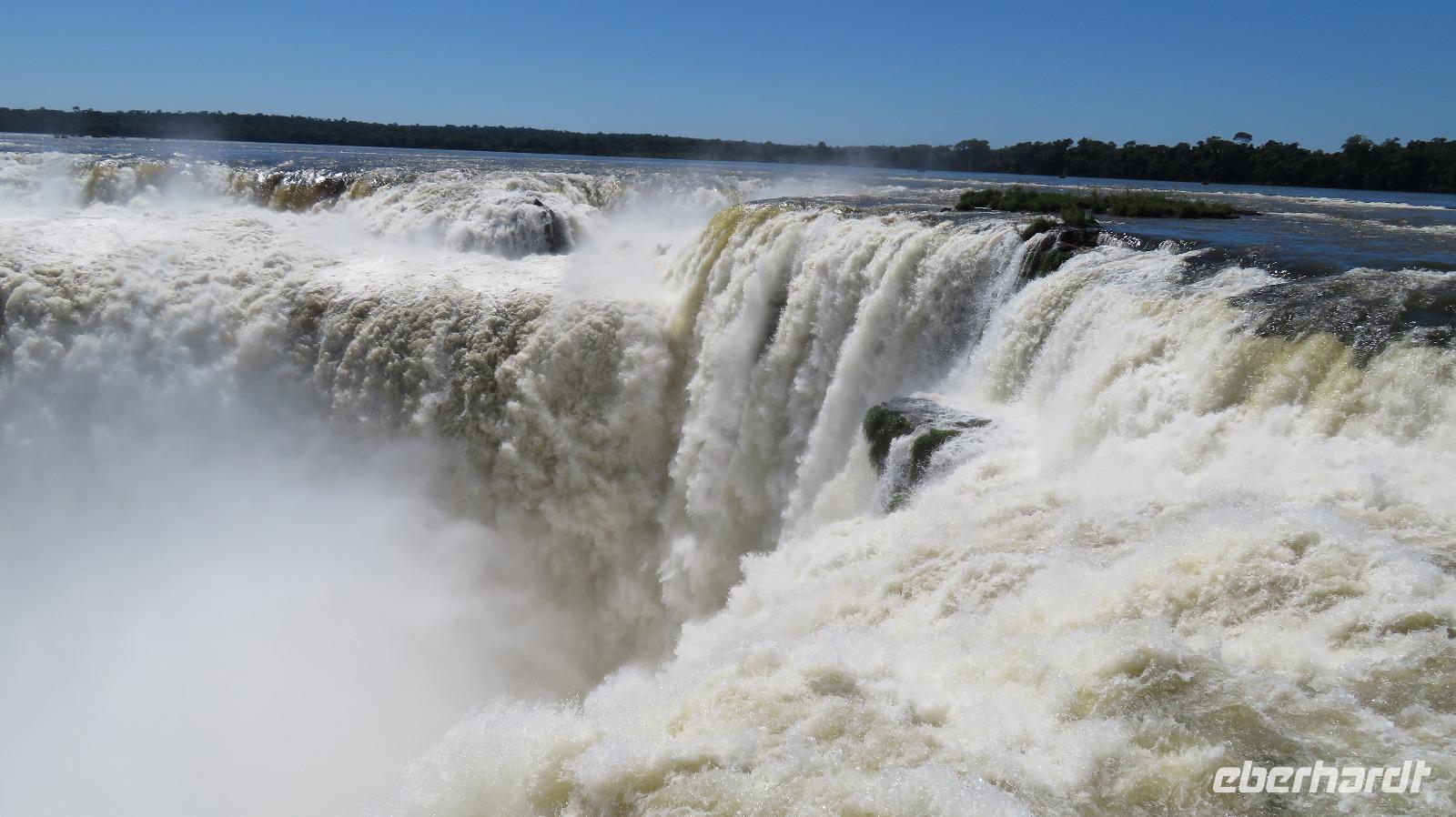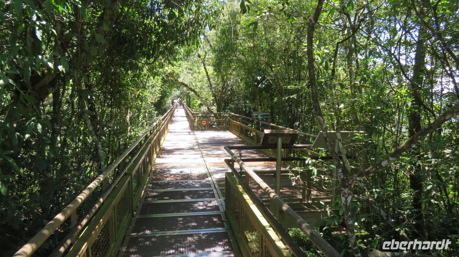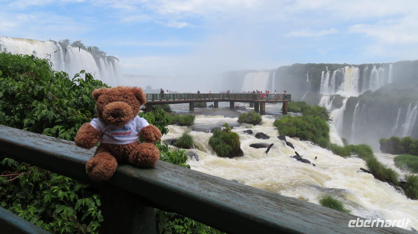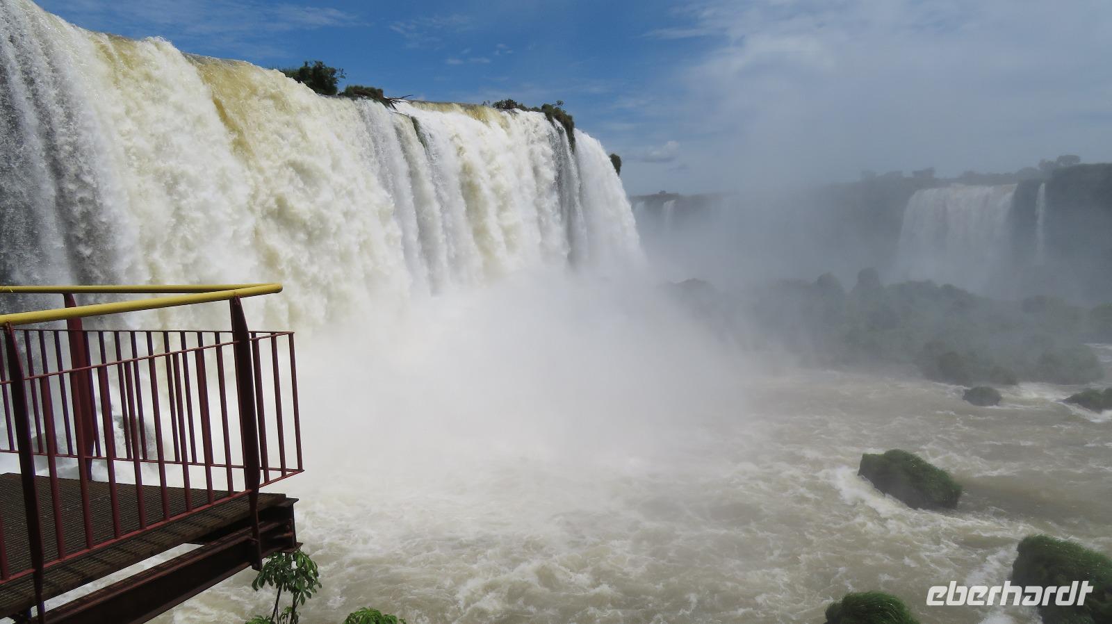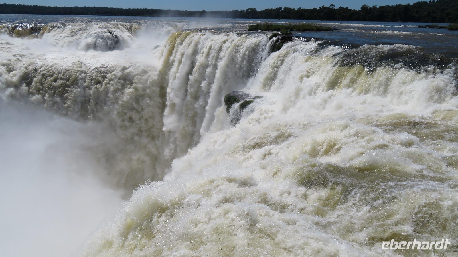 Nach wenigen Meter stiegen auch die aktiven Gäste zu und die Bahn brachte uns bis zum Rand der Teufelsschlucht. Die letzten Meter mussten wir zu Fuß bewältigen und so standen wir über dem Abgrund der Schlucht und die Wassermassen schossen an uns vorbei. Wirklich beeindruckend. Auch wirklich beeindruckend sind die Wege, die man hier laufen kann. Diese führen immer wieder an „kleineren" Wasserfälle vorbei und man erlebt hier eine unglaubliche Flora und Fauna. Insbesondere begeisterten mich hier die vielen farbenfrohen Schmetterlinge und Vögel, die frei herumspringenden Affen und die Schildkröte, die sich die Sonne auf dem Panzer schienen ließ.