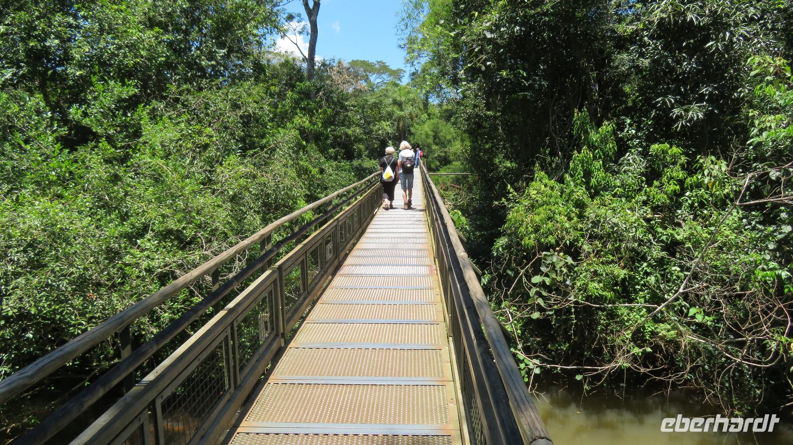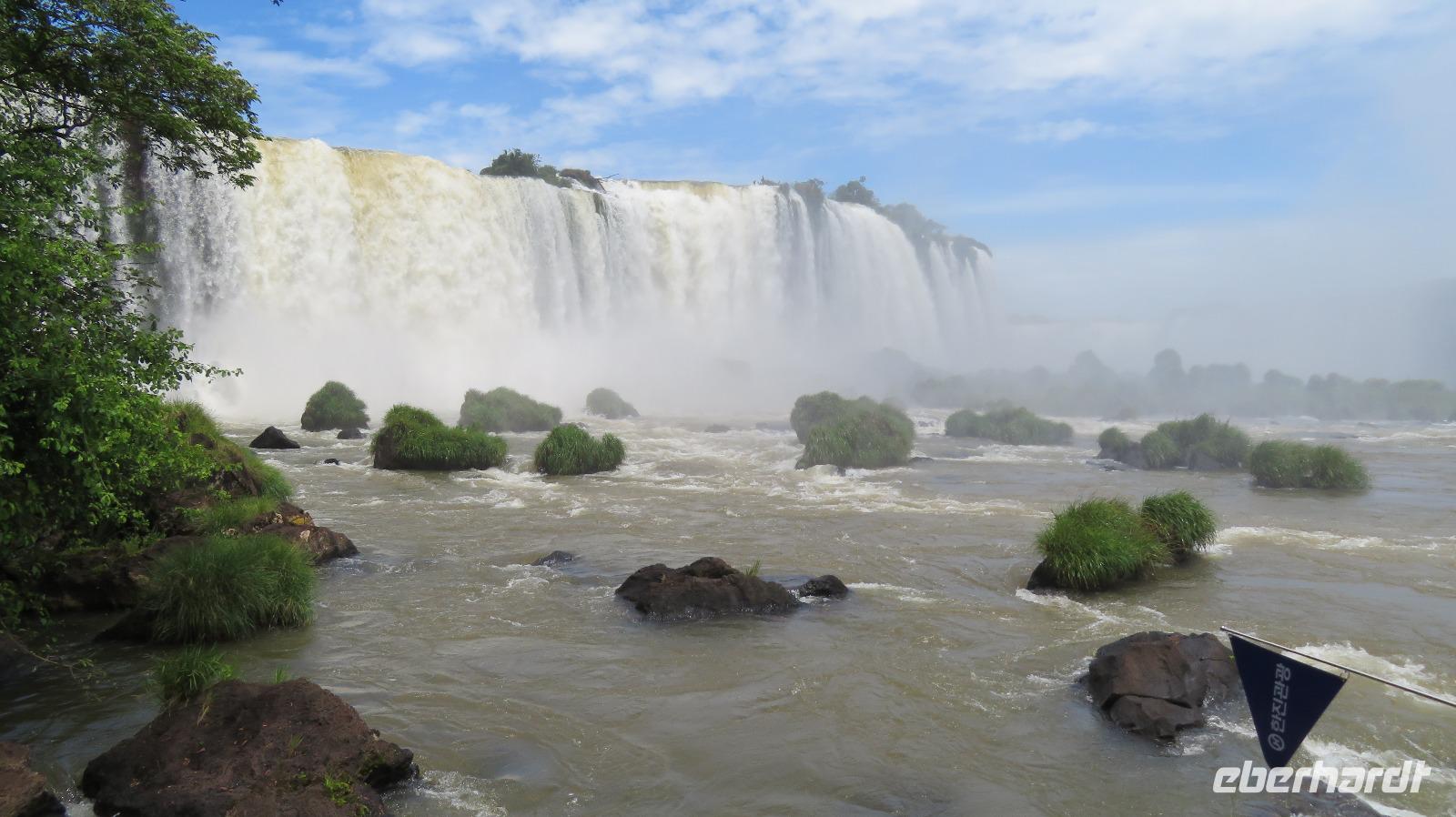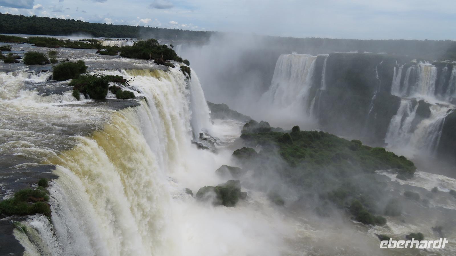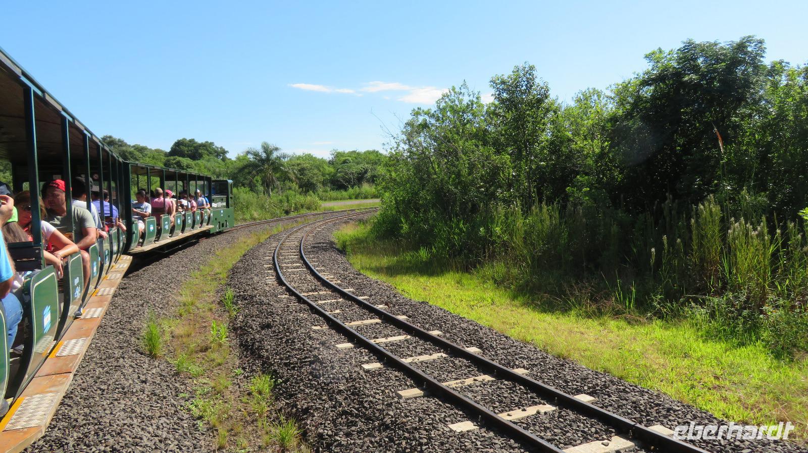 Nach wenigen Meter stiegen auch die aktiven Gäste zu und die Bahn brachte uns bis zum Rand der Teufelsschlucht. Die letzten Meter mussten wir zu Fuß bewältigen und so standen wir über dem Abgrund der Schlucht und die Wassermassen schossen an uns vorbei. Wirklich beeindruckend. Auch wirklich beeindruckend sind die Wege, die man hier laufen kann. Diese führen immer wieder an „kleineren" Wasserfälle vorbei und man erlebt hier eine unglaubliche Flora und Fauna. Insbesondere begeisterten mich hier die vielen farbenfrohen Schmetterlinge und Vögel, die frei herumspringenden Affen und die Schildkröte, die sich die Sonne auf dem Panzer schienen ließ.