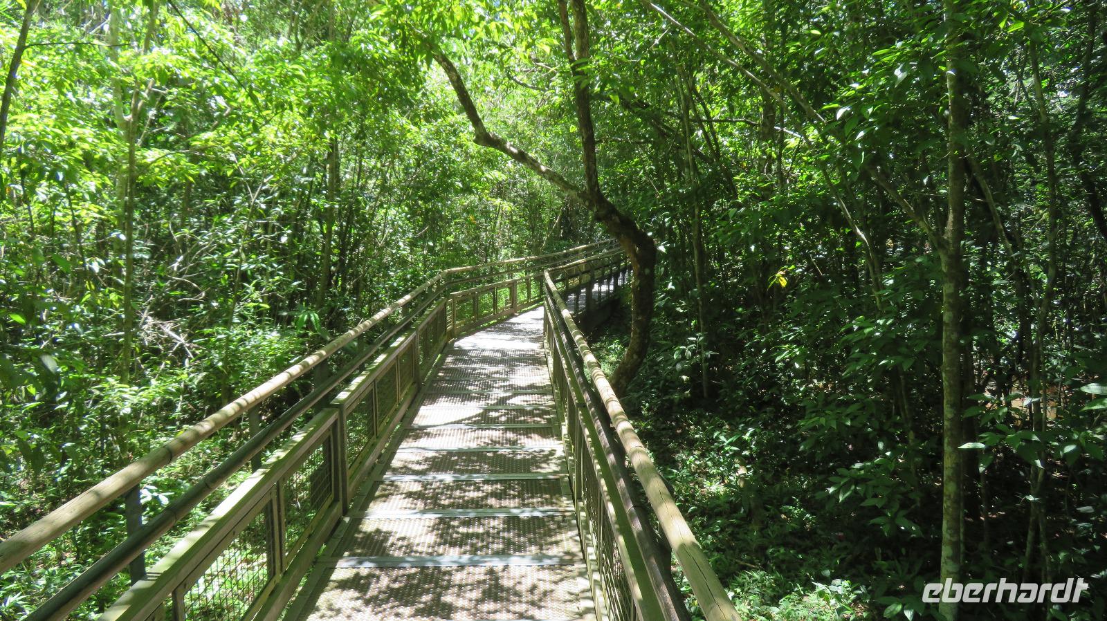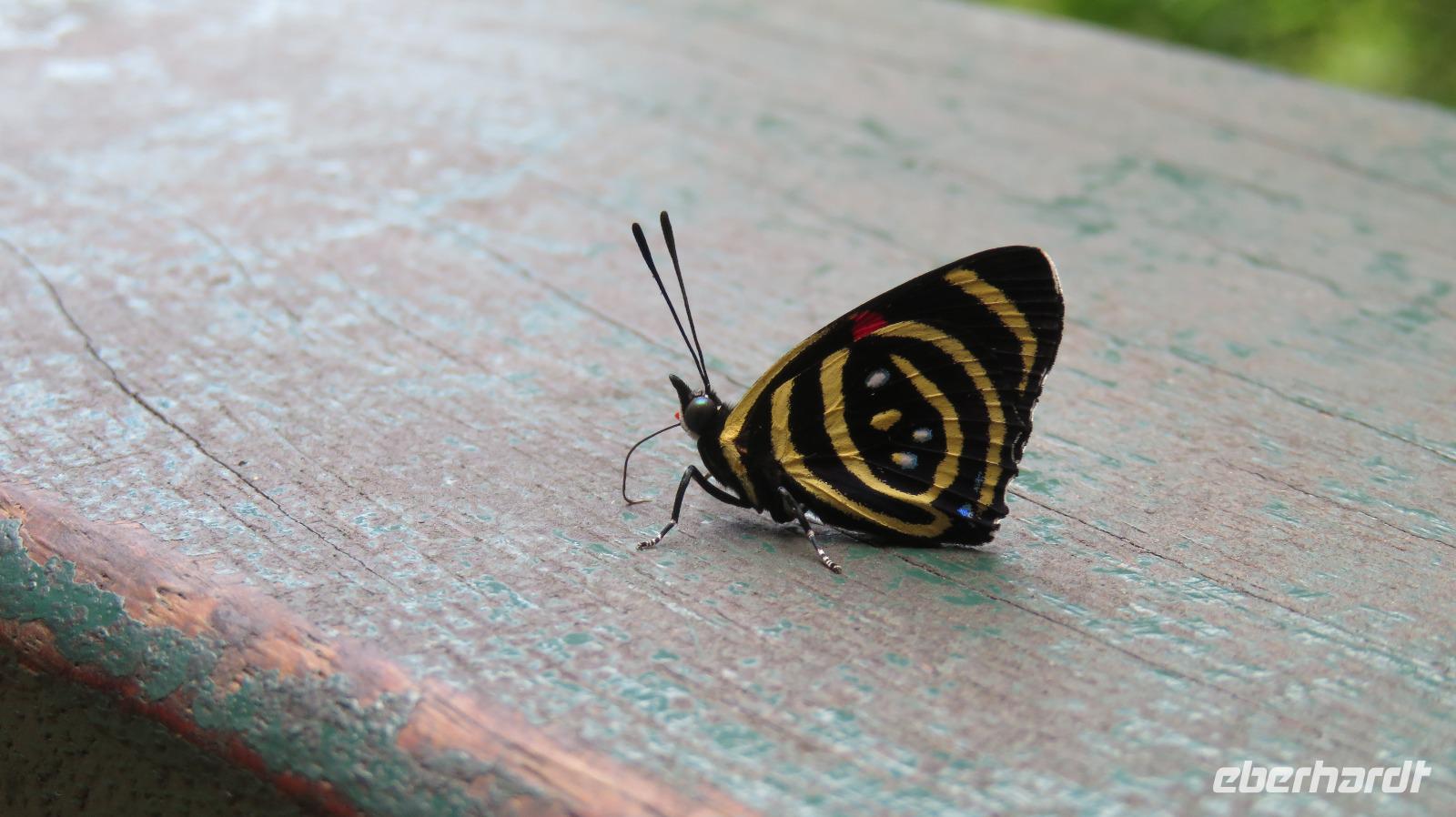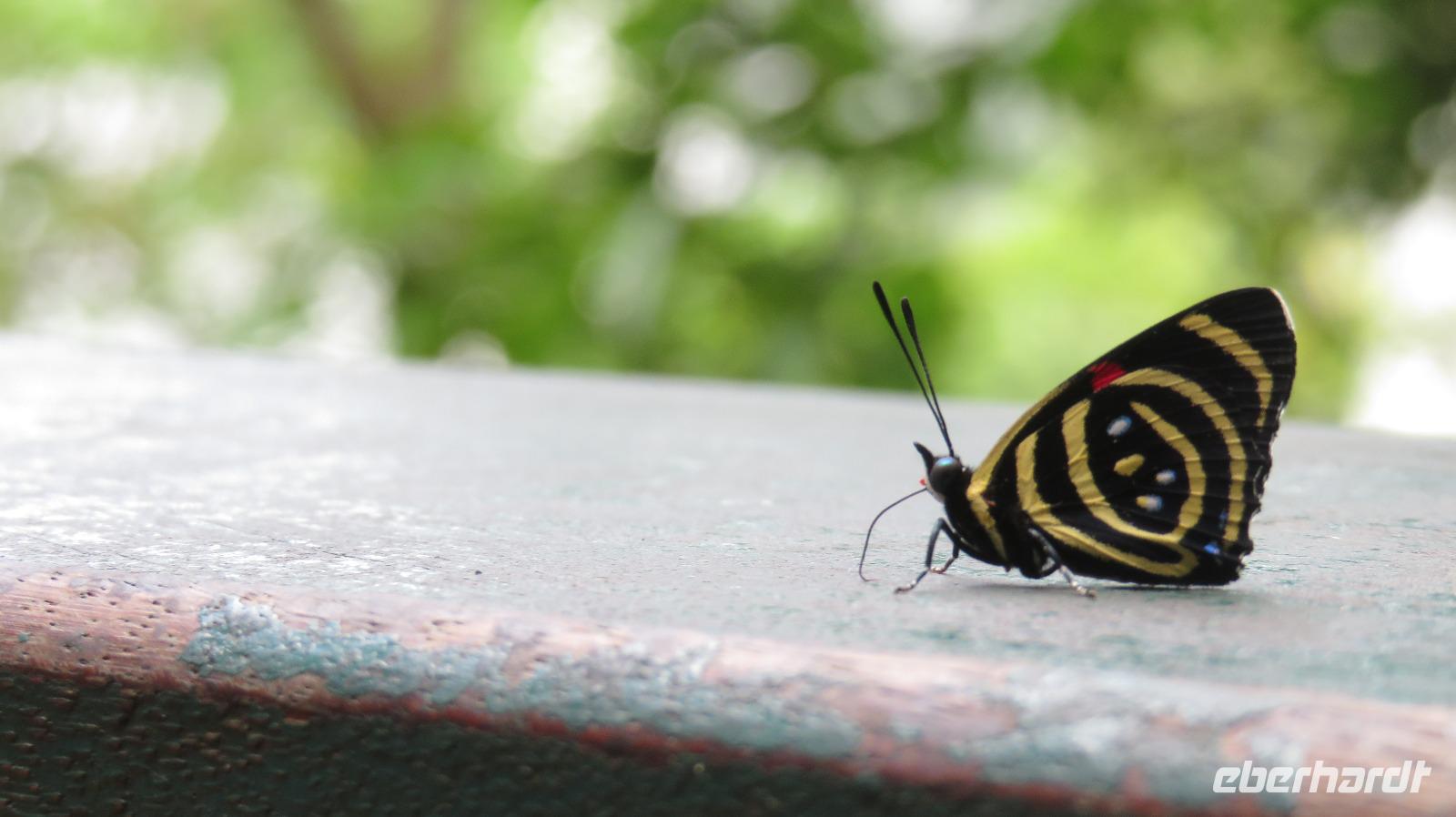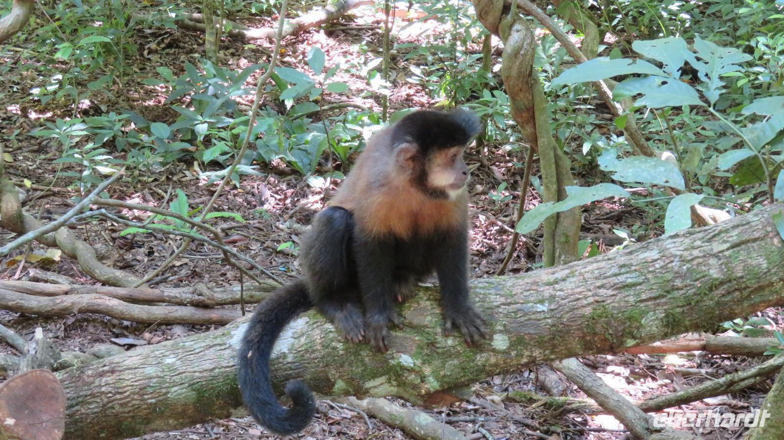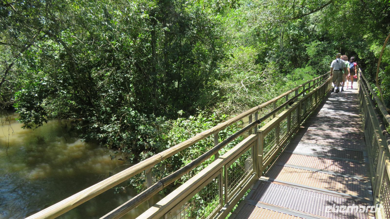 Nach wenigen Meter stiegen auch die aktiven Gäste zu und die Bahn brachte uns bis zum Rand der Teufelsschlucht. Die letzten Meter mussten wir zu Fuß bewältigen und so standen wir über dem Abgrund der Schlucht und die Wassermassen schossen an uns vorbei. Wirklich beeindruckend. Auch wirklich beeindruckend sind die Wege, die man hier laufen kann. Diese führen immer wieder an „kleineren" Wasserfälle vorbei und man erlebt hier eine unglaubliche Flora und Fauna. Insbesondere begeisterten mich hier die vielen farbenfrohen Schmetterlinge und Vögel, die frei herumspringenden Affen und die Schildkröte, die sich die Sonne auf dem Panzer schienen ließ.
