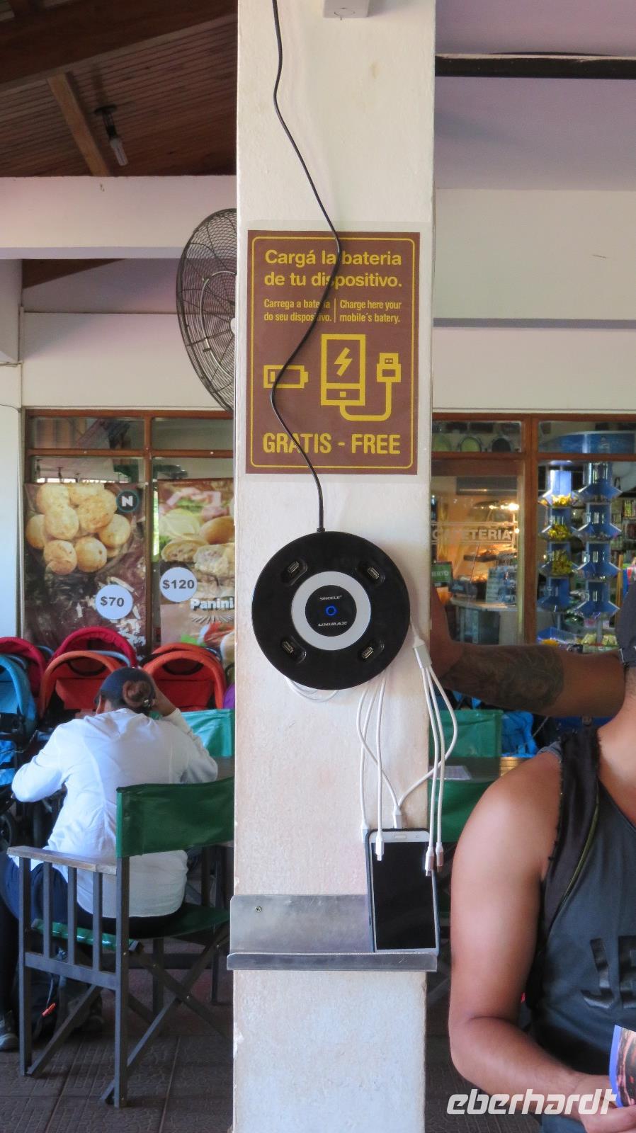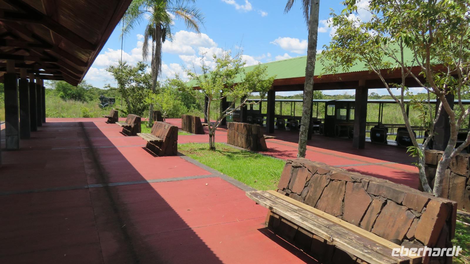 Nachdem wir die Wasserfälle gestern von vorne und von unten gesehen haben, wollten wir sie heute auf der argentinischen Seite von oben betrachten. Die brasilianische Ausreise verlief wie am Schnürchen, aber bei der argentinischen Seite, ging es doch sehr spanisch zu. Nachdem wir brav in der Reihe gestanden hatten und gleich dran waren, mussten wir kurz vor dem Ziel die Schlange wechseln und in ein anderes Gebäude gehen. Hier saßen ungefähr 10 Polizisten umher und tranken Mate Tee und aßen Brötchen mit Marmelade. Einer kümmerte sich dann um uns und die anderen beobachteten das Ganze und schauten sich neue Sachen auf dem Smartphone an. Auch unser Grenzbeamter musste sich natürlich erst einmal die Neuigkeiten anschauen, ins Brötchen beißen und aus dem allgemeinen Mate Becher ein Schlückchen nehmen. So ist das eben hier. Nachdem wir alle wieder die Pässe in den Händen hielten, ging es zum Nationalpark. Hier konnte man wählen zwischen Eisenbahnfreund oder aktiv freund. Ich, der meist Rad- und Wanderreise begleite, wählte....die Eisenbahn :)