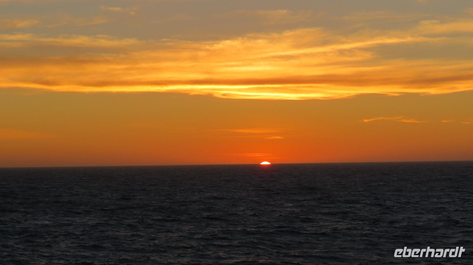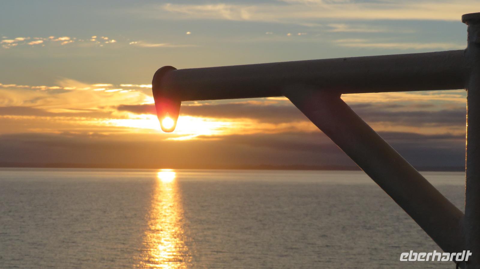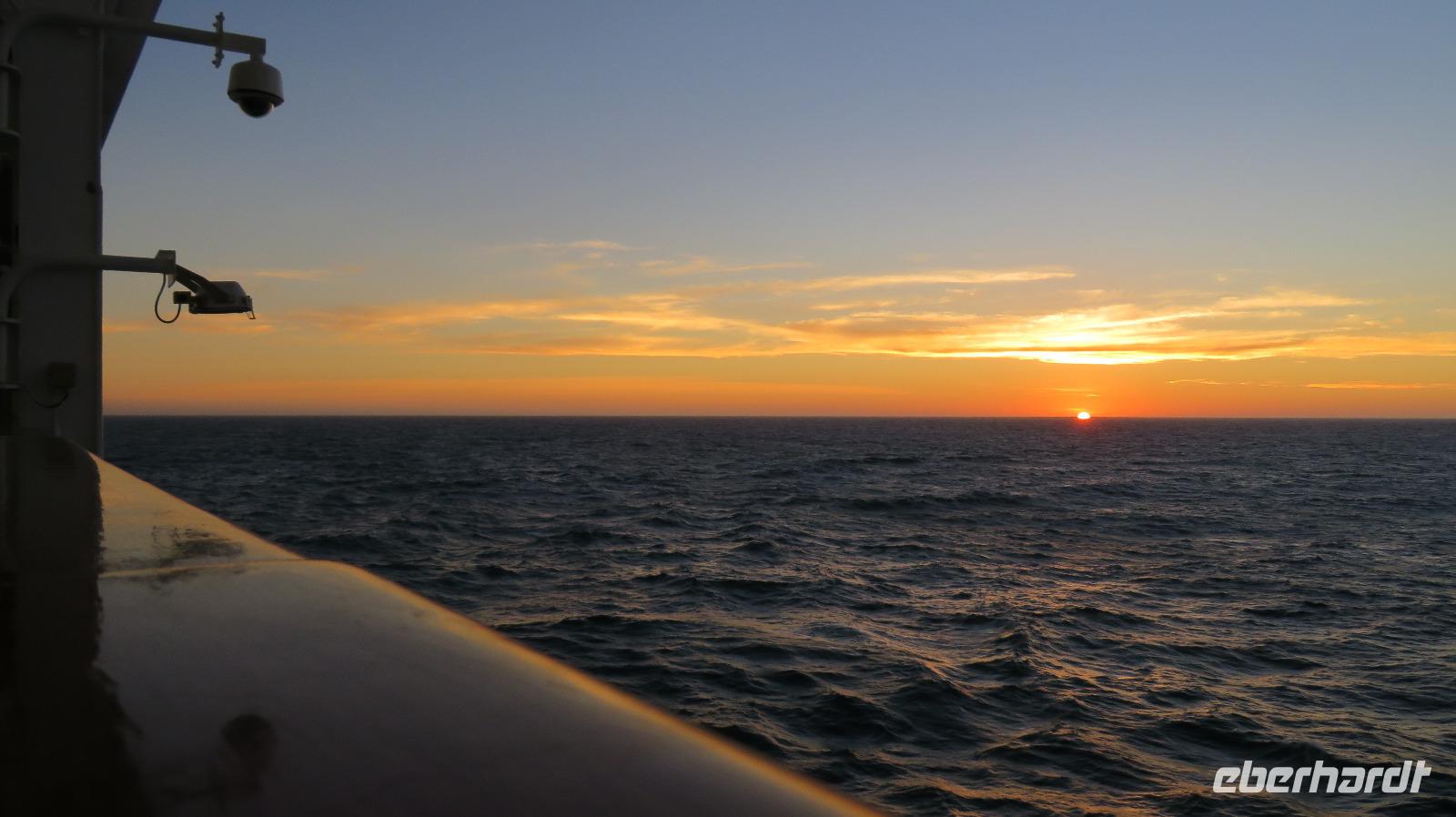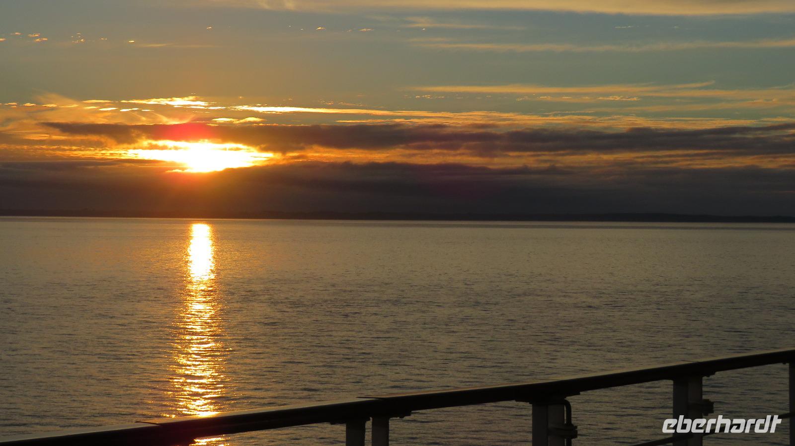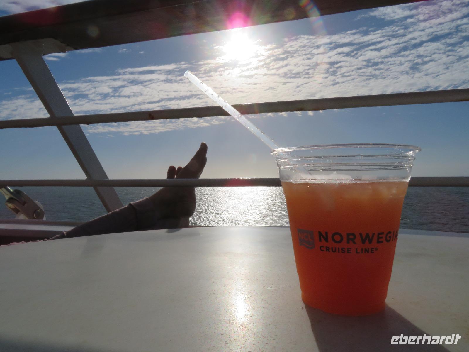 Juhu, die Sonne lacht und das Meer ist annähernd spiegelglatt. So lässt sich doch ein Tag auf See ausgiebig genießen. Heute wird nochmal alles auf dem Schiff ausprobiert und zeitgleich Adios gesagt. So wird hier und da ein Cocktail getrunken, nochmal getestet, ob das Softeis genauso lecker schmeckt, wie in den vergangenen Tagen und ob die Sauna immer noch Dampf hat. Gegen 17:30 Uhr versammelt sich wieder die Sherlock Holmes Gemeinschaft und löst Geschichten rund um spektakuläre Ereignisse und kuriose Morde. Nebenbei spielen wir auch noch gemeinschaftlich das Quiz vom Schiff und Fragen uns immer mehr, wer das eigentlich wissen soll. Nichtsdestotrotz haben wir unsere Bonuspunkte durch ehrliches spielen und minimales schummeln voll bekommen und können uns am Abend „atemberaubende" Gewinne abholen. Nach dem letzten Abendessen auf See, müssen wir dann alle Koffer vor die Tür stellen, um sie dann morgen wieder an Land entgegen zu nehmen. Zumindest hoffen wir auf ein Wiedersehen.