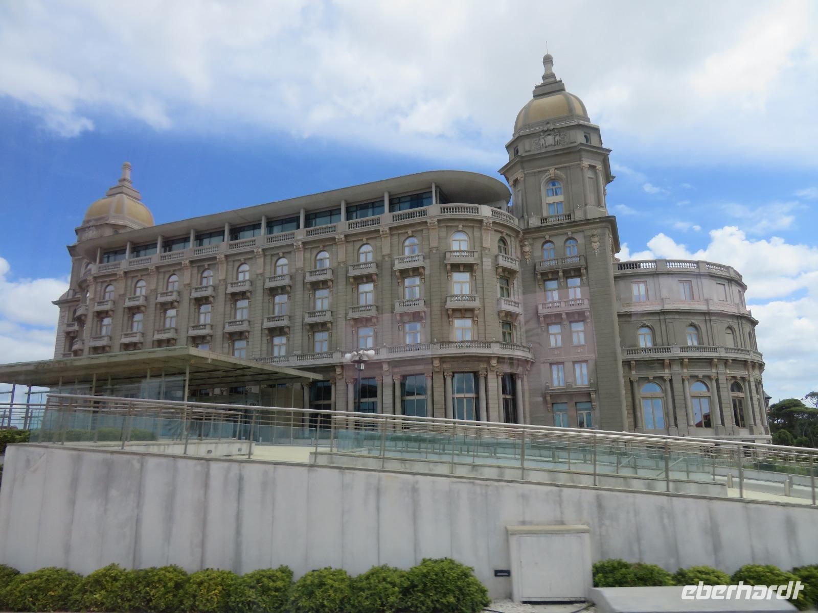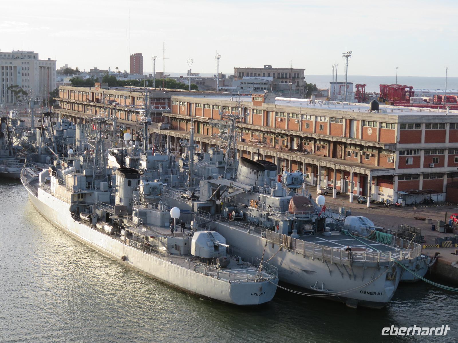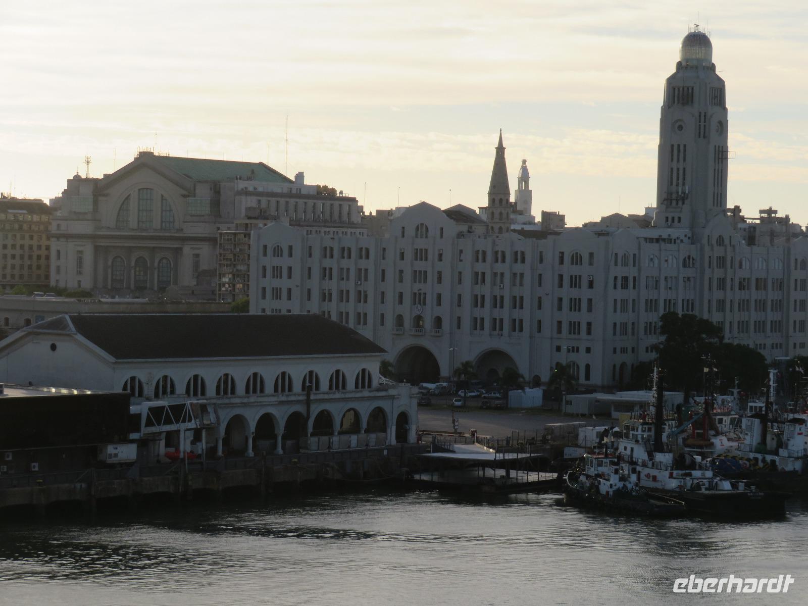 Nachdem wir die erste Nacht auf dem Schiff verbracht haben, hieß es Leinen fest und an Land...Montevideo wartet bereits auf uns. Unsere Reiseleiterin Kathrin heißt uns herzlich willkommen und zeigt uns bereits nach wenigen Metern die Reste der berühmten Graf Spee. Anschließend ging es in die 1726 gegründete Stadt. Montevideo wurde letztes Jahr zur Stadt, mit der höchsten Lebensqualität in Südamerika gewählt. Warum die Wahl gerade auf diese Stadt gefallen ist, erschließt sich mir allerdings nicht gleich. Aber ich bin ja auch nur Besucher und kein Einwohner. Neben dem Parlamentsgebäude, dem traditionsreichen Fußballstadion sehen wir noch das Wohnhaus des amtierenden Präsidenten und beobachten die Passanten mit ihren Thermoskannen. Bereits in Iguazu ist mir das aufgefallen. Eine überaus große Anzahl an Personen trägt immer eine Thermoskanne umher, um das Nationalgetränk, den Mate Tee überall zu genießen. Zum Nachmittag verlassen einige Gäste noch einmal das Schiff und laufen in das angrenzende Viertel und dessen Markthalle. Die Markthalle ist einfach beeindruckend. Sie ist mehr oder weniger zweigeteilt. Auf der kleinen Seite gibt es kleine Geschäfte und auf der anderen Seite brutzeln über offenem Feuer die dicken Steaks, riesige Würste, halbe Hühner und der Duft ist umwerfend. Zurück auf dem Schiff entern wir die Eistheke und lassen die Seele bis zum Abendessen bei einem oder zwei, drei, vier... Cocktails baumeln.