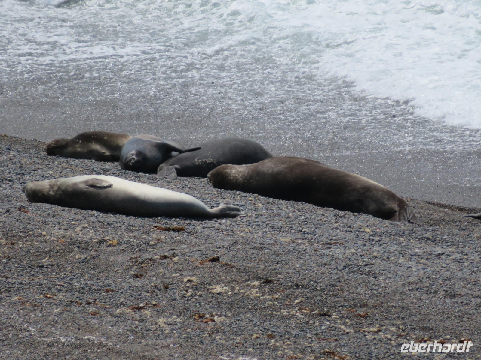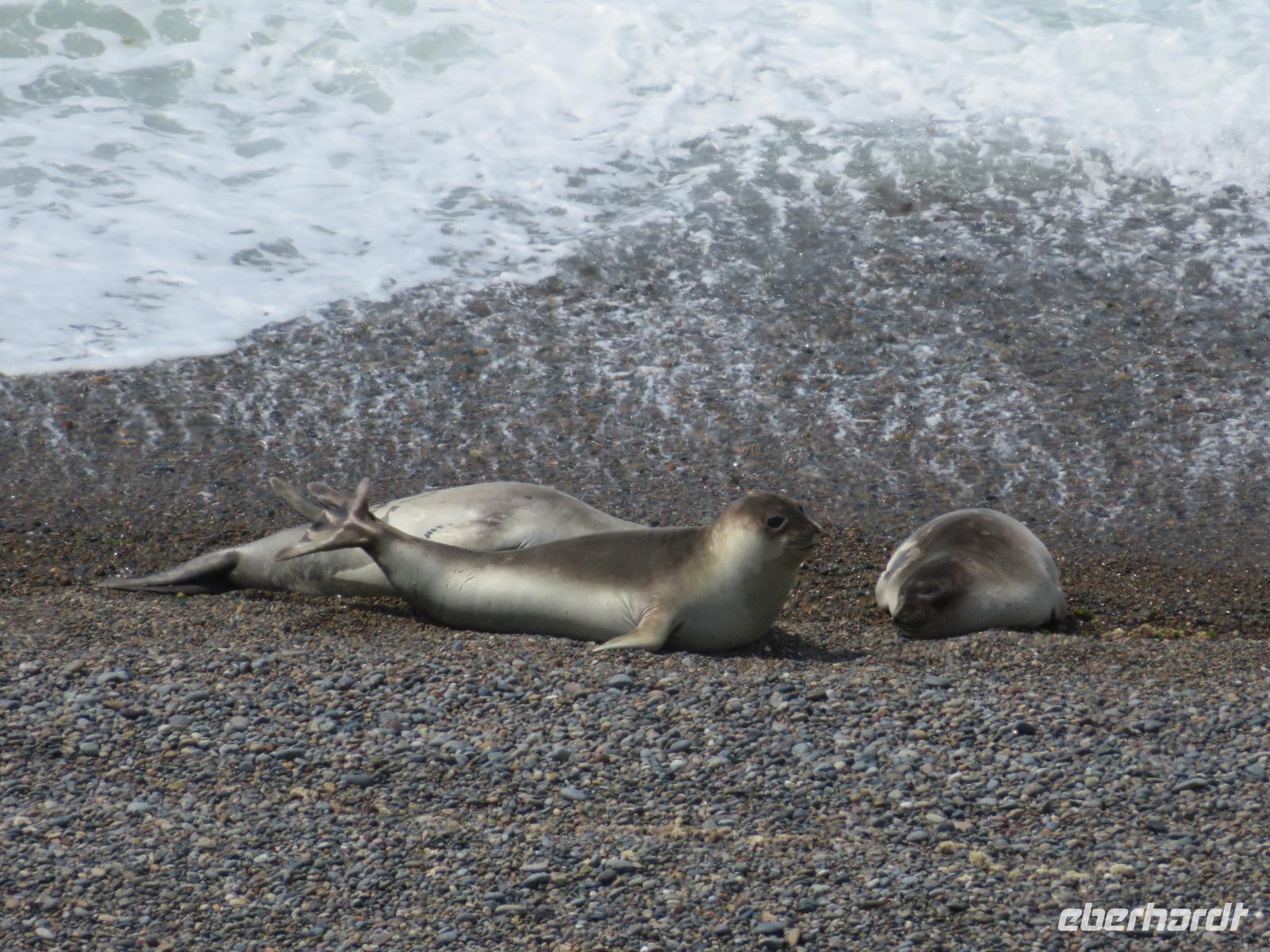 Nach einem entspannten Tag auf See, geht es heute wieder an Land. Das Schiff hält in dem kleinen Örtchen Puerto Madryn und unsere Reiseleiterin steht bereit, um uns in Empfang zu nehmen. Was haben wir heute für ein Glück, dass uns Mariana die Halbinsel Valdes näher bringt. Sie hat so eine witzige und charmante Art an sich, dass es ein wahres Vergnügen ist, mit ihr unterwegs sein zu dürfen. Zunächst fahren wir zur Touristeninformation und hier ist das Highlight entweder das Gerippe eines Wales oder das öffentliche Wlan. Je nachdem wie man die Prämissen setzt. :) Auf Schotterpisten geht es weiter Richtung Meeresküste. Unterwegs treffen wir noch eine träumende Eule, viele Schafe, Guanakos und ganz am Horizont sehen wir auch eine Herde Nandus spazieren gehen. Dies ist alles wunderbar, aber wir wollen kleine süße Pinguine sehen und wir haben Glück. Die kleinen putzigen Tiere haben sogar Nachwuchs und diese haben noch nicht ganz ihr Fell verloren und sehen noch knuffiger aus als Ihre Mamas und Papas. Am nächsten Stopp sehen wir auch noch dicke fette Robben, die sich die Sonne auf den Bauch scheinen lassen. Damit unser Bauch auch bald so groß wird, schlagen wir den Weg zu einem Lokal ein. Hier gibt es Empanadas, Rindfleisch und ein leckeres Eis mit Nüssen. Zum Nachmittag sind wir wieder an Bord und jeder geht seinen Dingen nach.