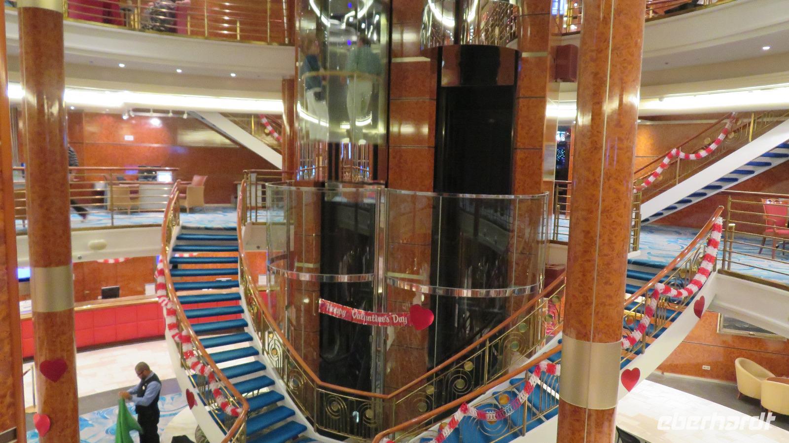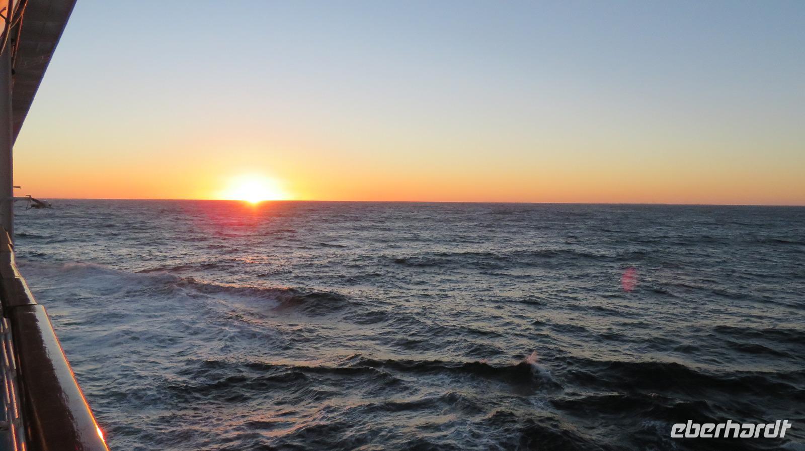 Am zeitigen Morgen merkt man, dass man mit einem Schiff unterwegs ist. So muss man sich als Baby gefühlt haben, wenn man im Kinderwagen geschaukelt wurden ist. Das Sportprogramm am Seetag muss heute an einem anderen Ort stattfinden, da die Laufstrecke aufgrund des stärkeren Seeganges gesperrt ist. Das hält uns aber nicht davon ab, die Beine in die Hand zu nehmen und so machen wir das Deck 12 und anschließend das Fitnessstudio unsicher.