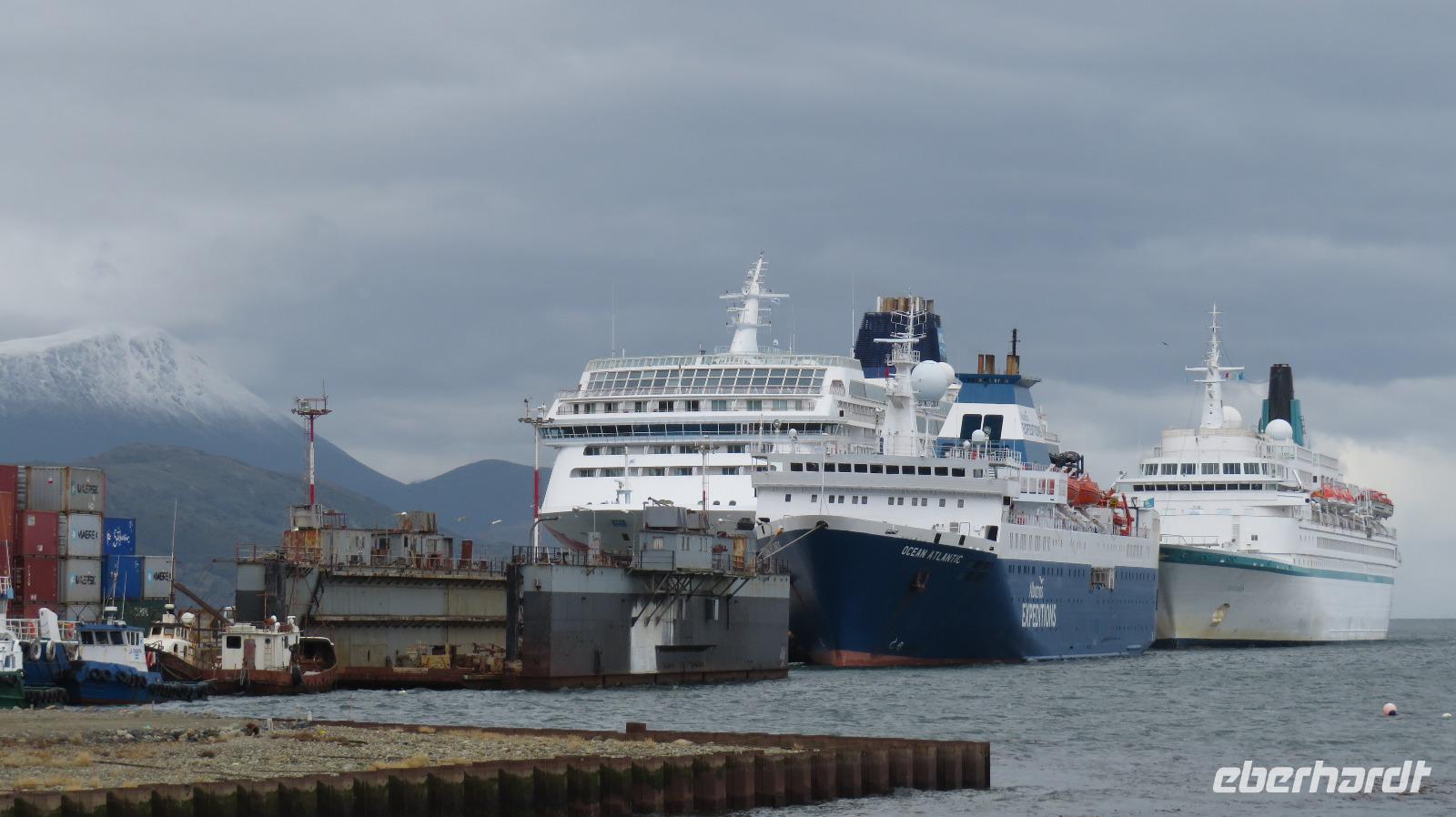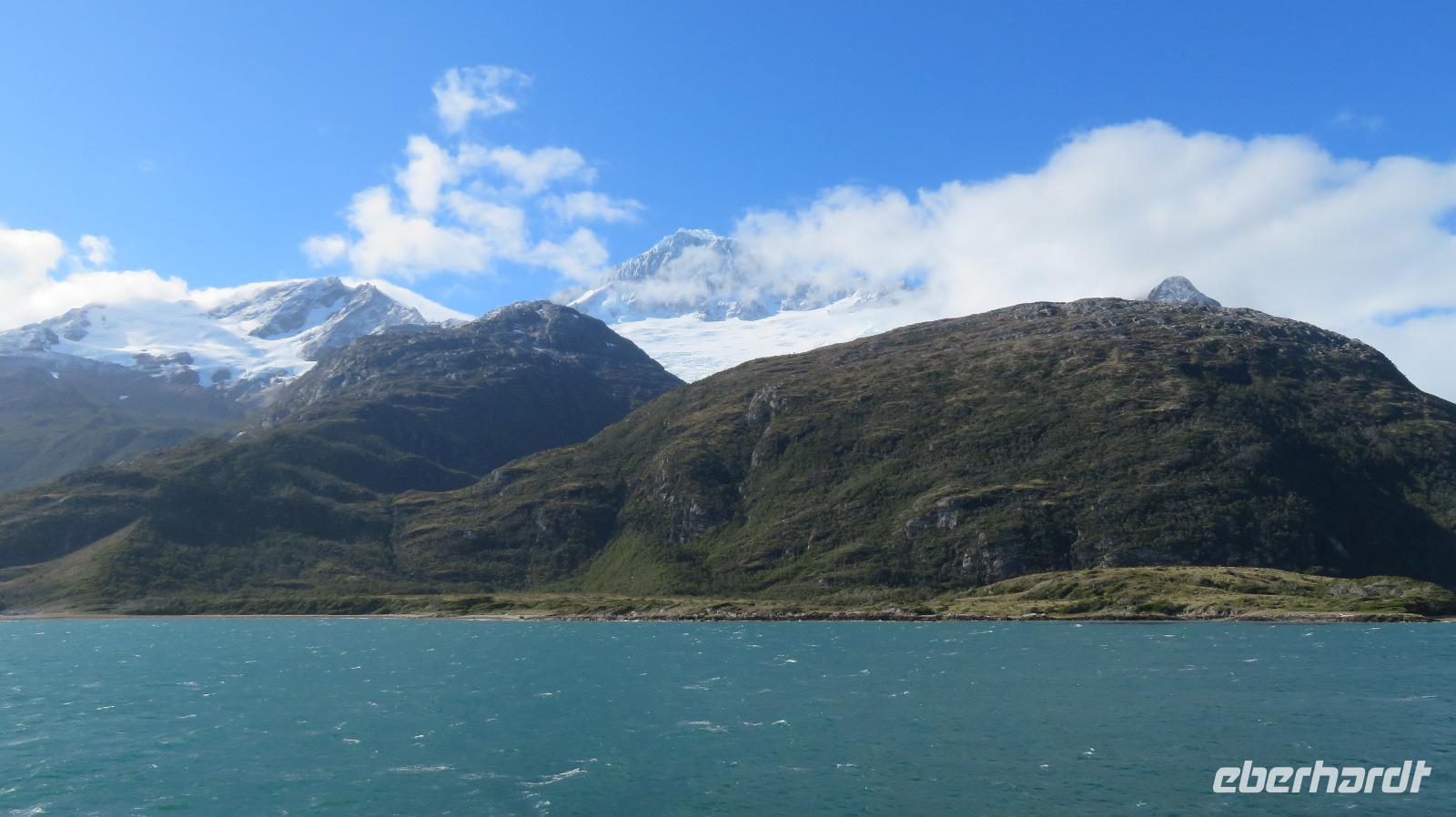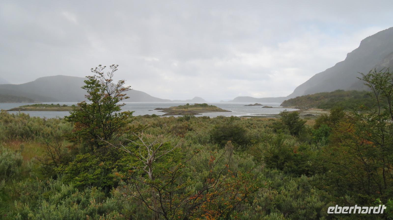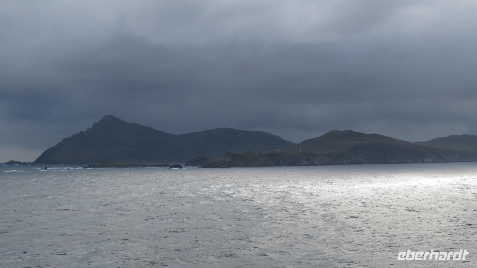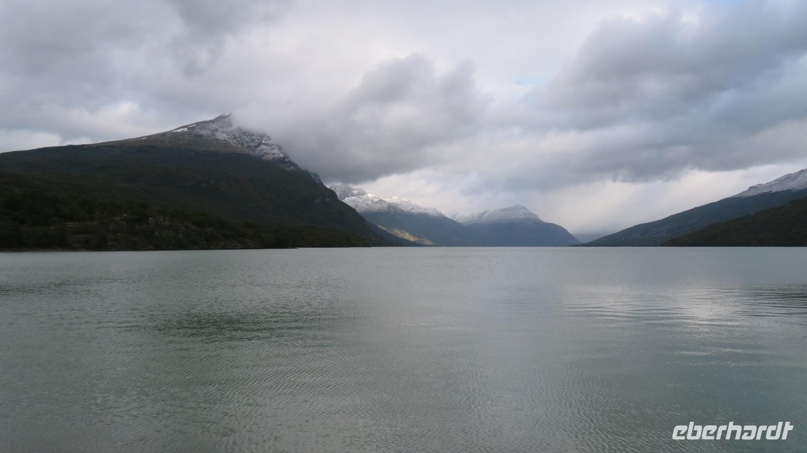 Im Anschluss daran, ziehen sich die dunklen Wolken zusammen und wir verlassen das raue Meer und fahren in den Beagle Kanal ein. Hier wird es gleich deutlich ruhiger und so schippern wir gemütlich der südlichsten Stadt der Welt entgegen.