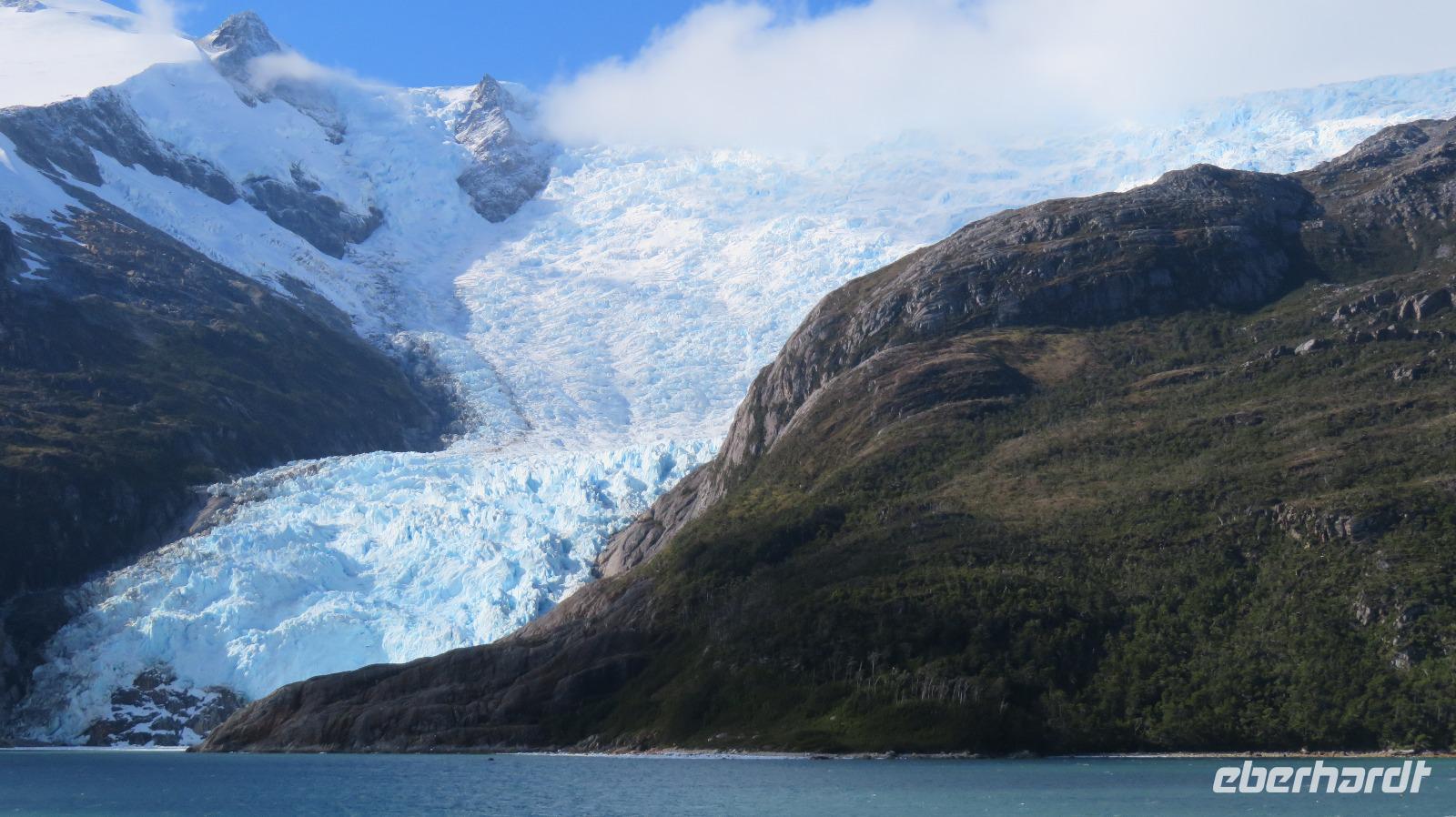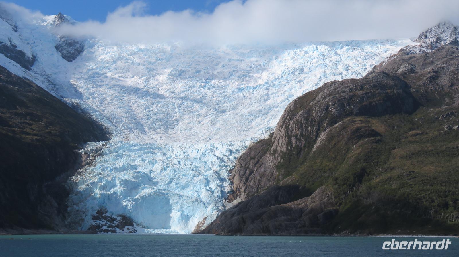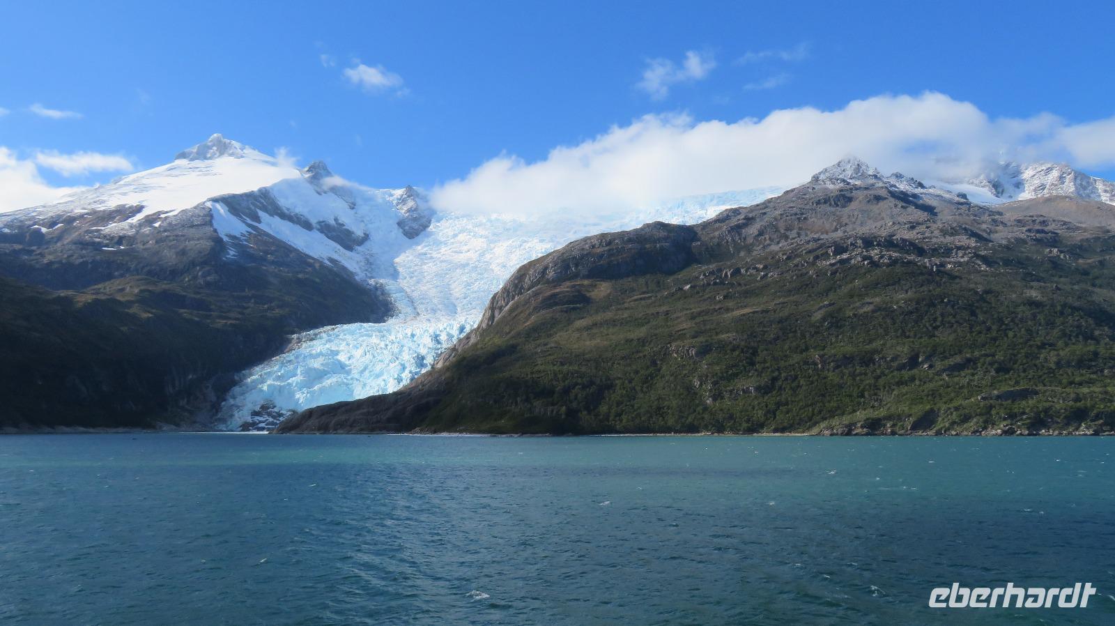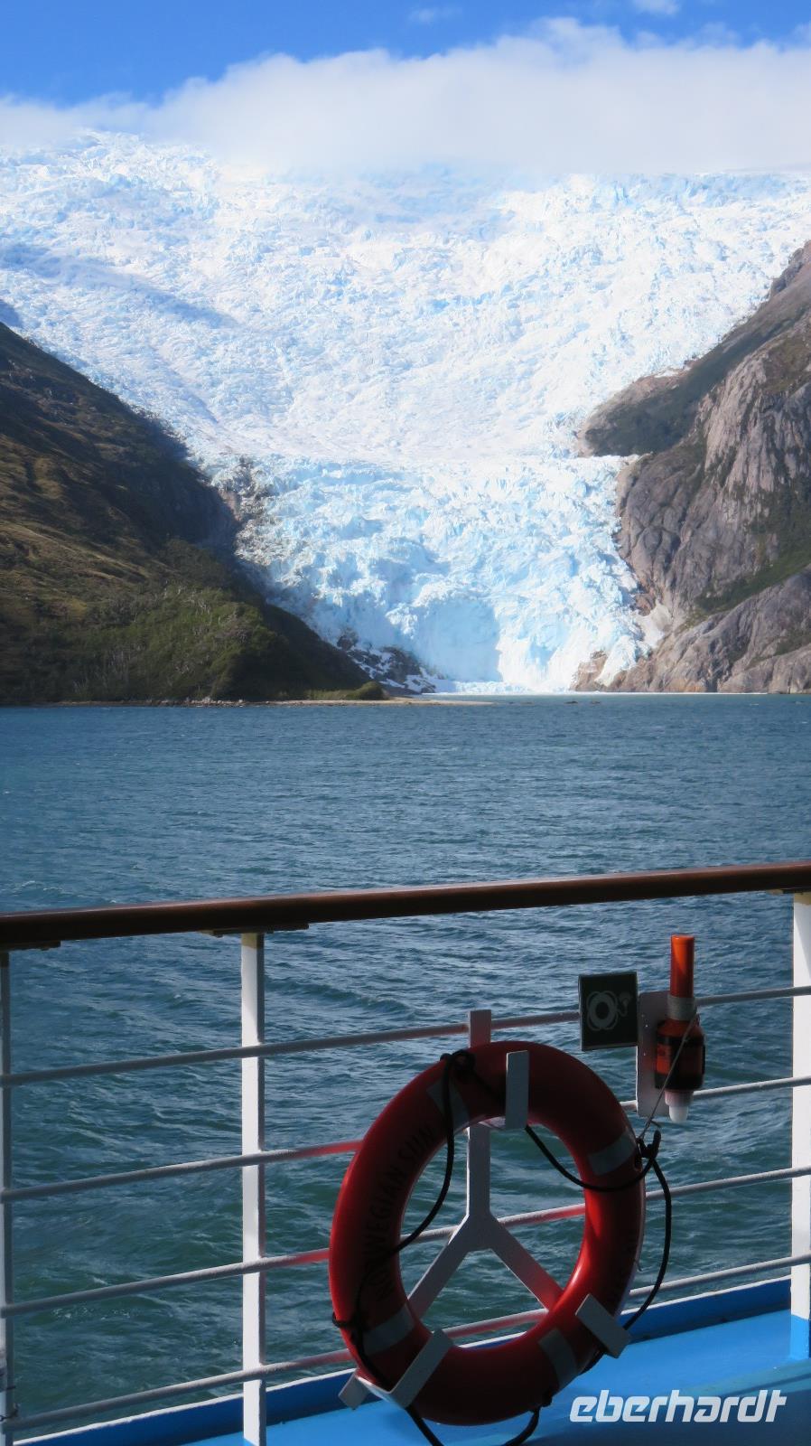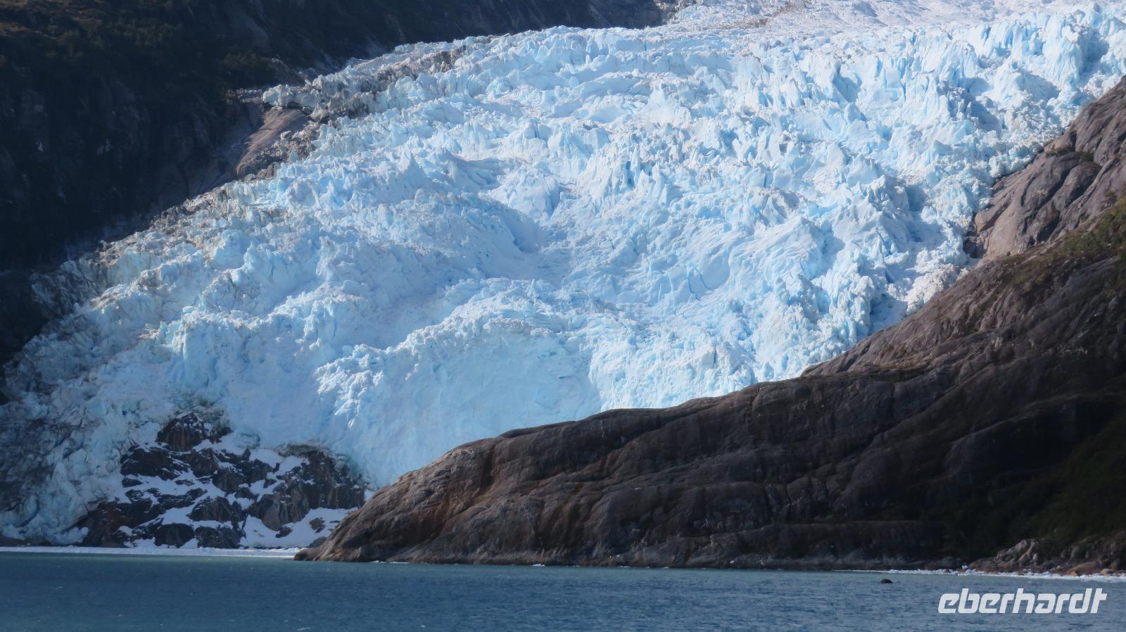 Zum Nachmittag gibt es nochmal einen absoluten Höhepunkt. Wir fahren mit dem Schiff direkt an mehreren Gletschern vorbei. Da die Sonne perfekt steht, strahlen die Gletscher herrlich blau und die Kamera läuft dementsprechend heiß. Neben dem Gletscher Alemania, Francia und Holanda inspiriert besonders der italienische Gletscher, welcher direkt ins Meer hinein ragt. Man muss hier neidlos anerkennen, mit Eis, kennen sich die Italiener eben am besten aus. :)