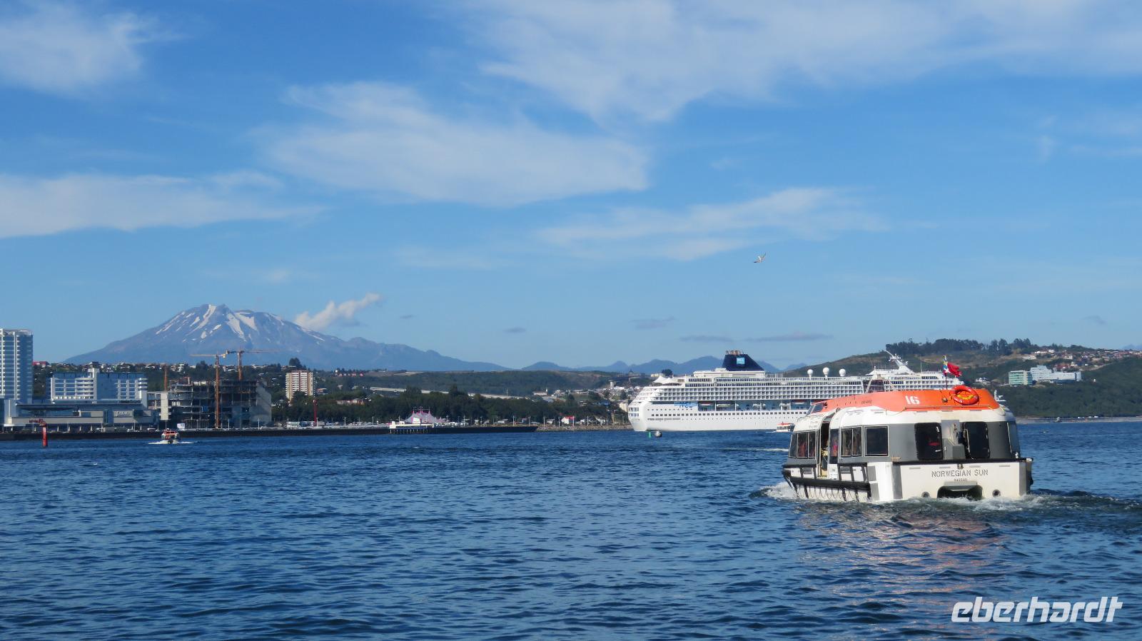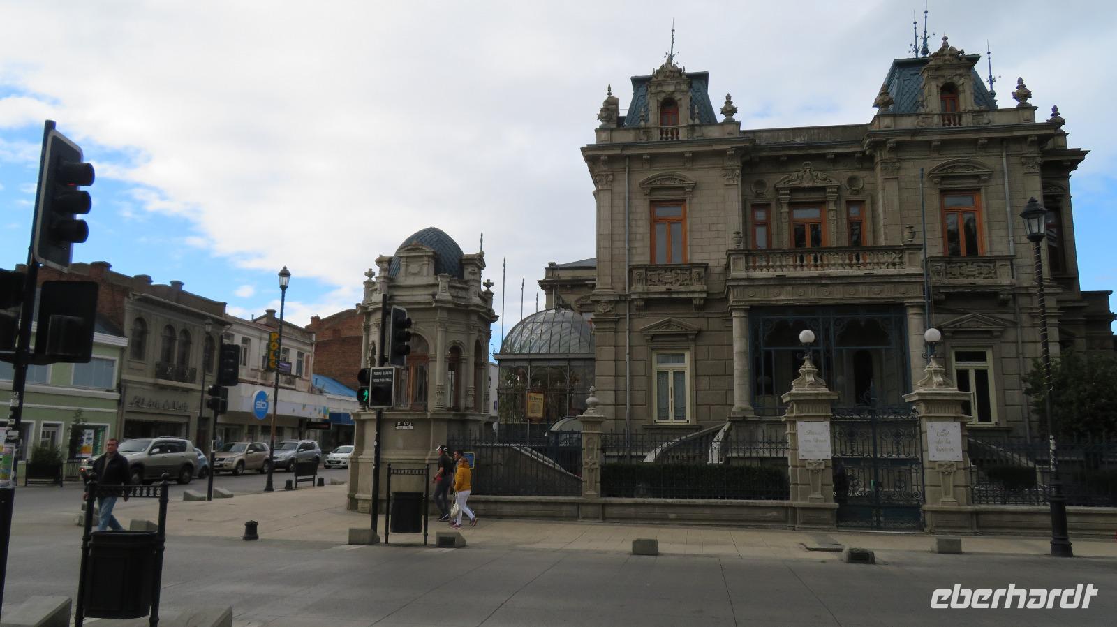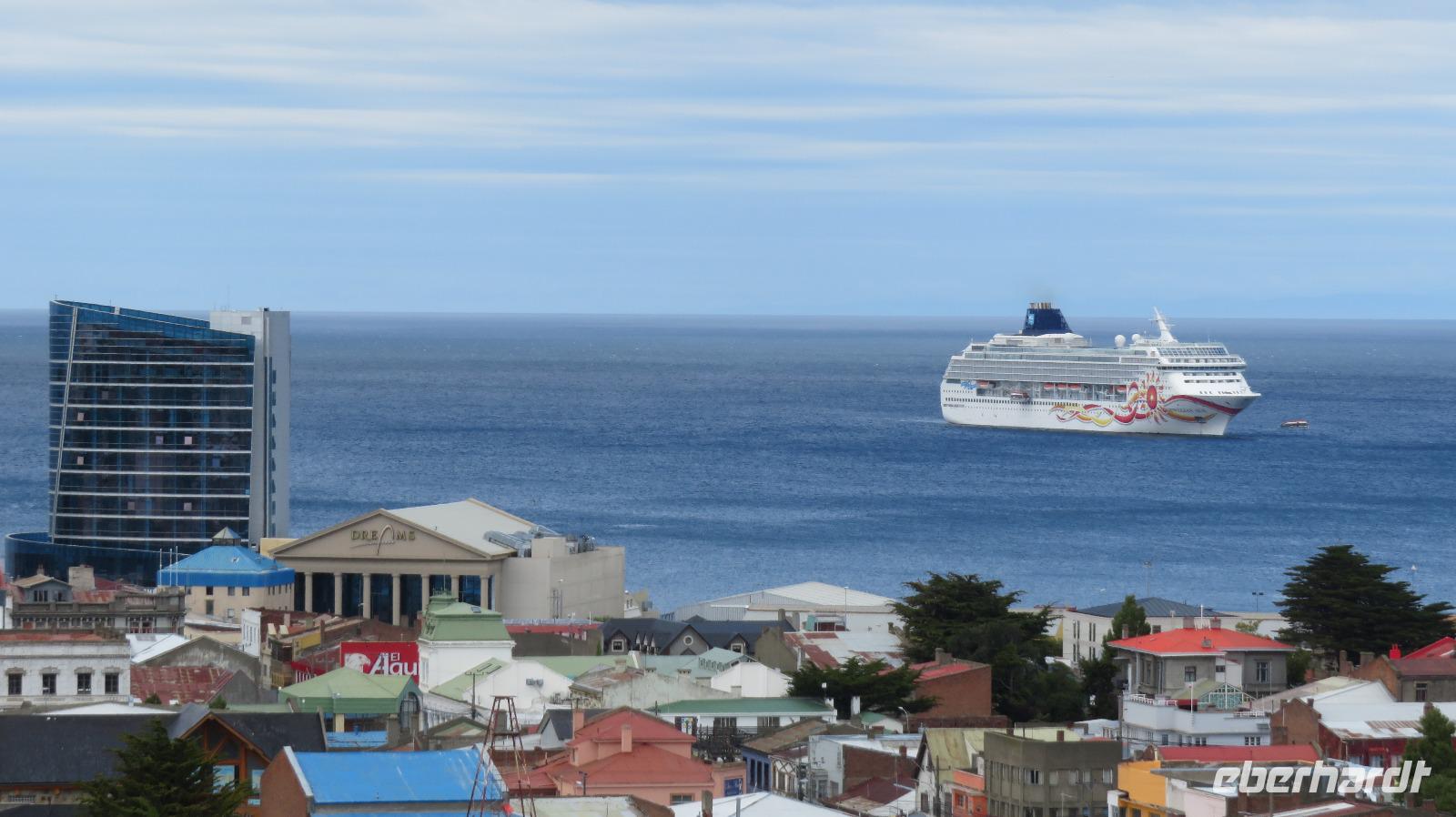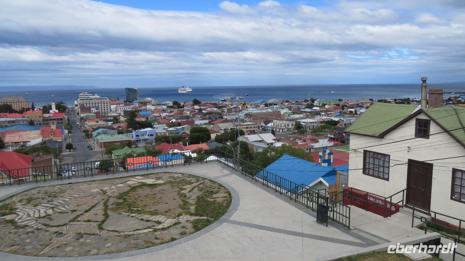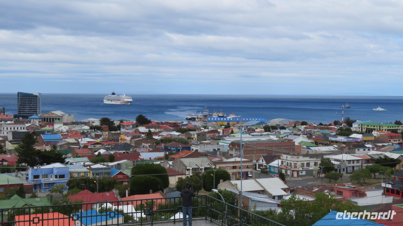Neuer Tag, neue Stadt. Heute ankerten wir vor Punta Arenas. Da die meisten den Ausflug zum Nachmittag gebucht haben, brauchten wir keine Tickets zum Tendern. Gegen 14 Uhr ist es dann soweit und wir starten mit unserer Reiseleiterin zur Punta Arenas Tour. Zunächst fahren wir zum Cerro la Cruz, um uns einen Überblick über die Stadt zu verschaffen. Hier kann man bereits feststellen, die Stadt ist nicht allzu groß. Nachdem der Fotoapparat warm gelaufen ist, geht es zum Museum Maggiorino Borgatello. Hier erfahren wir recht viel über die Geschichte der Ureinwohner von Patagonien. Des Weiteren gibt es freies Wlan, was natürlich auch immer interessant ist. :) Es ist schon verrückt, wie der Kontakt nach draußen Einzug in unser Leben genommen hat. Nachdem wir schlauer geworden sind, verlassen wir das Museum und besuchen den Pionier Friedhof der Stadt. Wir erfahren mehr über Sarah Braun und ihrem gesponserten Eingang, der nur ein einziges Mal genutzt wurde. Besonders die hohen, gleichmäßig geschnittenen Zypressen sind wunderschön und stehen im starken Kontrast zu den Kunstblumen, die man auf jedem Grab sehen kann. Zum Abschluss geht es zum patagonischen Openair Institut, wo das Leben der Pioniere durch Sammlungen von Landmaschinen, kompletten Häusern und andere interessante Dinge aus der Kolonialzeit gezeigt wird. Der letzte Stopp auf der heutigen Tour ist auf dem Plaza de Armas. Hier trennt sich die Gruppe um die Stadt nochmal auf eigene Faust zu erkunden oder zurück zum Schiff zu fahren.