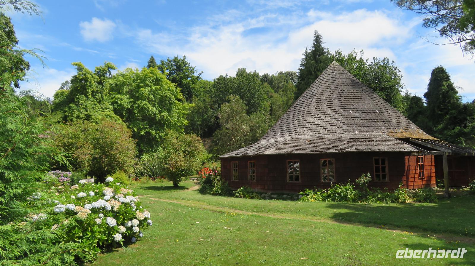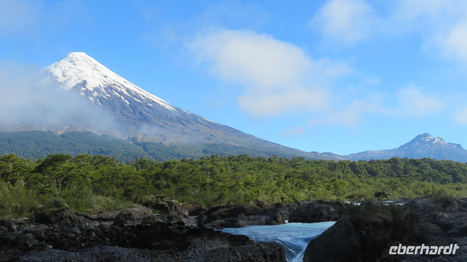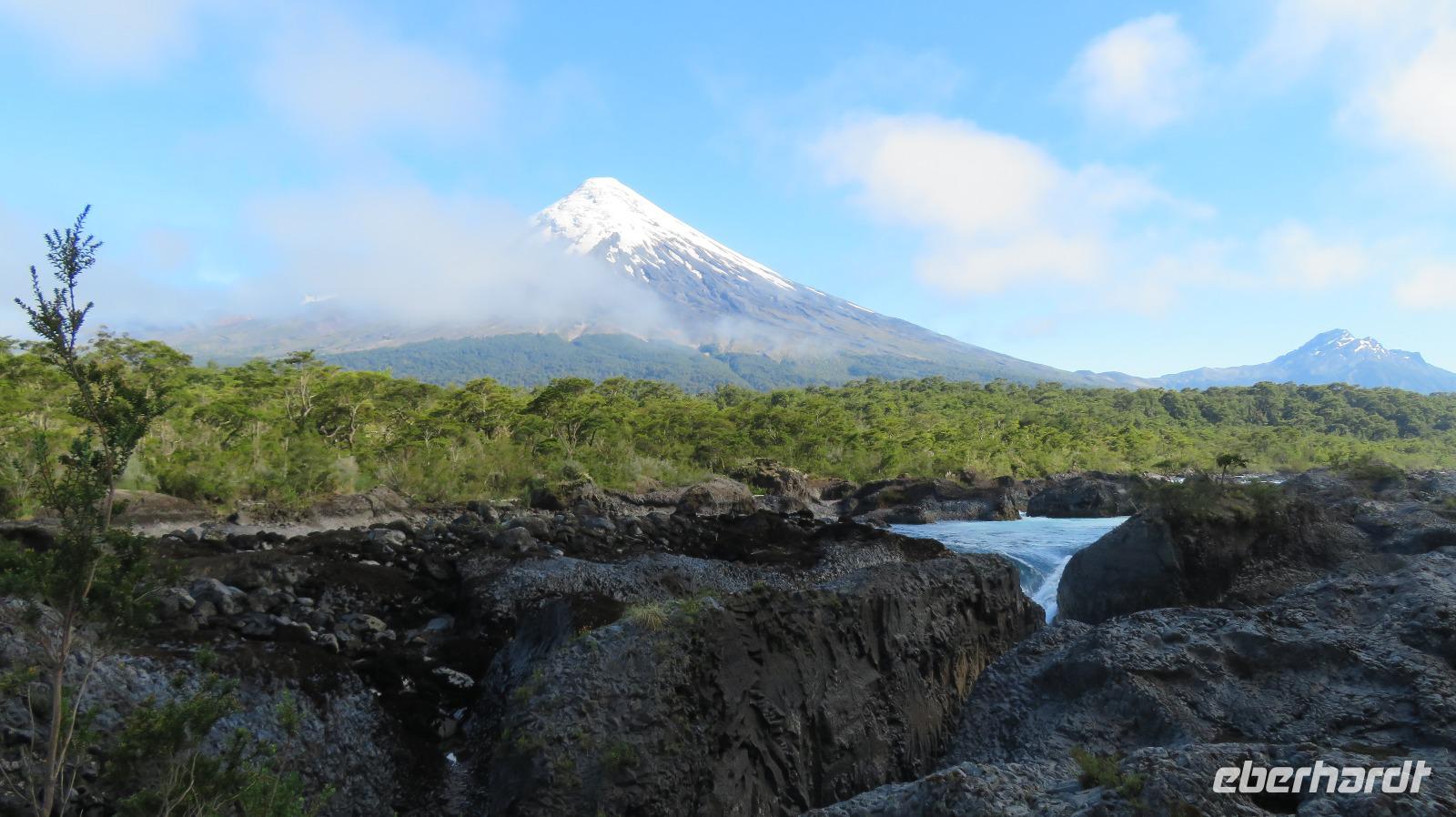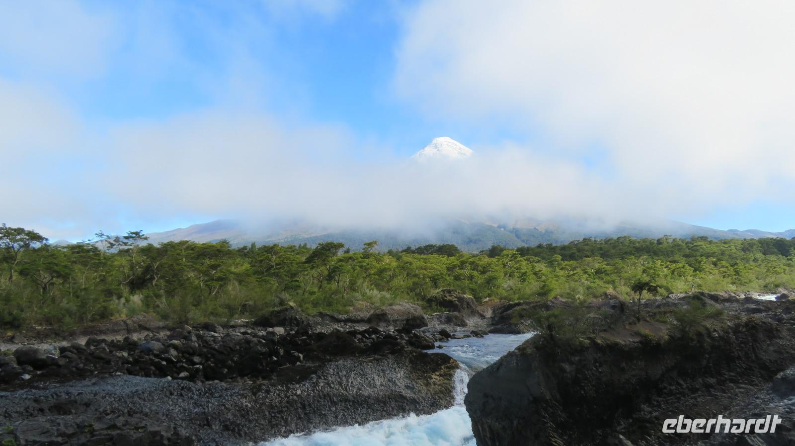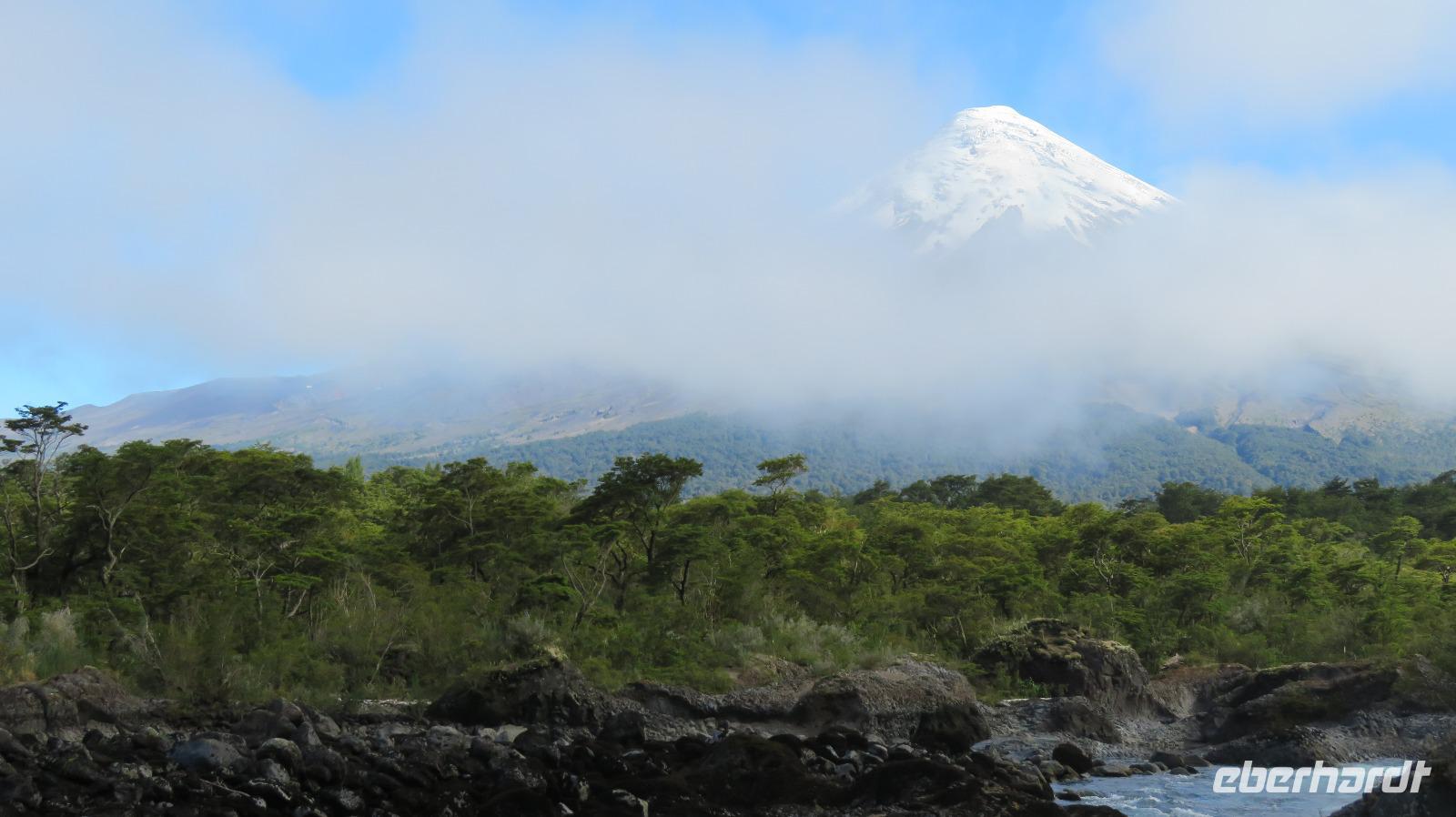 Unser erster Stopp führt uns zu den Petrohue Wasserfälle. Nachdem wir die Wasserfälle in Iguazu kennen gelernt haben, ist das natürlich Kindergarten dagegen. Aber hier macht es eindeutig auch die Umgebung. Im Hintergrund von den Wasserfällen sieht man den Vulkan Osorno, welcher wie ein Mustervulkan aussieht. Er ähnelt ein wenig dem Fuji Vulkan in Japan. Nach der vielen frischen Luft bekommen wir Hunger und speisen zum Mittag leckeren Lachs. Nun waren wir alle wieder bei Kräften und es ging zum deutschen Dorf nach Frutillar. Im 19 Jahrhundert haben sich hier viele Deutsche und Österreicher niedergelassen und man fühlt sich ein wenig wie in Deutschland. An jeder Ecke werben die Tafeln mit Kaffee, Kuchen und Apfelstrudel. Zum Abschluss darf gesagt werden, Stefanie hatte Recht. Der Nebel hat sich verzogen und die Sonne hat die Oberhand übernommen. Somit macht der kleine Spaziergang im Dörfchen gleich doppelt Spaß und wir stellen alle gemeinsam fest, dass wir hier gerne noch ein wenig länger geblieben wären.
