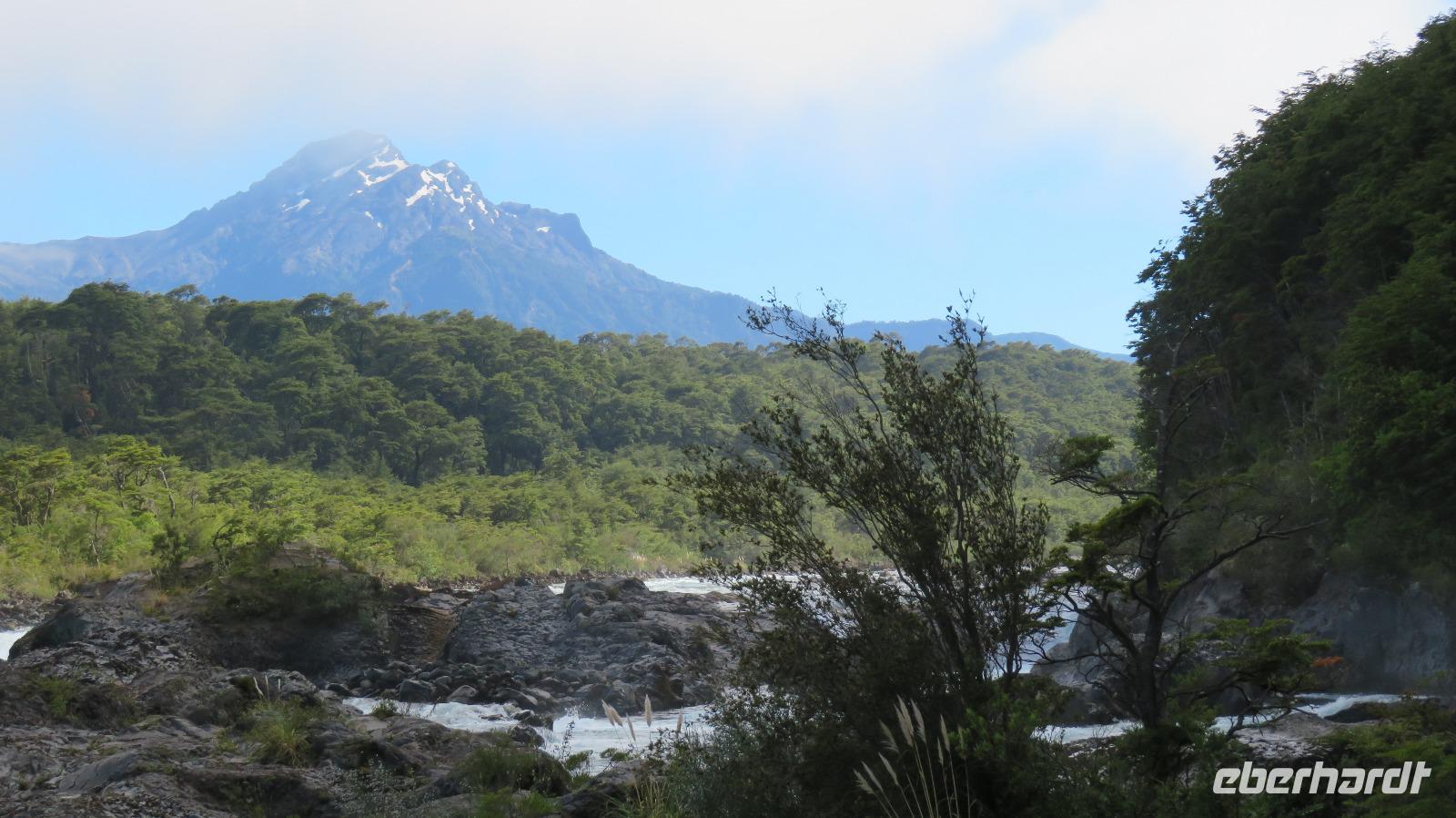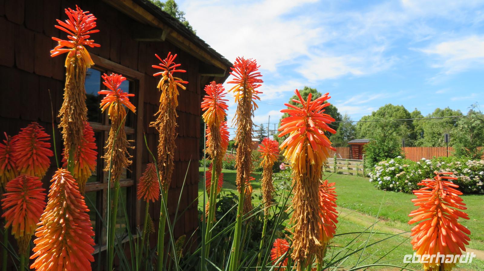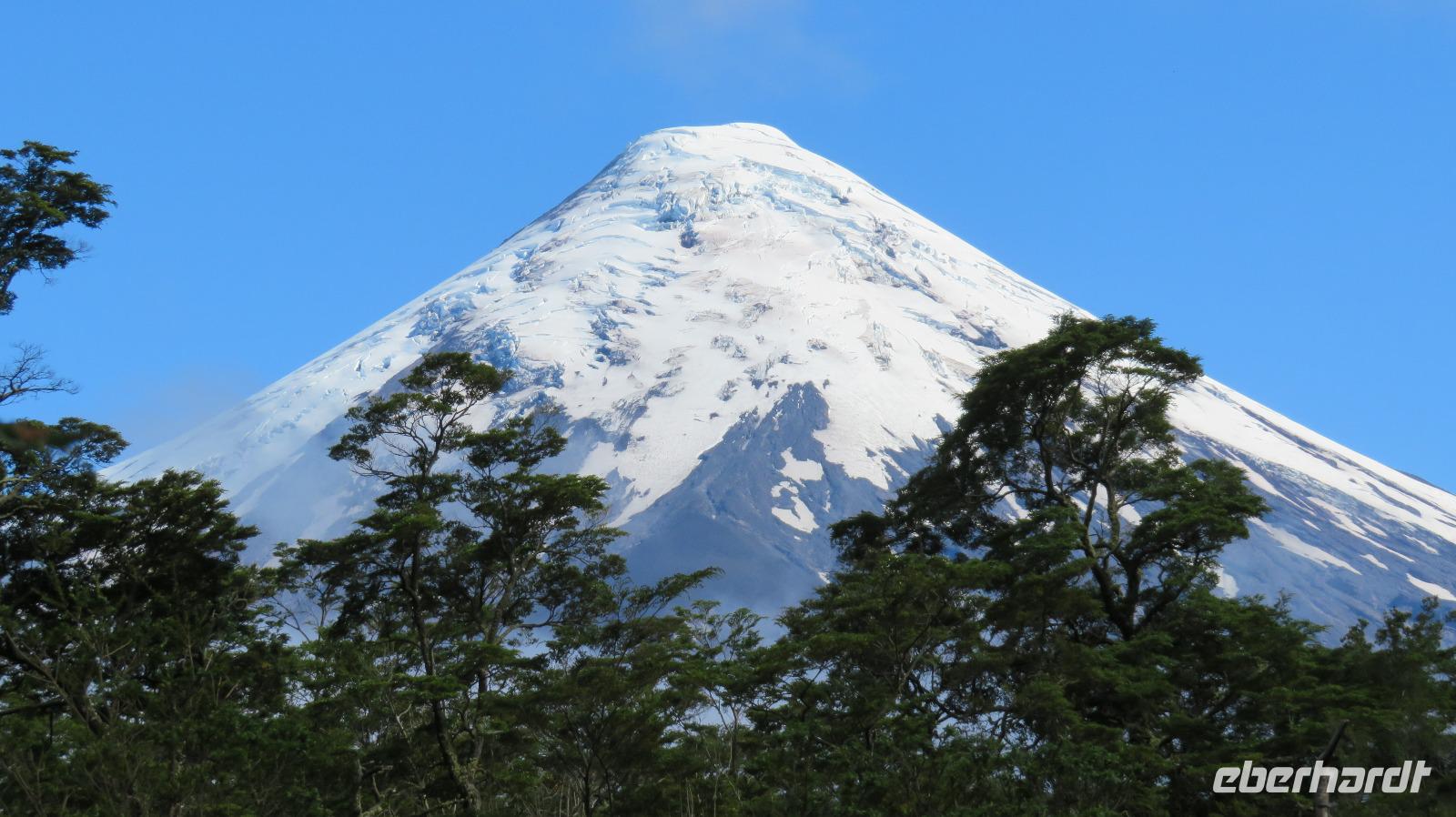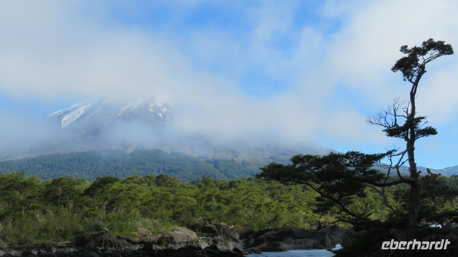 Unser erster Stopp führt uns zu den Petrohue Wasserfälle. Nachdem wir die Wasserfälle in Iguazu kennen gelernt haben, ist das natürlich Kindergarten dagegen. Aber hier macht es eindeutig auch die Umgebung. Im Hintergrund von den Wasserfällen sieht man den Vulkan Osorno, welcher wie ein Mustervulkan aussieht. Er ähnelt ein wenig dem Fuji Vulkan in Japan. Nach der vielen frischen Luft bekommen wir Hunger und speisen zum Mittag leckeren Lachs. Nun waren wir alle wieder bei Kräften und es ging zum deutschen Dorf nach Frutillar. Im 19 Jahrhundert haben sich hier viele Deutsche und Österreicher niedergelassen und man fühlt sich ein wenig wie in Deutschland. An jeder Ecke werben die Tafeln mit Kaffee, Kuchen und Apfelstrudel. Zum Abschluss darf gesagt werden, Stefanie hatte Recht. Der Nebel hat sich verzogen und die Sonne hat die Oberhand übernommen. Somit macht der kleine Spaziergang im Dörfchen gleich doppelt Spaß und wir stellen alle gemeinsam fest, dass wir hier gerne noch ein wenig länger geblieben wären.