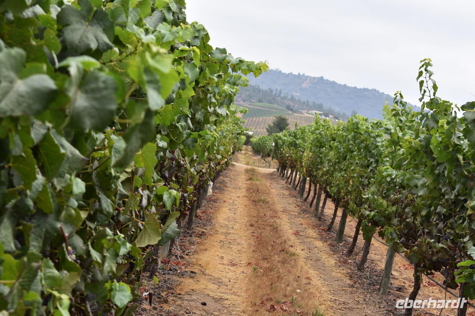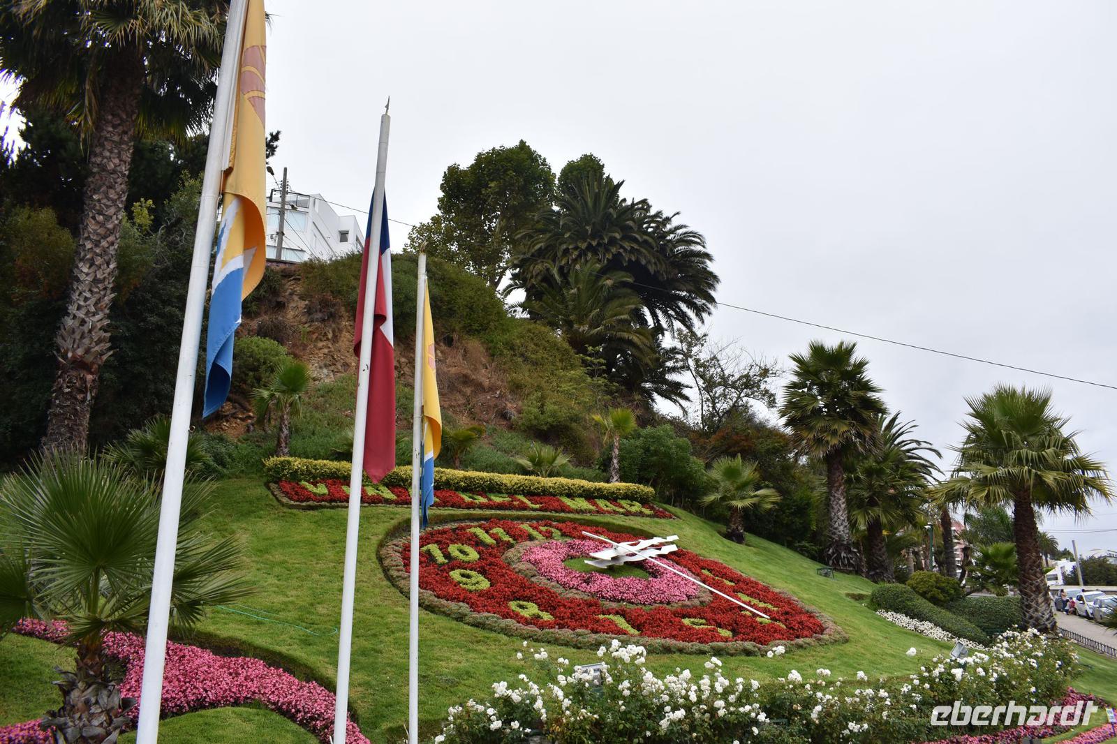 Mit einer historischen Bergbahn fuhren wir auf den Hügel Cerro Concepcion, wo wir eine tolle Aussicht auf den Hafen von Valparaíso hatten. Wir konnten uns ein Bild von den bunten Straßen sowie den zahlreichen Kunstwerken an den Fassaden machen, die so typisch für Valparaíso sind. Im Café Palacio Baburizza gab es dann ein paar typische Empanadas für uns. Nach dieser leckeren Stärkung fuhren wir mit der steilen Bahn wieder nach unten und gingen über die Plaza Sotomayor zum Bus. Von dort fuhren wir Richtung Viña del Mar und machten einen kurzen Halt an der Blumenuhr, die bei vielen sehr beliebt ist. Das merkte man auch an dem regen Andrang an Touristen aus aller Welt, die vor der hübsch geschmückten Uhr posierten. Im Anschluss konnten wir einen Blick der Strandpromenade von Viña del Mar erhaschen. Wir fuhren dann in Richtung Santiago de Chile. Auf dem Weg dorthin lockerte sich der Himmel und die Sonne streckte sich wieder durch und es wurde auch wärmer. Wir nutzten den Nachmittag zur Besichtigung des Weinguts Casas del Bosque, welches im Vergleich zu anderen Weingütern noch recht jung war und von italienischen Einwanderern geführt wird. Und auch wenn sie nur gut sechsundzwanzig Jahre vorweisen können, haben sie doch ein sehr beträchtliches und ziemlich edel aussehendes Weingut. Für uns etwas verwunderlich war, dass das Weingut einen Raum mit Holzfässern besitzt, in dem die Weinfässer mit Musik beschallt werden. Diese soll sich positiv auf die Qualität und den Geschmack des Weines auswirken. Durch die sanften Schwingungen der Musik soll der Rhythmus in das Getränk übergehen. Nach diesem spontanen Besuch in einem chilenischen Weingut fuhren wir nun in die Hauptstadt.