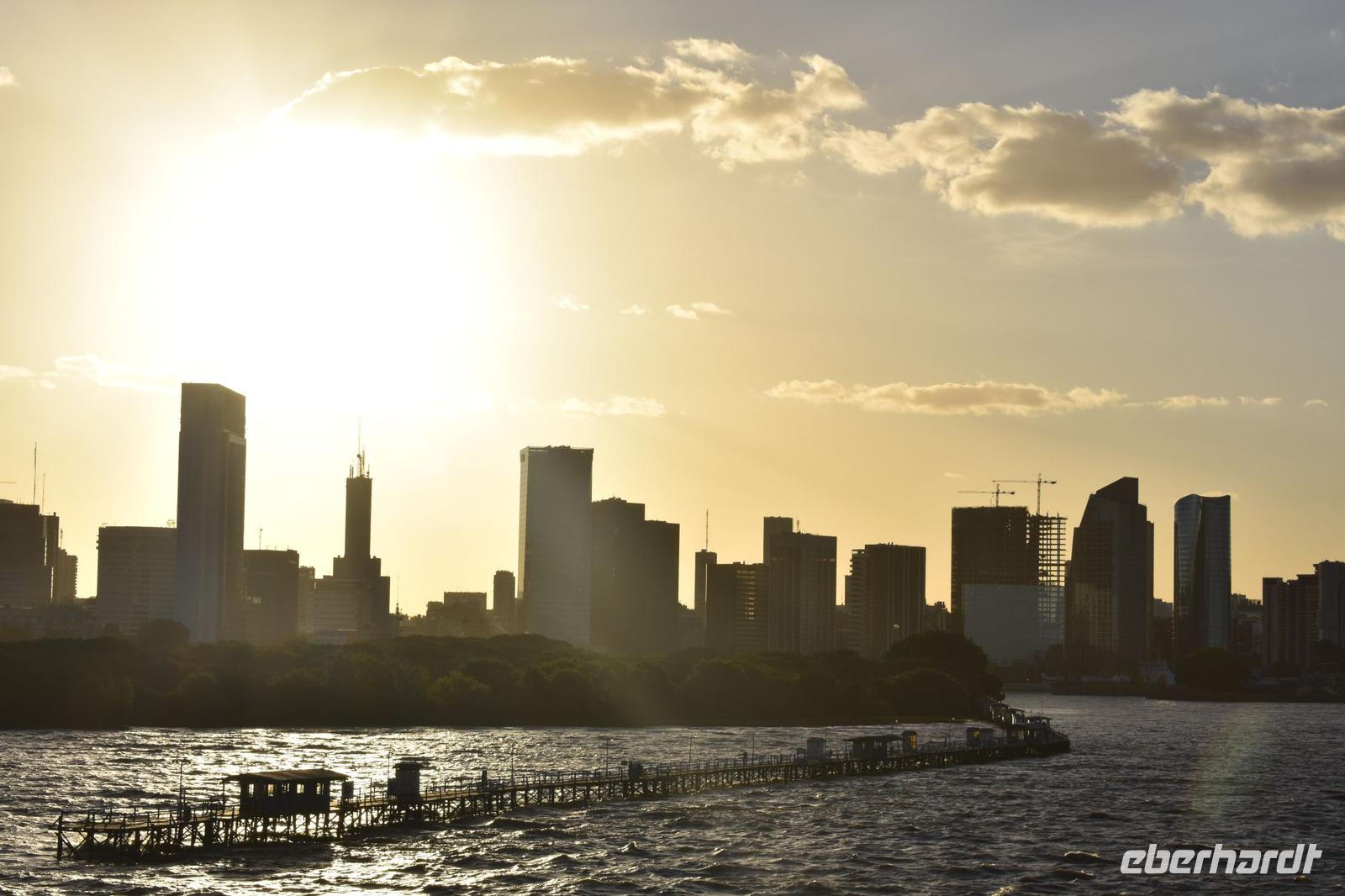Nach dem Frühstück starteten wir unsere Stadtrundfahrt durch Buenos Aires. Es ging Richtung Norden, durch Retiro bis nach Palermo. Wir sahen dabei die eindrucksvolle Blumen-Skulptur Floralis Genérica sowie das Haus von San Martin, einem Befreier von Argentinien und auch anderer südamerikanischer Staaten. Wir sahen uns anschließend den Rosengarten an, der in einem wundervollen und idyllischen Park liegt. Viele einheimische nutzten diese Gegend für ihren Wochenendsport. An der Carta Magna (Monumento a La Carta Magna y las Cuatro Regiones Argentinas), einer spanischen Skulptur, vorbei, fuhren wir nach Recoleta. Dort besichtigten wir einen der begeisterndsten Friedhöfe der Welt, wenn nicht sogar den begeisterndsten Friedhof der Welt. Mit unglaublichen Kunstwerken aus Stein werden unfassbar viele Gräber geschmückt. Man kann sich kaum sattsehen an dieser künstlerischen Pracht. Hinzu kommt noch das an diesem Ort zahlreiche wichtige und bekannte Persönlichkeiten bestattet sind, die Geschichte geschrieben haben. Darunter auch das Grab der Evita Duarte - María Eva Duarte de Perón. Unsere nächsten Ziele waren die Buchhandlung El Ateneo Grand Splendid, vorbei am Theatro Colon bis auf die Plaza de Mayo. Dort sahen wir das Casa Rosada, den Palast des argentinischen Präsidenten und die Catedral Metropolitana de Buenos Aires. Auf dem Weg nach La Boca sind wir am Café Tortoni von 1858 vorbei gefahren. In La Boca sahen wir uns das Stadion von Boca Juniors von außen an, und schlenderten anschließend den berühmten Caminito entlang. Nach einer Mittagspause und der Besichtigung des quirligen Viertels ging es Richtung Hafen. In Puerto Madero griffen wir noch ein Eis bei der Eis-Kette freddo und liefen an die „Frauen-Brücke" - Puente de la Mujer, einem der Wahrzeichen der Stadt Buenos Aires. Somit war die wundervolle Zeit in Buenos Aires schon wieder vorüber und wir begaben uns zur Einschiffung auf die Norwegean Sun.