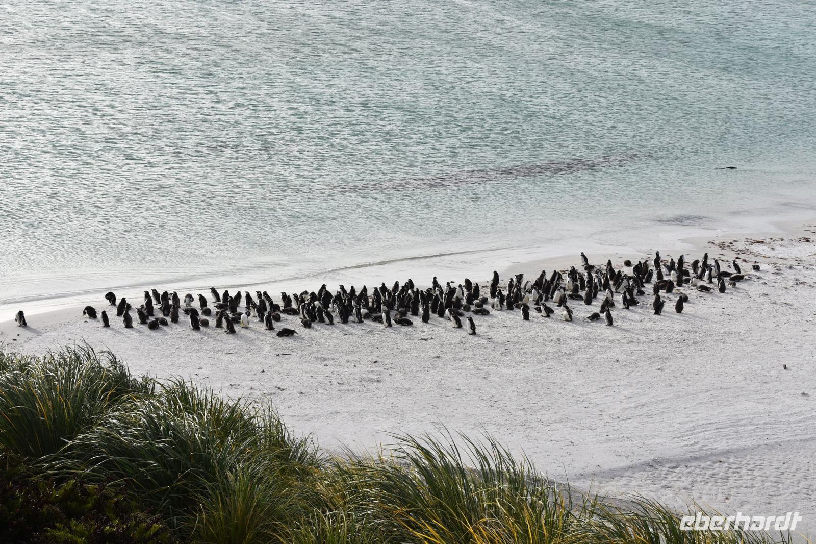 Kurzfristig hatte sich am Abend die Tenderzeit für die Falkland Inseln geändert. So war die neu geplante Tenderzeit von sechs Uhr morgens bis dreizehn Uhr mittags. Ein paar Abenteurer ließen sich von der neuen Zeit nicht abschrecken. So trafen wir uns also zu acht um 05:50 Uhr. Leider verzögerte sich die geplante Überfahrt auf die Insel etwas. 06:49 Uhr setzten wir unsere Füße auf die Ost-Insel der Malvinas und betraten den Hafen der Insel-Hauptstadt Stanley. Ein paar Ortskundige booten uns hier einige Pinguin-Touren an, die uns aber bis zu zweihundert Dollar kosten sollten. Wir entschieden uns nach kurzen Überlegungen in die nahegelegene Bucht Gypsy Cove zufahren um dort noch einmal die Magellan-Pinguine zu bewundern. Um die großen Königspinguine zu sehen war leider eine etwas größere Tour notwendig.