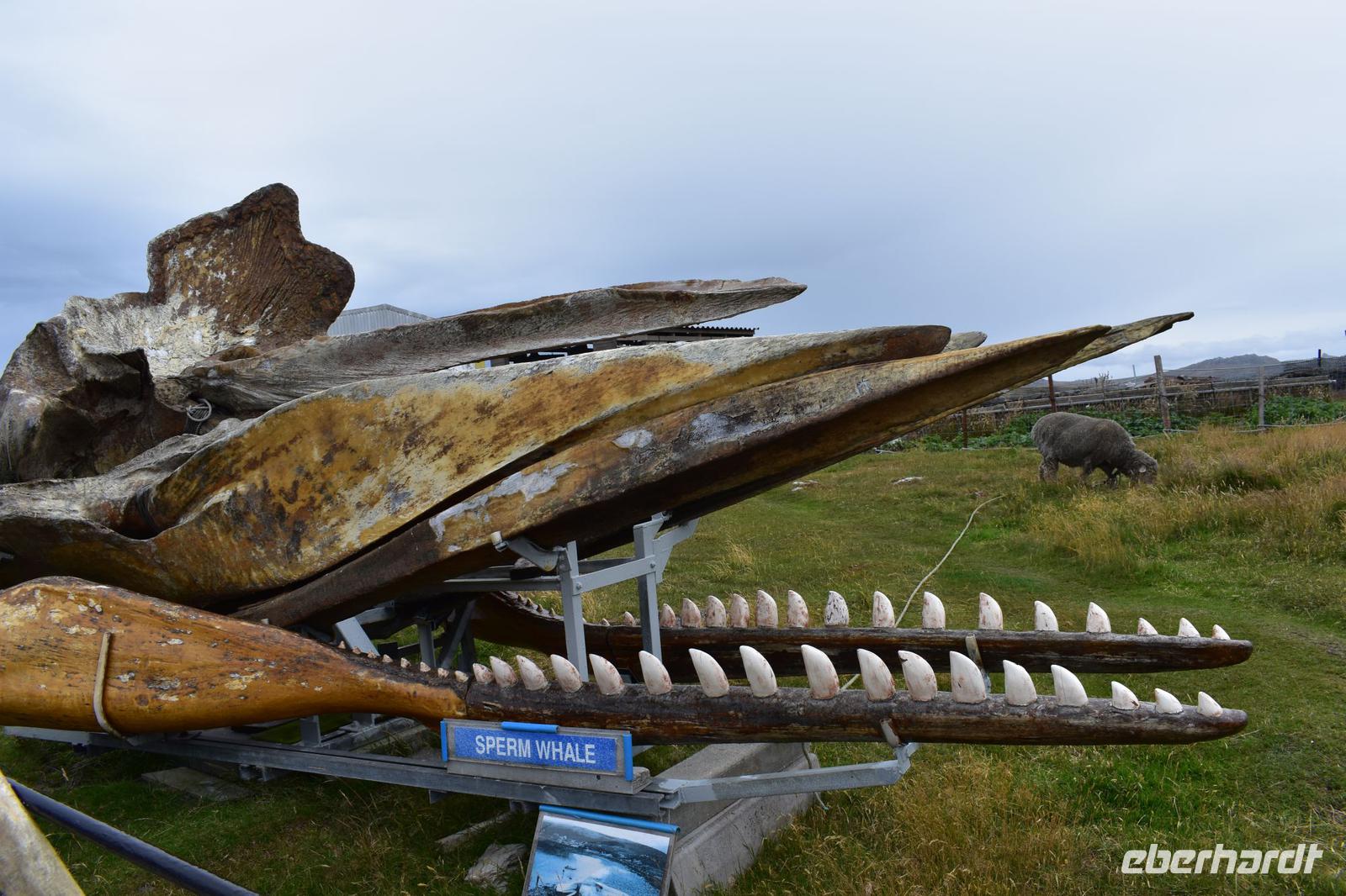 Nach dieser Naturentdeckung fuhren wir mit dem Bus wieder zurück nach Stanley. Die übrige Zeit nutzten wir für eine Erkundung des kleinen Städtchens. Dazu sah man an einigen Denkmälern vorbei, an Kirchen, dem Walknochenmonument, der Falkland-Post und man konnte das britische Anwesen des Gouverneurs von außen begucken. Man hatte außerdem die Gelegenheit das örtliche Dockyard Museum zu besuchen.