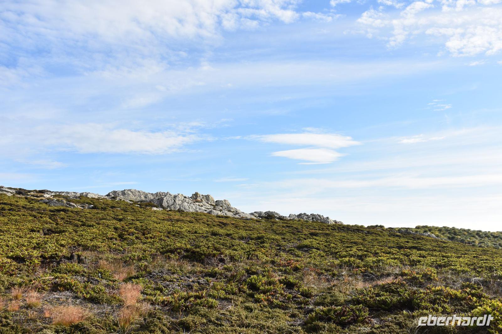 Auf einer abgesteckten Route liefen wir durch den Kies in Richtung Meer. Wir wollten die kleinen Pinguine so wenig wie möglich stören. Unter dem trockenen Buschwerk haben sich viele von ihnen einen schattigen Unterschlupf geschaffen. Es war schon fast für uns unerträglich heiß und den kleinen machte dies scheinbar auch sehr zu schaffen. Immer wieder sah man einen kleinen Pinguin der es nicht geschafft hatte - entweder verdurstet oder von der Familie verstoßen, wir wissen es nicht genau. Doch sah man oft einen dieser niedlichen Kerlchen in der Sonne verendet.