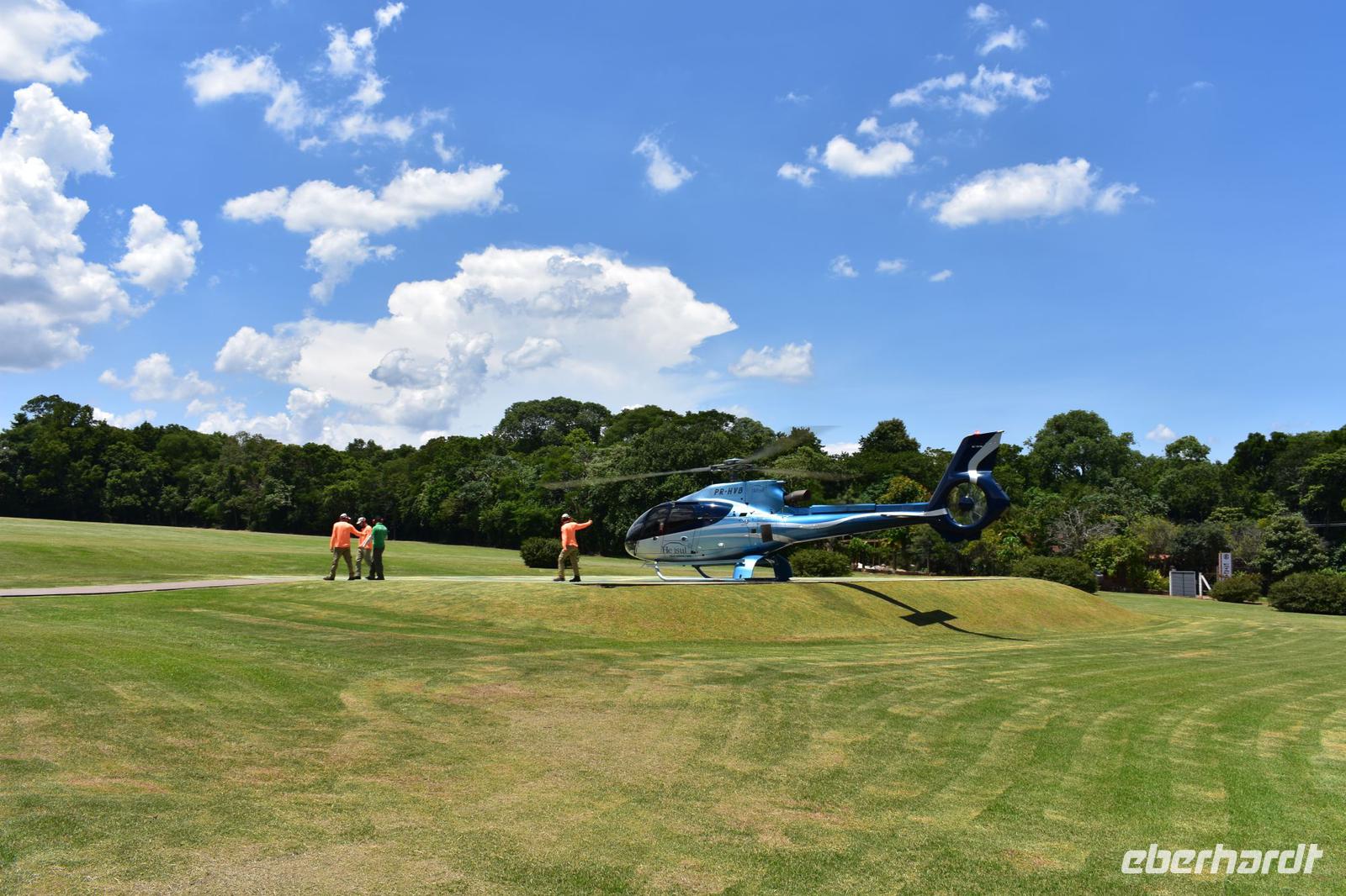 Nach dem Besuch des Nationalparks stand für ein paar Leute aus unserer Gruppe noch ein Highlite an. Mit dem Helikopter flogen sie über die Wasserfälle hinweg und konnten so dieses Naturschauspiel aus einer ganz anderen Perspektive genießen.