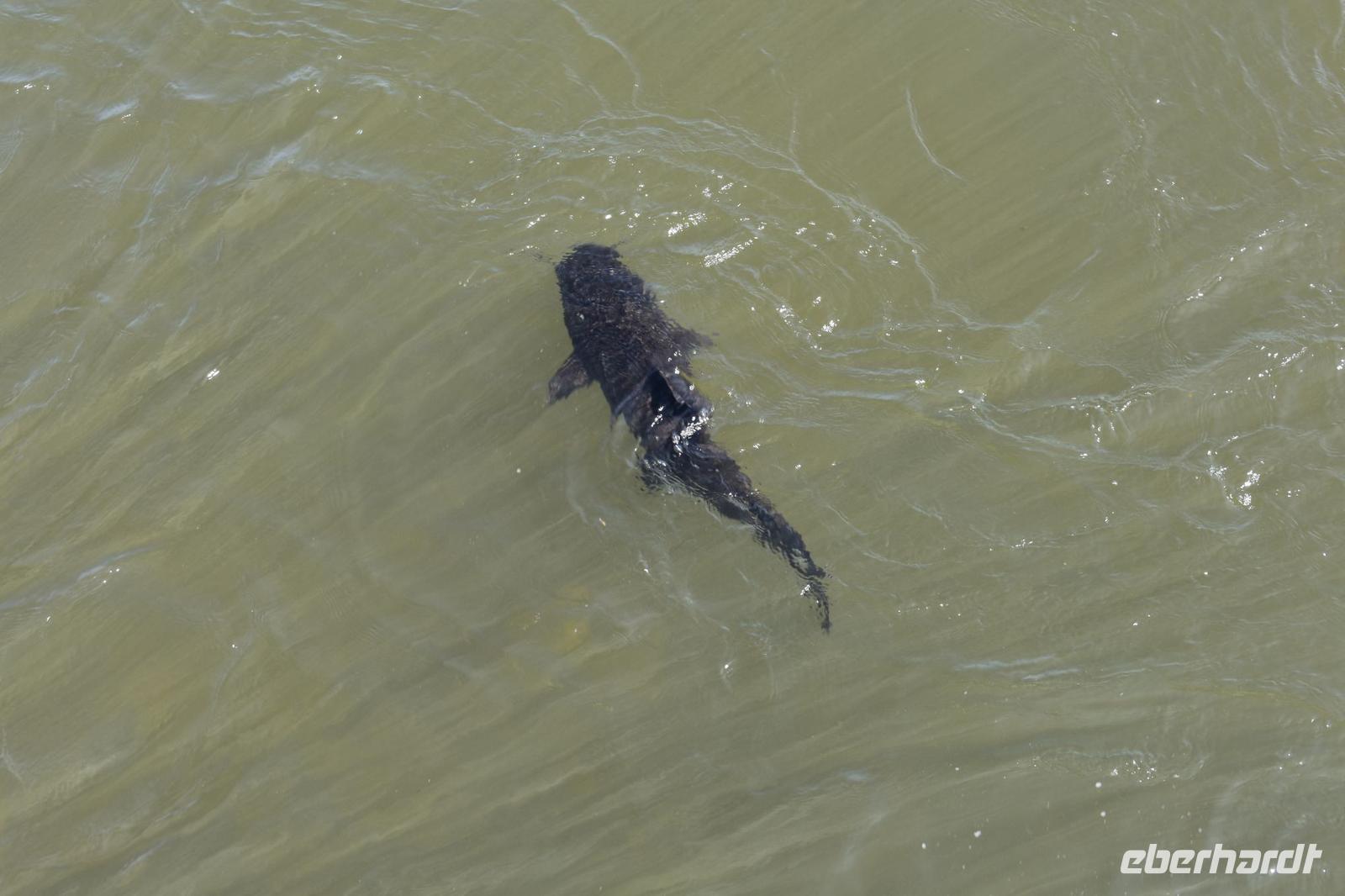 Gespannt hielten wir auch Ausschau nach ein paar Orcas. Ein Schild wieß darauf hin, dass am heutigen Tage schon drei Killerwale gesehen wurden. Die Jäger gehen an dieser Stelle immer wieder auf Robbenjagt und schießen dabei aus dem Wasser bis ans Ufer, beziehungsweise an Land heran und holen sich ihre Beute. Ein paar Fotografien veranschaulichten die Jagtmethode der Orcas.