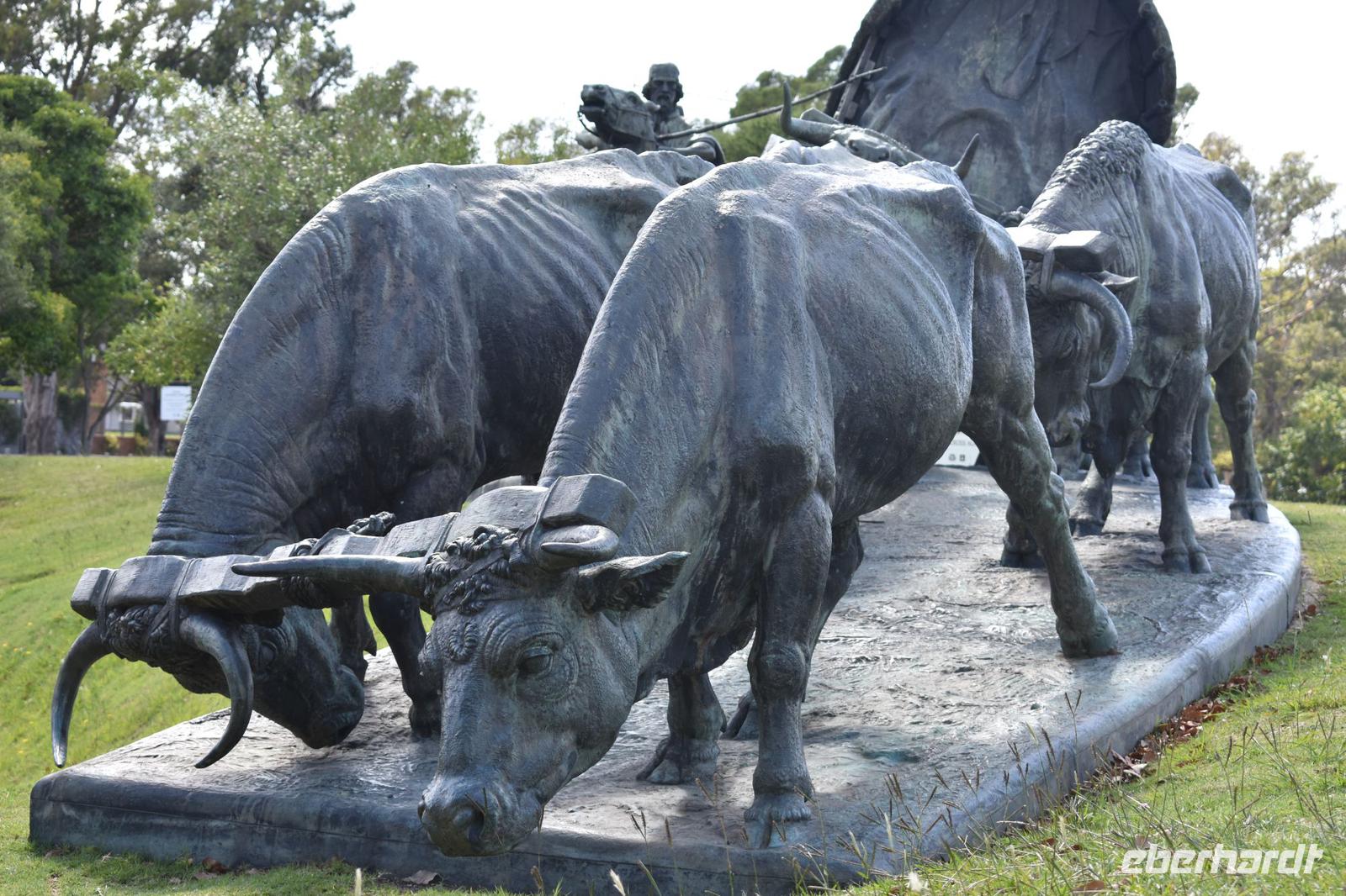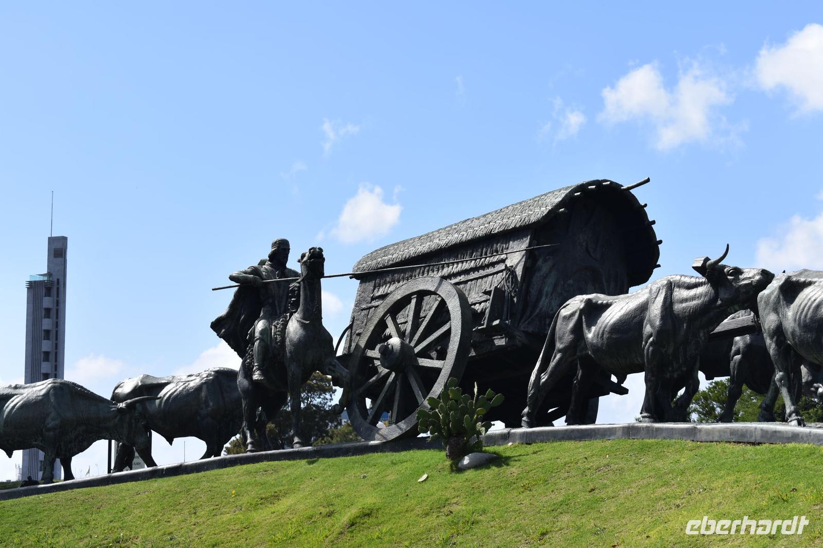 Wir fuhren weiter zum Parque José Batlle y Ordoñez wo wir eine grandiose Bronze-Skulptur eines Gauchos mit Karren und Ochsengespann bewundern konnten.