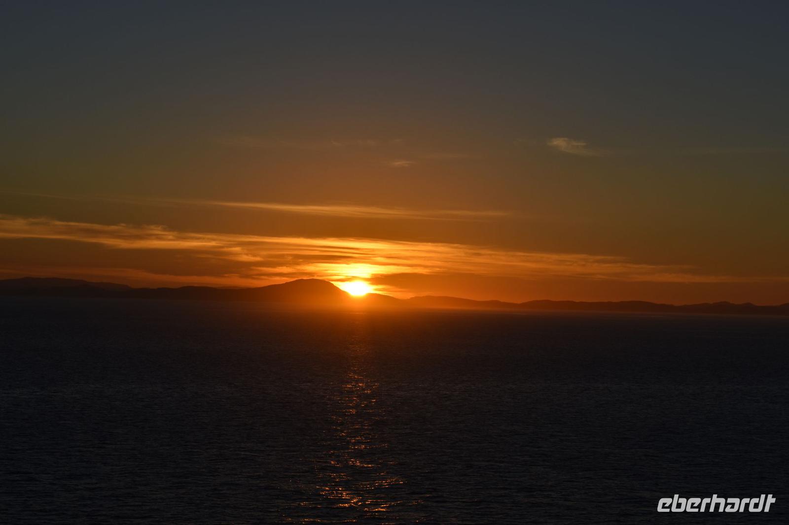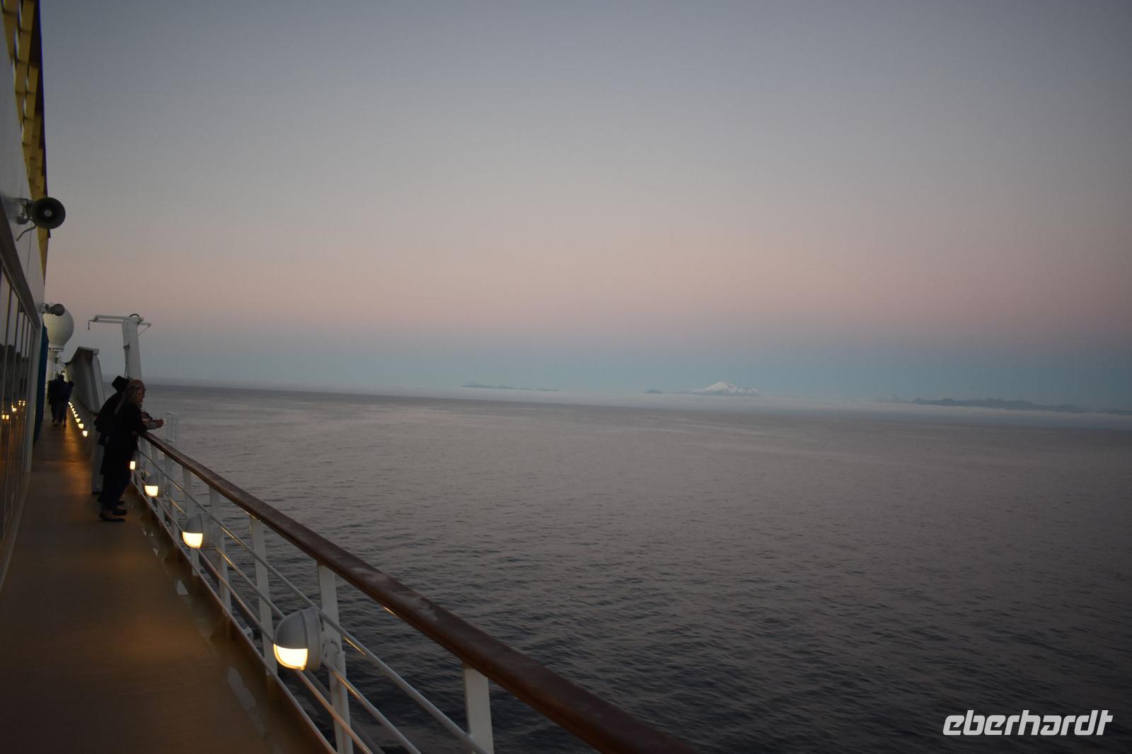 Nach dem Abendessen verließen wir die ruhige See und fuhren aufs offene Meer. Es wurde ein wenig schaukeliger, aber diesmal alles noch im Rahmen der Verträglichkeit.