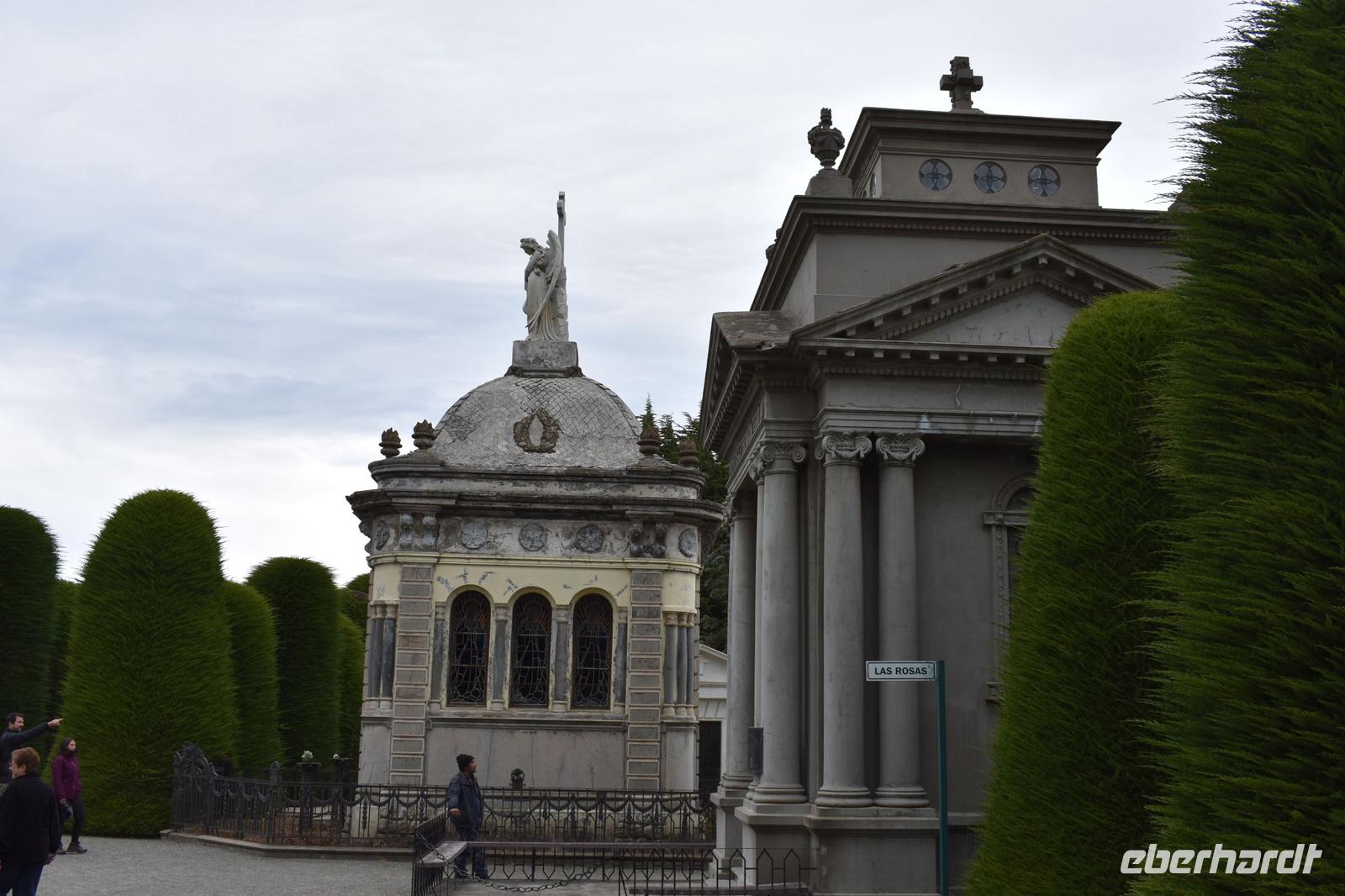 Mit dem Bus ging es zum Aussichtspunkt Sierra de la Cruz, von wir einen schönen Überblick über die Stadt hatten. Wenig später ging es zum Museum Maggioriono Borgatello. Zahlreiche Ausstellungsstücke waren dort zu finden. Darunter ausgestopfte Tiere wie Guanakos, Pumas, Kondore, Pinguine, Robben und andere heimische Tiere Südamerikas. Auch Jagdinstrumente sowie Kleidung und Gebrauchsgegenstände der Indianer waren zu sehen. Der nächste Programmpunkt war der Friedhof Cementerio Municipal Sara Braun. Beeindruckend war hier natürlich wieder die südamerikanische Bauweise, denn hier bekommt jede Familie, die die nötigen finanziellen Mittel aufbringen kann, ein kleines Mausoleum. So fanden wir auch ein paar prachtvolle Grabstätten. Besonders wichtig für die Geschichte der Region sind hier natürlich die Gräber der Familie Braun und der Familie Mendez. Aber auch das Grab des unbekannten Ona-Indianers (einer der vier ethnischen Gruppen der Urbevölkerung in dieser Region) ist auf diesem Friedhof bekannt. Der unbekannte Indianer ging als eine Art Volksheld in die Geschichte ein, da er unschuldiger Weise in einer Bar ermordet wurde und dies als symbolischen Anlass für den Völkermord der Ureinwohner genommen wurde.