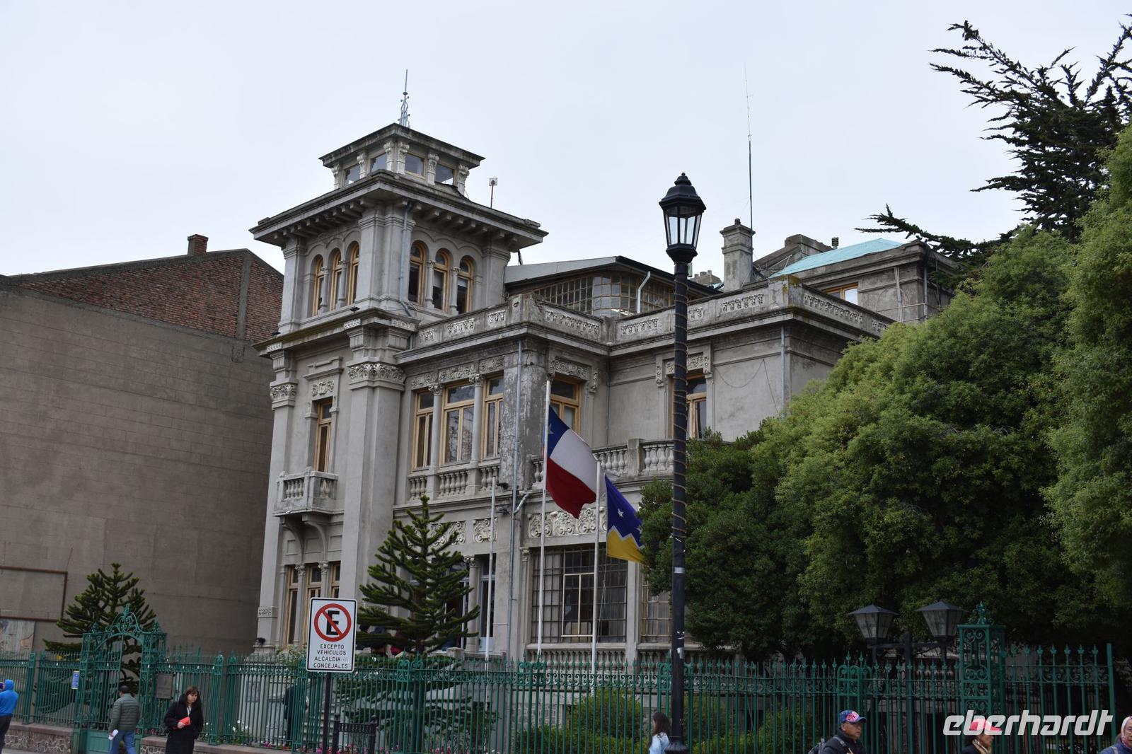 Nach einem frühen Mittagessen zogen wir los zur Besichtigung von Punta Arenas. Erick, unser örtlicher Guide - nun waren wir zwei Eric/k´s - führte uns als ersten in den typischen Mittelpunkt südamerikanischer Städte, der Plaza de Armas. Er berichtete uns von dem Leben und Aufstieg der Familie Braun und Mendoza. Denn diese kamen schnell zu großem Reichtum am Ende des 19. Jahrhunderts. Später spendeten die Nachkommen ihr Vermögen zum Wohle der Allgemeinheit in Punta Arenas.