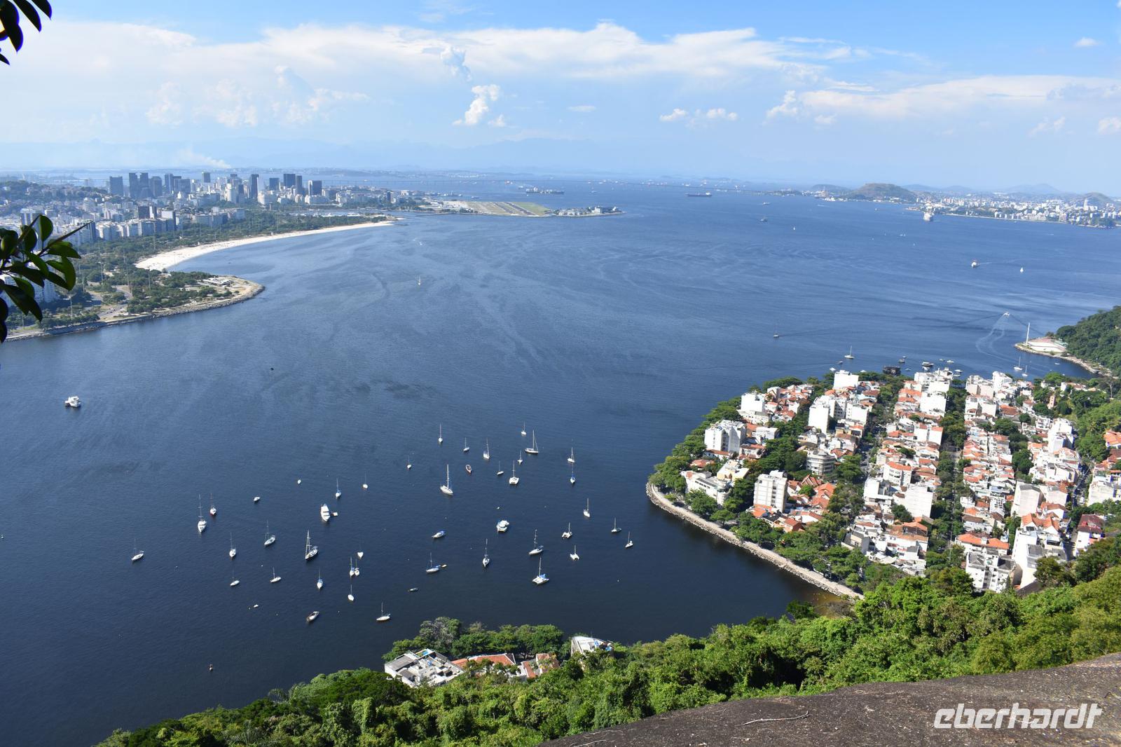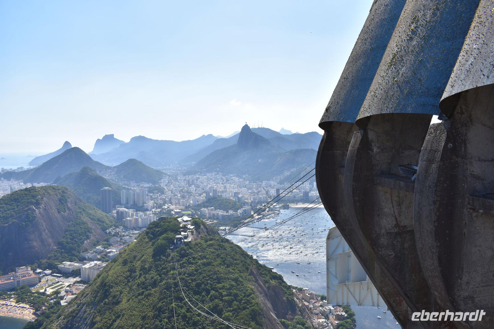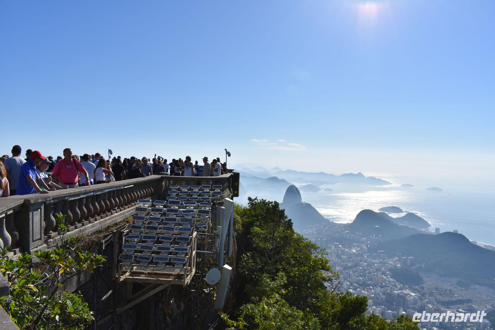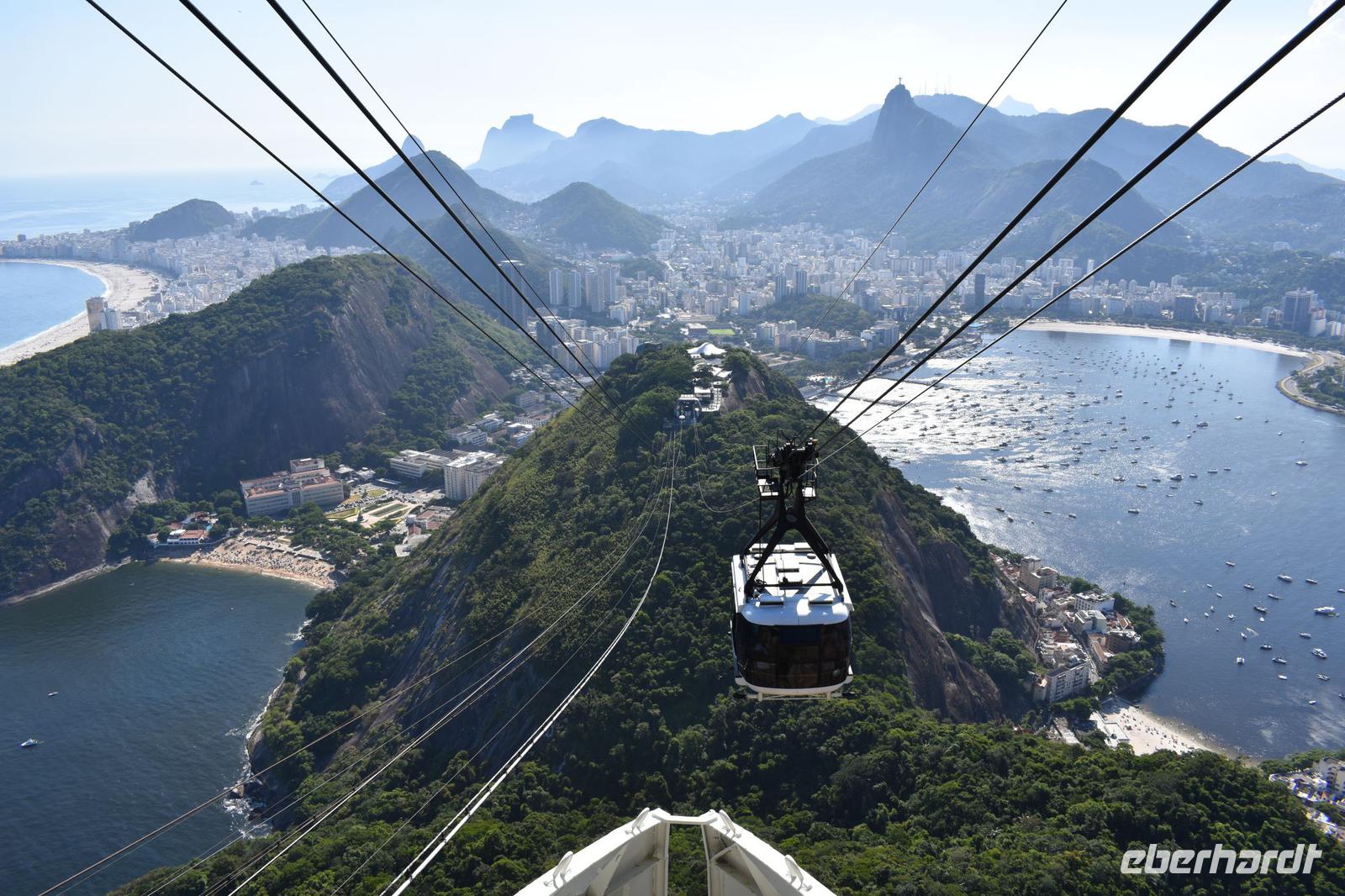 Ein weiteres Highlite von Rio ist natürlich eines der Wahrzeichen der Stadt - der Zuckerhut. Mit der Seilbahn fuhren wir auf den 396 Meter hohen Vulkanschlot. Die Aussicht dort oben ist sagenhaft. Der Blick in die Weite erfüllt einem mit Glück. Gefühlt sind es Tausend kleine Inselchen und Hügelchen, die fließend ineinander übergehen. Dazu die pralle Sonne und die klare Luft - genial!