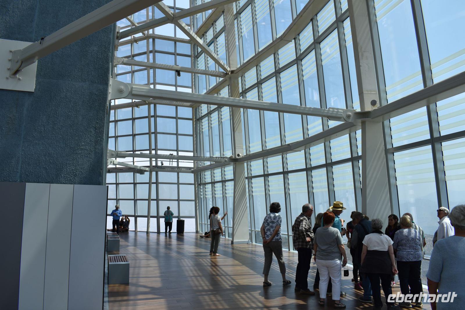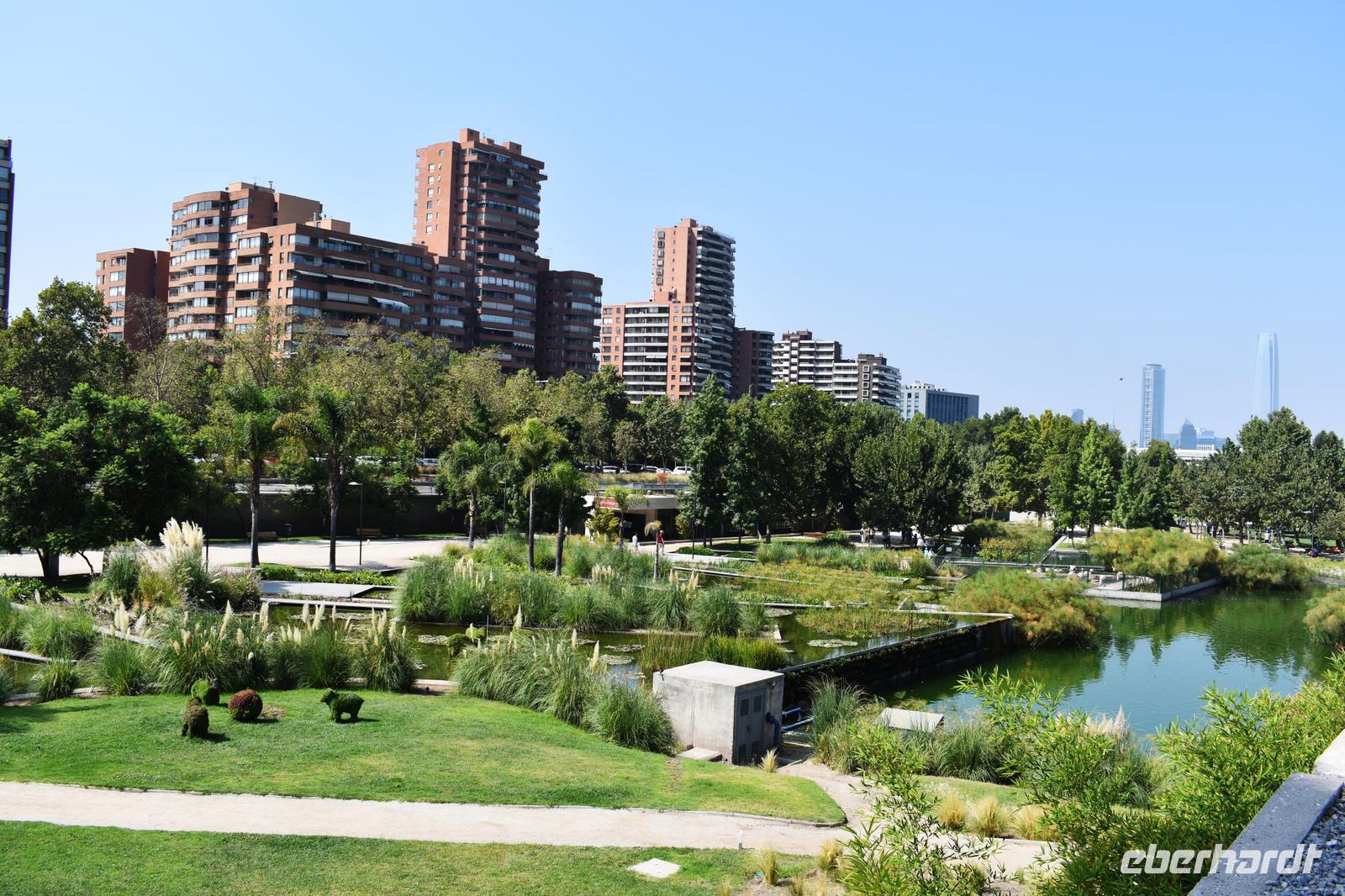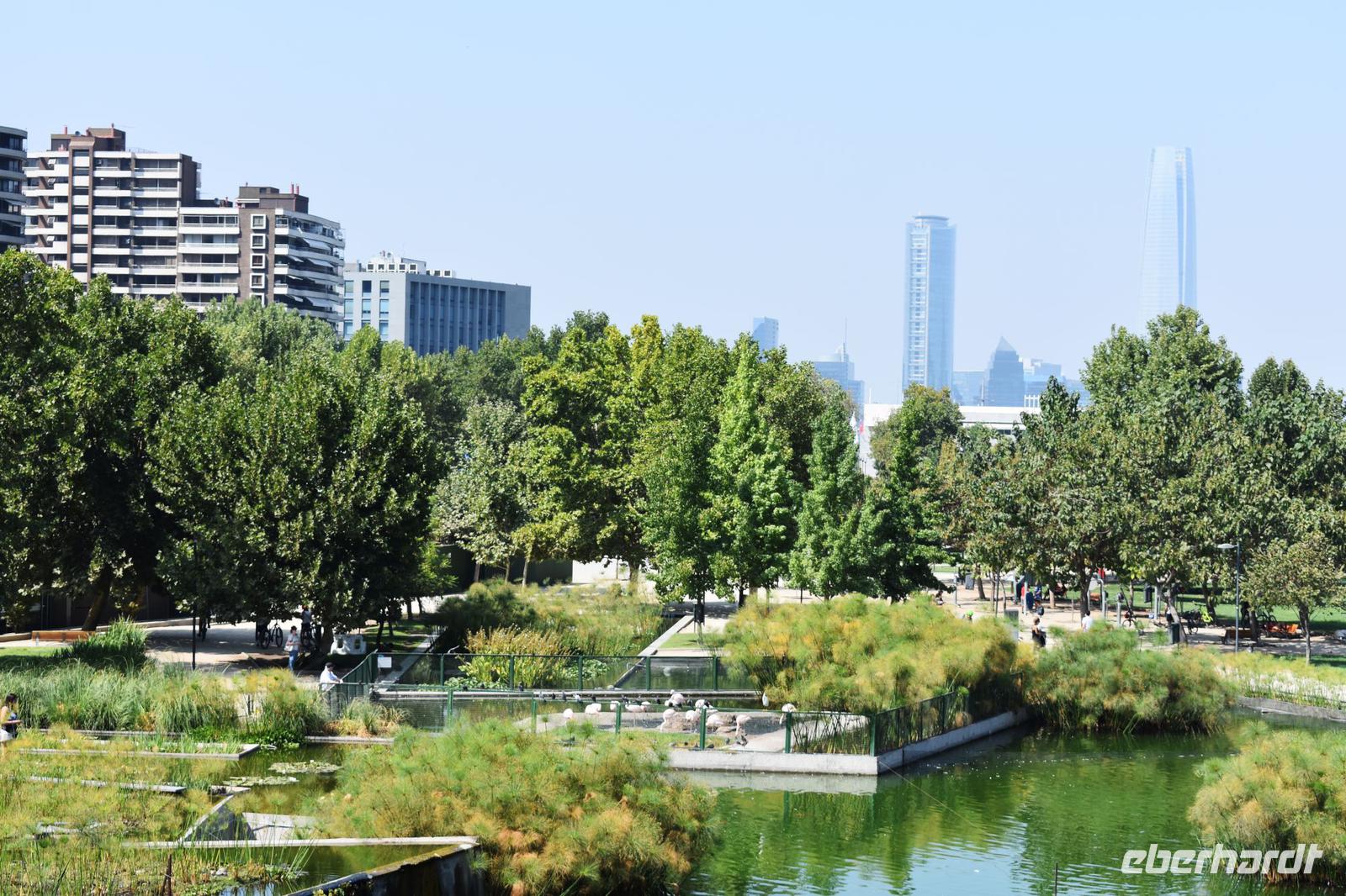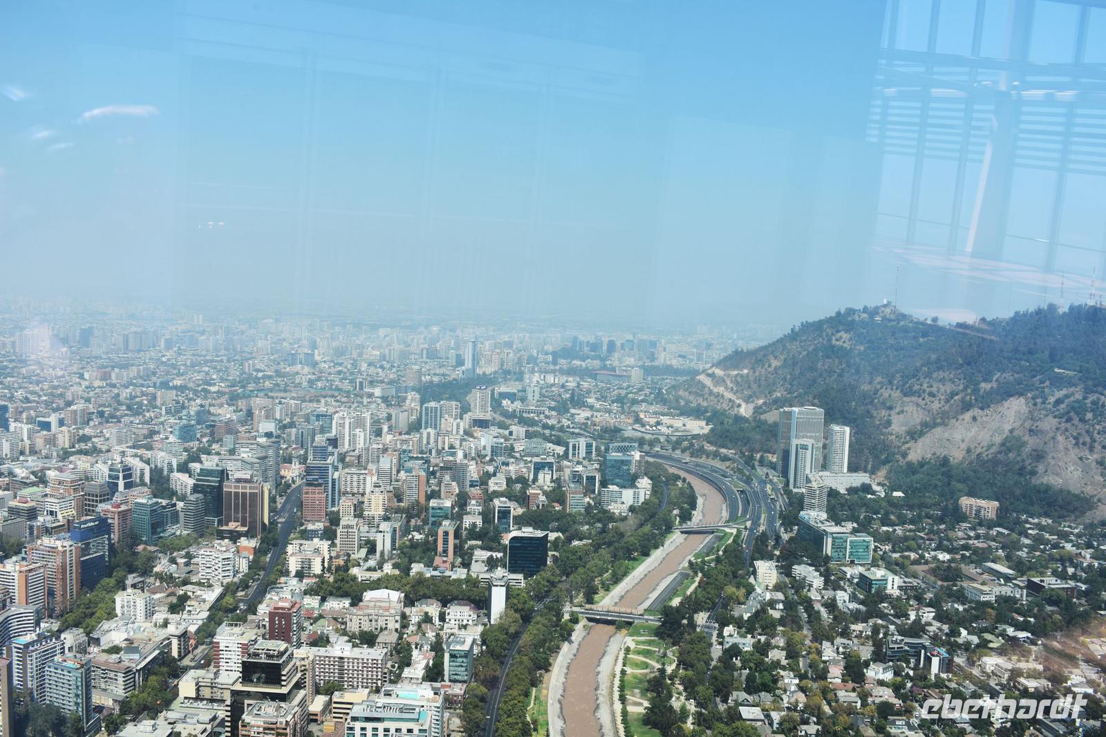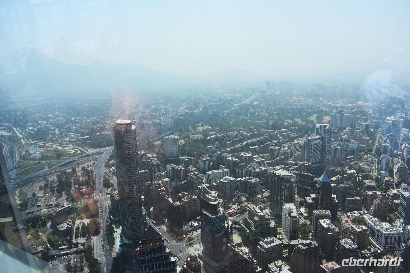 Zum Abschluss unserer Stadtrundfahrt ging es in den Stadtpark Bicentenario, wo wir das chilenische Flair zwischen grünen Bäumen und rosa Flamingos in uns aufnehmen konnten. Der krönende Abschluss war dann das Costanera-Center. Vom höchsten Gebäude Südamerikas, mit dreihundert Metern Höhe, hatten wir eine grandiose Aussicht auf die Stadt. Von den Anden konnte man leider nur Umrisse erkennen, da es doch leicht diesig war. Aber dennoch genossen wir den Blick von oben.