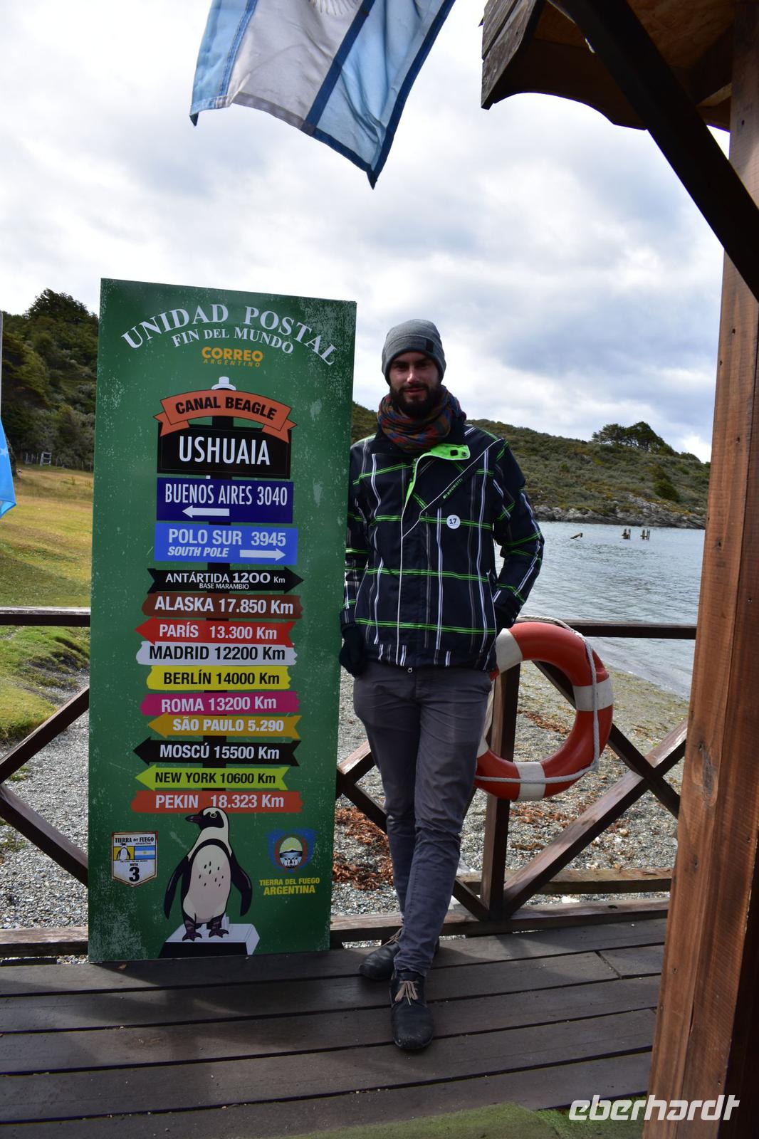 Am Morgen lagen wir mit der Norwegian Sun im Hafen von Ushuaia. Der Name der Stadt bezieht sich auf ein Wort der Ureinwohner-Schamanen und bedeutet so viel wie „Bucht die nach Westen schaut". Wir gingen von Bord und wurden von Gaston begrüßt. Mit dem Bus fuhren wir in südlicher Richtung zur Bahia Lapataia Bucht, die Bucht des guten Holzes. An dieser Stelle endet auch die Straße Nr. 3, die in Buenos Aires begann und hier bei Kilometer 3.045 endet. Unser heutiger Ausflug führte uns weiter zum Besucherzentrum Alakush, wo man ebenfalls ein tolles Panorama genießen konnte. Eisige Gletscher und verschneite Bergkuppen ragen über eintausend Meter in die Höhe. Vor einem tuen sich unterschiedliche Süßwasser Seen, Buchten und Fjorde auf. Teilweise regnet es immer mal wieder. Aber auch die Sonne lässt sich gelegentlich blicken. Wir besuchen weiter den Lago Acigami sowie die Ensenada Bucht. Am südlichsten Postamt der Welt konnte man noch eine gute, alte Postkarte entsenden, bevor wir uns auf unser Kreuzfahrtschiff begaben.