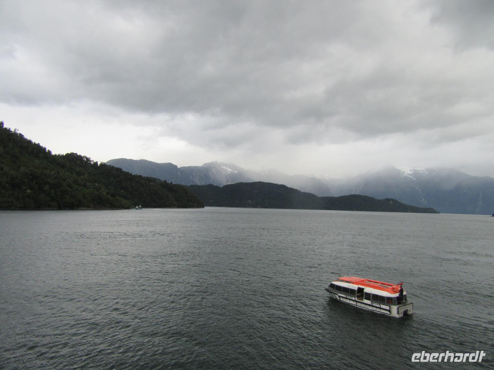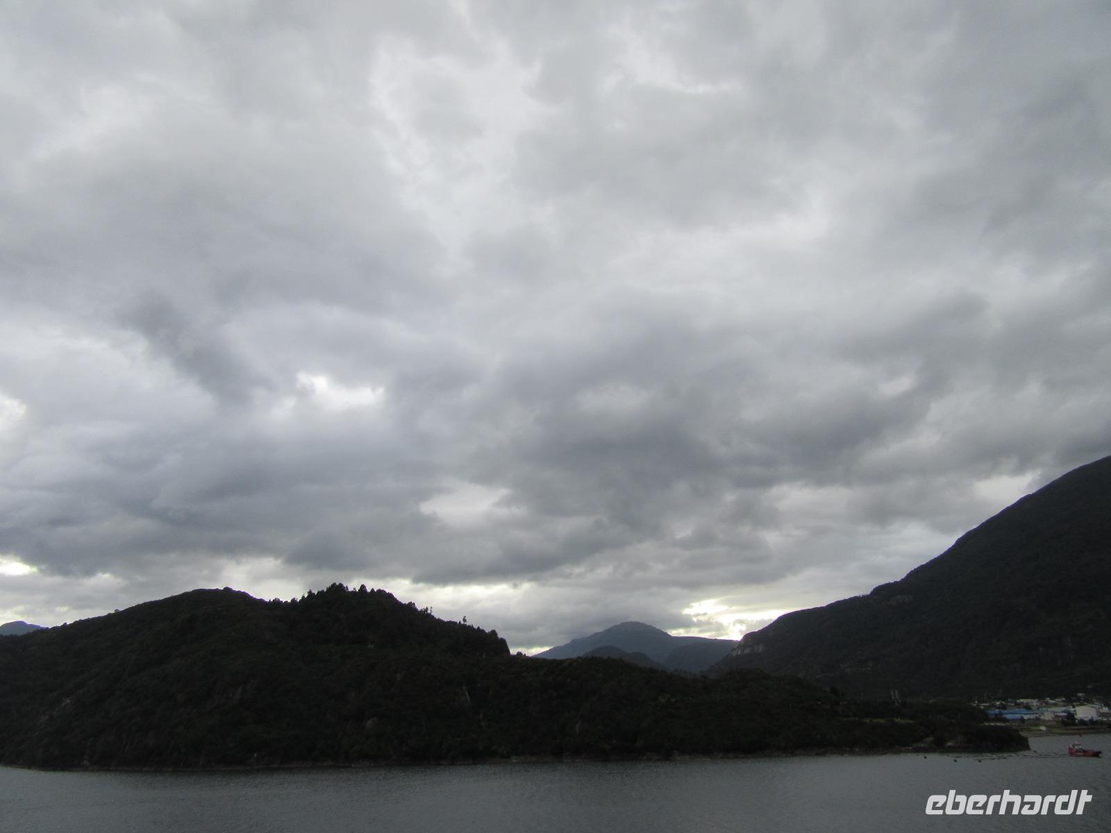 Am Morgen erreichten wir den nächsten Hafen unserer Kreuzfahrt und die Einfahrt nach Puerto Chacabuco war wirklich sehenswert! Wir waren umgeben von schneebedeckten Bergen und einer eindrucksvollen, grünen Naturlandschaft. Um 9.45 Uhr startete dann für uns das gleiche Prozedere wie gestern: wir trafen uns im Theater, um unsere Busnummer zu bekommen und fuhren mit kleinen Tenderbooten an Land. Leider wurden wir auch hier nicht nur von unserem Reiseleiter, sondern auch vom Regen empfangen. Eine hohe Niederschlagsrate ist jedoch normal für diese Region und so konnten wir uns bereits im Voraus auf ein solches Wetter einstellen. Unser örtlicher Reiseleiter Nikola ist erst 17 Jahre alt und 2006 mit seiner Familie aus der Schweiz nach Chile ausgewandert. Er geht in Coyhaique zur Schule und arbeitet nebenbei als Reiseleitung für deutsche Gruppen. Während der Fahrt durch die malerische Landschaft erzählte uns Nikola viel über den landestypischen Mate-Tee, die Auswanderung seiner Familie und über die lokale Flora und Fauna. Nach einer langen Fahrt waren wir froh, dass wir nun nach zwei Stunden den Bus verlassen konnten und die Hauptstadt der Region Coyhaique individuell erkunden konnten. Einige liefen gemeinsam mit unserem Reiseleiter zur Kathedrale, andere schlenderten über den kleinen Kunsthandwerkermarkt. Nach 30 Minuten hieß es schon wieder Abschied nehmen - dies war insbesondere deswegen schade, weil wir nun endlich einmal Sonnenschein hatten. Wir fuhren nur eine kurze Strecke bis zum Mittagsimbiss und stärkten uns bei Wein, Pisco Sour und einigen lokalen Kleinigkeiten wie Empanadas und Fleischspießen. Dann fuhren wir mit dem Bus wieder durch eine tolle Landschaft und unser Guide zeigte jeder Reihe im Bus die Strecke, welche wir heute befahren haben (79 Kilometer vom Hafen bis nach Coyhaique und zurück). Wir freuten uns nach der langen Busfahrt nun alle auf das Naturreservat Rio Simpson mit dem Besucherzentrum und den Ausstellungen zur lokalen Flora und Fauna. Doch leider wurde daraus nichts - unser Guide war so in seine Ausführungen vertieft, dass er die Ausfahrt zum Besucherzentrum verpasste und wir aufgrund des zeitlichen Rahmens nicht mehr umkehren konnten. Die Enttäuschung im Bus war groß, doch Nikola war den ganzen Tag so bemüht, dass ihm keiner böse sein konnte. Stattdessen hielten wir noch bei einer imposanten Hängebrücke, machten einige Fotos und fuhren anschließend zurück zum Schiff. Um 19 Uhr trafen wir uns dann zum gemeinsamen Abendessen und genossen erneut ein leckeres 3-Gang-Menü. Anschließend fand eine Flamenco-Veranstaltung statt, die ich mit einigen Gästen besuchte. Danach trafen sich einige Gäste noch für einen Drink in der Observation Lounge oder in einer der anderen Bars.