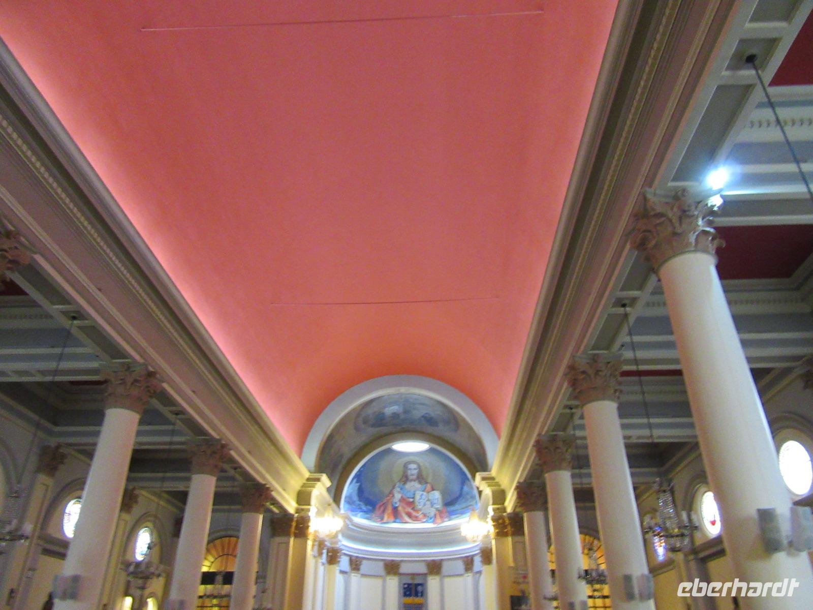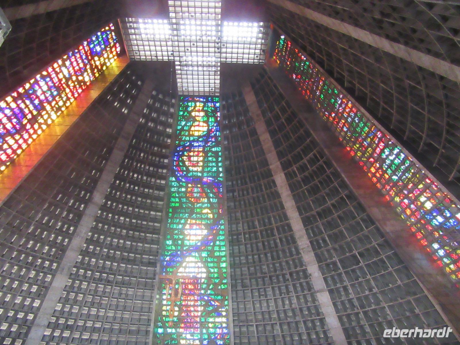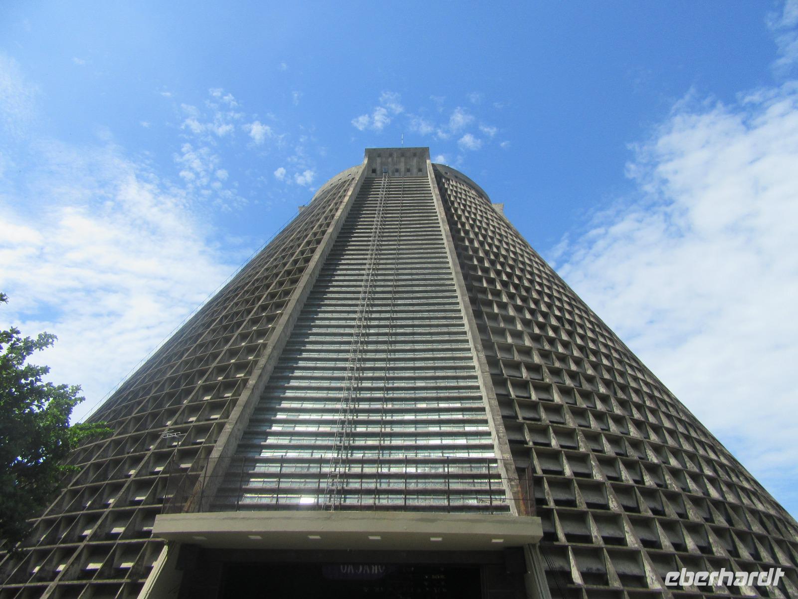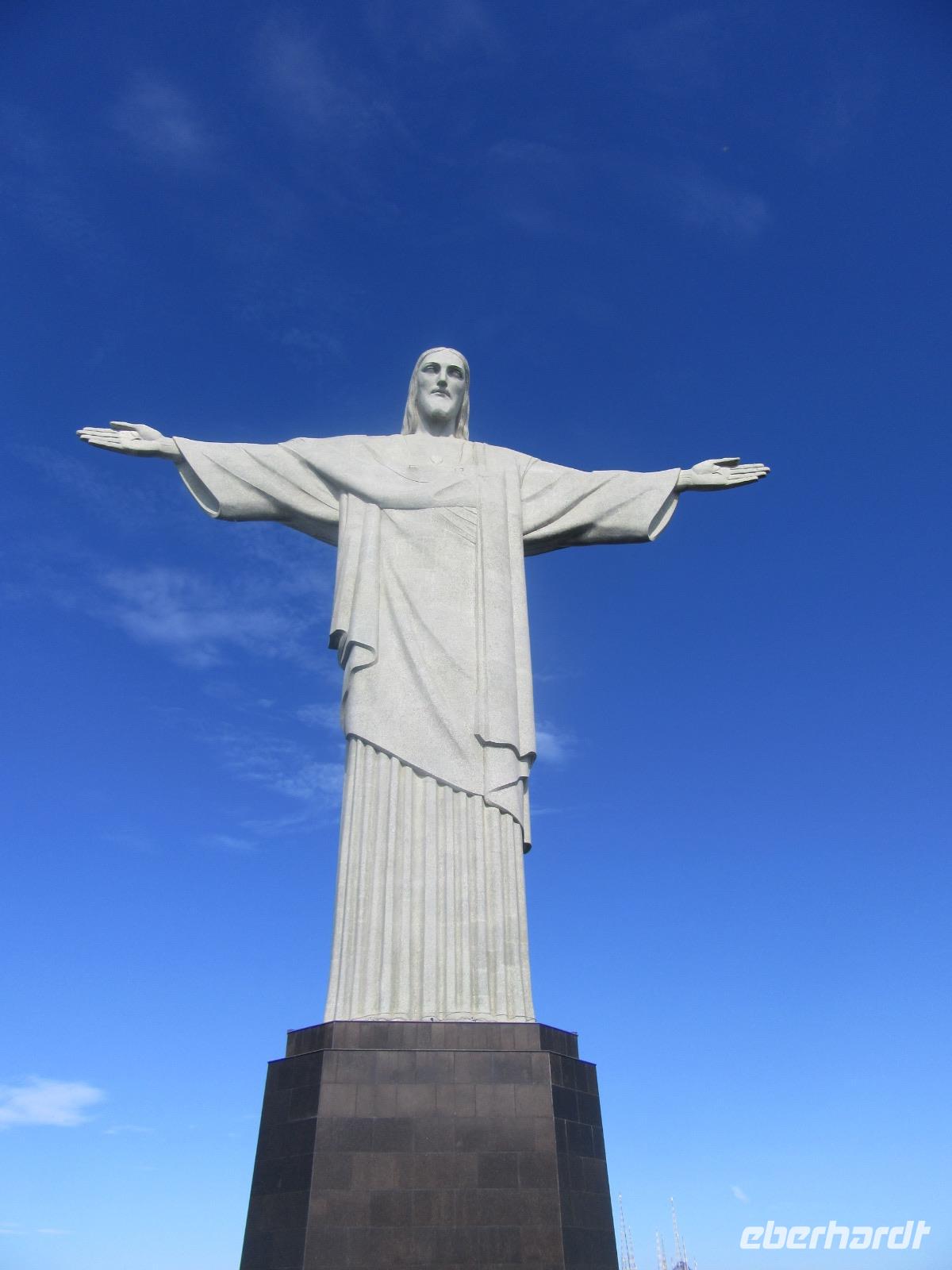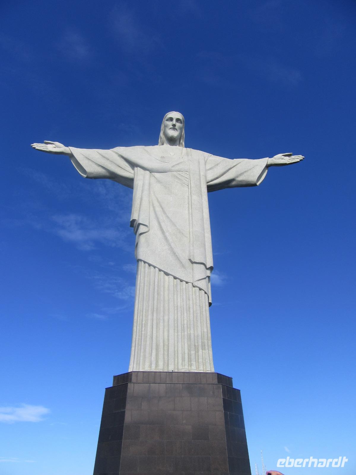 Nach einer kurzen Nacht geht es heute bereits um 7.30 Uhr los zum Corcovado. Die beeindruckende Jesus-Statue erreichten wir mit einer Zahnradbahn. Wir fuhren zunächst gemütlich durch den kleinen Nationalpark Tijuca und genossen den Ausblick und den leichten Fahrtwind. Oben angekommen, hatten wir zunächst keine gute Sicht, doch die Wolken verzogen sich zum Glück schnell und so konnten wir die Umgebung betrachten. Die letzten Meter bis zum Gipfel führten uns über eine Treppe mit 220 Stufen. Alternativ konnten die Gäste auch den Aufzug sowie die Rolltreppen nehmen. Die monumentale Christusstatue Cristo Redentor selbst bot uns ebenfalls einen beeindruckenden Anblick. Die Statue, welche 1931 eingeweiht wurde, ist 30 Meter hoch und 28 Meter breit (von Hand zu Hand gemessen). Anschließend fuhren wir mit der Bahn wieder zurück und machten uns noch auf den Weg zur Kathedrale, die am Vortag leider geschlossen war. Die Kathedrale San Sebastian von Rio de Janeiro wurde in einem modernen Stil entworfen, der auf dem Maya-Baustil der Pyramiden basiert. Besonders beeindruckend sind die vier geradlinigen Glasfenster, welche 64 Meter vom Boden bis zur Decke empor ragen. Unser Weg führte uns schließlich zurück zum Hotel und so konnte der Nachmittag wieder individuell gestaltet werden. Mit einigen Gästen besuchte ich ein landestypisches Restaurant und wir genossen leckeres Fleisch vom Spieß. Den Nachmittag verbrachten wir auf der Dachterrasse unseres Hotels bei einem erfrischenden Caipirinha. Um 19.00 Uhr trafen wir uns dann im hoteleigenen Restaurant zum Abendessen und anschließend erneut auf der Dachterrasse, um noch einmal auf unsere gemeinsame Reise, die vielen tollen Erlebnisse und die gemeinsame Zeit anzustoßen. Wir ließen die drei Wochen noch einmal Revue passieren und saßen gemütlich zusammen bis die Dachterrassen gegen 22.00 Uhr geschlossen wurde.