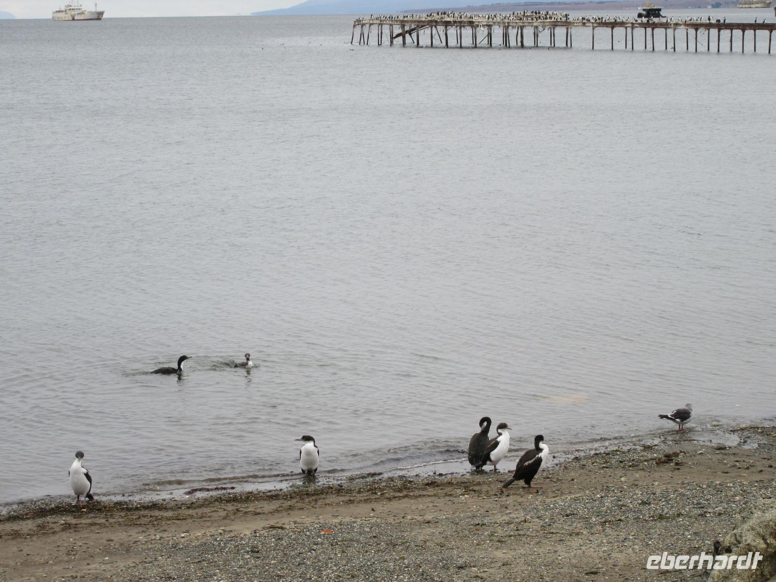 Unser heutiger Tag begann bereits sehr früh: um 7.00 Uhr trafen wir uns an unserem üblichen Treffpunkt auf Deck 5, um gemeinsam das Schiff zu verlassen und unseren Reiseleiter für unseren heutigen Eberhardt-Ausflug zu treffen. Wir machten uns zunächst einige Minuten zu Fuß auf den Weg entlang des Hafens, um unseren Bus zu erreichen und starteten dann Richtung Halbinsel Valdes. Zunächst fuhren wir ca. 45 Minuten bis zum Besucherzentrum, wo wir viel Wissenswertes über die lokale Flora und Fauna erfuhren. Bereits während der Fahrt erblickten wir immer wieder die heimischen Tiere wie Schafe und Guanakos, die zur Gattung der Lama zählen. Nach unserem ersten Stopp fuhren wir noch weiter über unbefestigte Straßen und konnten die Naturlandschaft auf uns wirken lassen. Zwischendurch legte unser Busfahrer immer wieder Fotostopps ein, damit wir die Tierwelt mit unseren Kameras festhalten konnten. Schließlich erreichten wir unseren nächsten Stopp und spazierten zu einem Aussichtspunkt, von dem wir unzählige südamerikanische Seelöwen beobachten konnten. Wir waren nicht nur von dem Anblick fasziniert, sondern auch von den eigenartigen Geräuschen der Seelöwen. Wir hatten genügend Zeit für schöne Foto- und Videoaufnahmen, bevor wir uns auf den Weg zum heutigen Höhepunkt machten: die größte Magellan-Pinguinkolonie der Welt. Wir wurden von einem offenen Kleinbus abgeholt und fuhren direkt in den Lebensraum der Pinguine hinein, welche hier einen schönen Platz zum Leben und Brühten haben. Wir unternahmen einen tollen Spaziergang entlang der kleinen Höhlen der Pinguine und waren hautnah am Geschehen. Von der Nähe der Tiere waren alle begeistert und so konnten wir viele einmalige Aufnahmen mit den Magellan-Pinguinen machen - eine tolle Erinnerung und eine große Entschädigung für die drei Tage auf See, die wir zuvor verbrachten haben. Danach erwartete uns noch ein landestypisches Mittagessen mit Wurst, Käse, Oliven, gefüllten Teigtaschen und Lammfleisch. Gestärkt machten wir uns dann wieder auf den Weg zum Hafen, da unser Schiff um 16.00 Uhr wieder ablegte, um Kurs in Richtung Montevideo zu nehmen. Heute trafen wir uns dann um 19.00 Uhr zum gemeinsamen Abendessen und ließen danach den Abend wieder gemeinsam ausklingen.