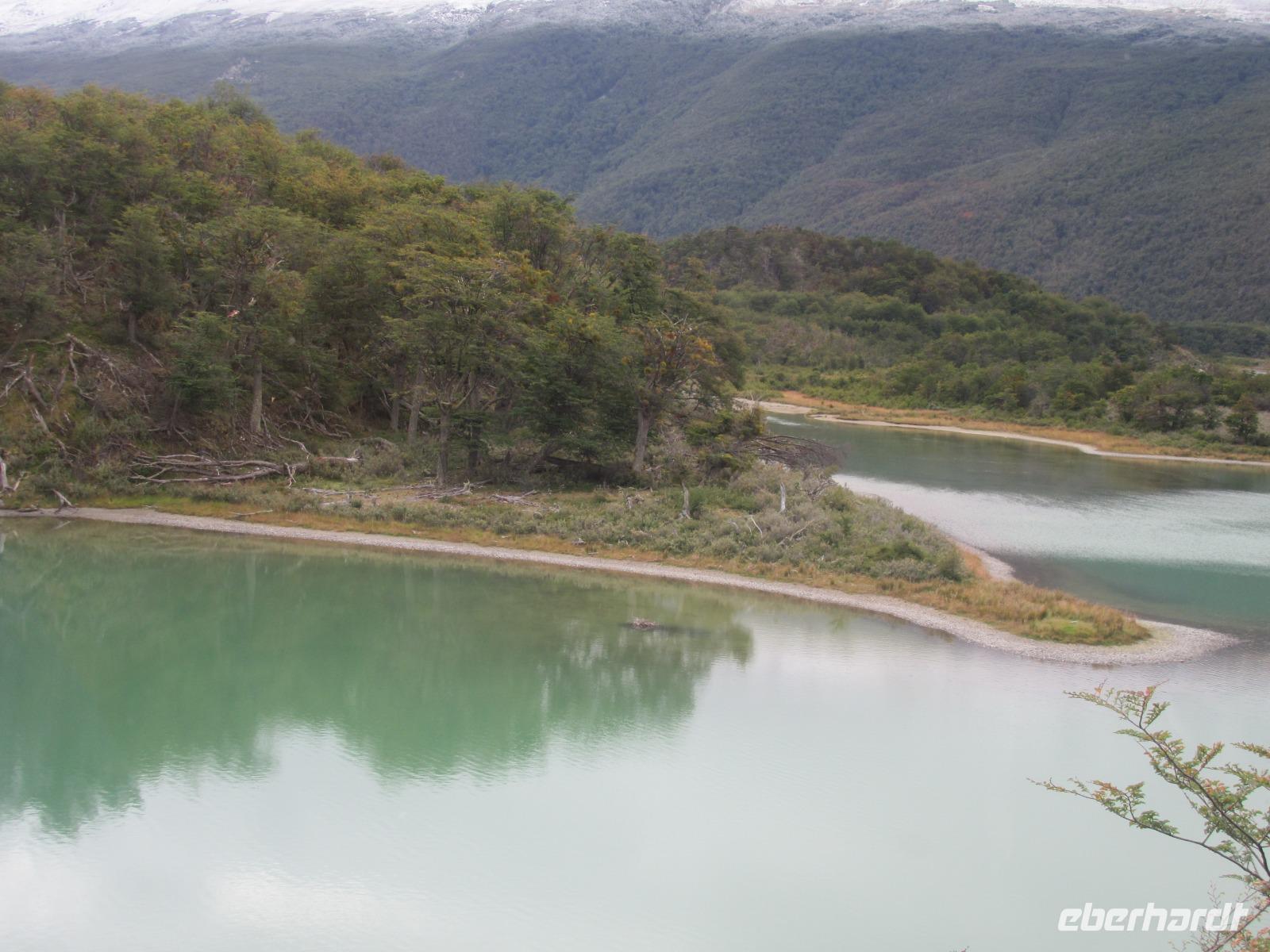 Heute lohnte sich frühes Aufstehen - ab 6.30 Uhr passierten wir eine malerische Gletscherlandschaft und konnten nach Sonnenaufgang tolle Fotoaufnahmen machen. Gegen Mittag erreichten wir dann Ushuaia, den ersten Hafen in Argentinien: Willkommen am Ende der Welt! Einige Gäste unternahmen eine Fahrt zur Pinguinkolonie, doch der Großteil fuhr in den Feuerland Nationalpark. Das Wetter war auch hier wieder sehr wechselhaft und so starteten wir unsere Tour bei leichtem Regen, hatten zwischendurch ein wenig Sonne und wurden sogar von einem Schneeschauer überrascht - wir durchlebten also alle vier Jahreszeiten während unseres heutigen Ausflugs. Das erlebt man auch nicht alle Tage und so nahmen wir das wechselhafte Wetter gelassen. Wir erkundeten den Tierra del Fuego Nationalpark mit seinen malerischen Seen, wilden Flüssen und grünen Wäldern. Wir passierten den Pipo Fluss, welcher nach einem ehemaligen Gefangenen benannt wurde, der aus dem Gefängnis ausbrach und in diesem Fluss ertrank, hielten an verschiedenen Aussichtspunkten wie dem Lago Fagnano und besuchten das südlichste Postamt der Welt an der Ensenada Bay. Der eine oder andere Daheimgebliebene kann sich also auf eine ganz besondere Postkarte vom Ende der Welt (el fin del mundo) freuen. Zwischendurch verbrachten wir eine Pause im Besucherzentrum Alaksuh, wo wir einen Kaffee trinken konnten sowie etwas zur Geschichte der ersten Einwohner von Ushuaia sowie der lokalen Flora und Fauna erfuhren. Durchgefroren und mit vielen neuen Eindrücken kamen wir am Nachmittag wieder zu unserem Schiff zurück - wir verbrachten einen tollen Tag am Ende der Welt! Einige Reisegäste spazierten dann noch durch das Zentrum von Ushuaia, andere wärmten sich an Bord erst einmal wieder auf. Die Stadt Ushuaia hat ca. 70.000 Einwohner und erstreckt sich etwa 9.400 Quadratkilometer entlang des Beagle-Kanals. Um 19.00 Uhr gab es dann wieder ein gemeinsames leckeres Abendessen im Four Seasons Restaurant und anschließend trafen wir uns zu unserer abendlichen Cocktailrunde an der Bar.