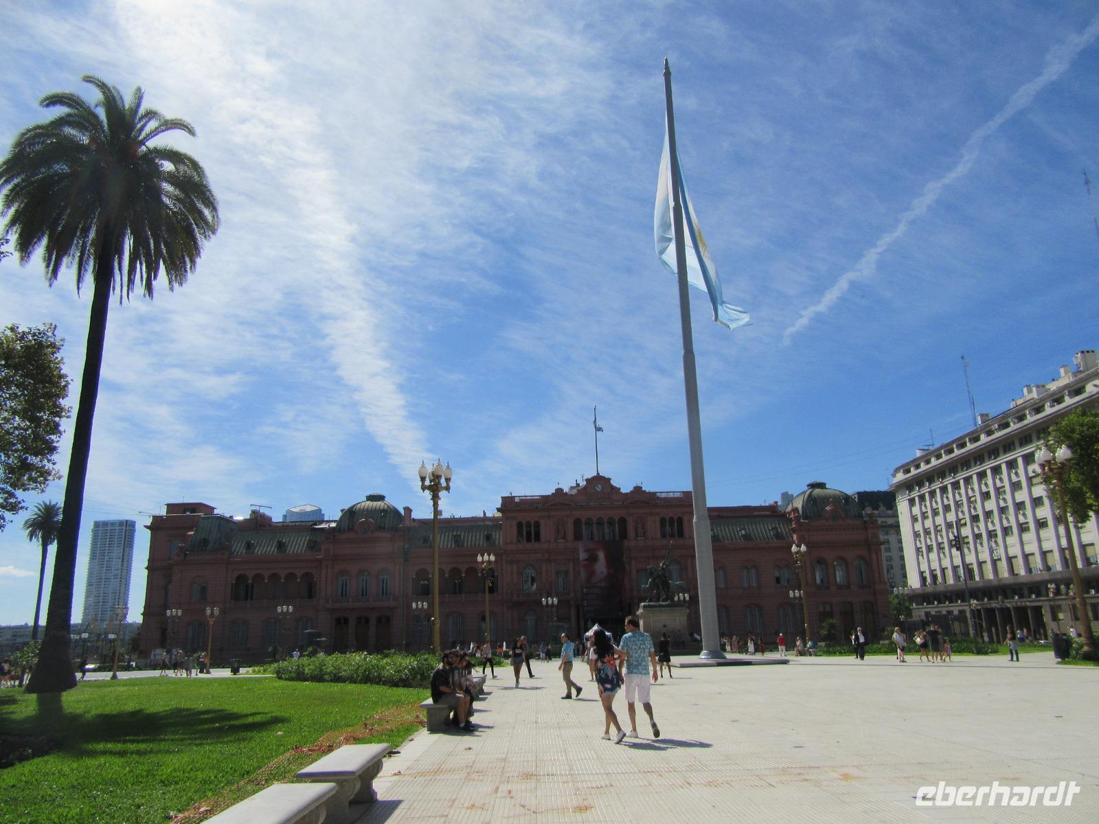 Am Morgen stärkten wir uns noch einmal bei einem Frühstück an Bord und trafen uns um 9.00 Uhr, um gemeinsam das Schiff zu verlassen. Am Hafenterminal von Buenos Aires wurden wir dann von unserer Reiseleiterin in Empfang genommen. Aufgrund des Andrangs am Hafen mussten wir noch kurz auf unseren Bus warten und konnten dann unsere heutige Stadtrundfahrt durch die argentinische Hauptstadt starten. Bei traumhaften Wetter entdeckten wir die Höhepunkte der Stadt wie den Plaza de Mayo mit dem Casa Rosada und der Kathedrale, das Opernhaus sowie das Stadtviertel La Boca. Hier blieb genügend Zeit, um das Viertel auf eigene Faust zu erkunden. Es ist geprägt von farbenfrohen Häusern, Tango-Tänzern und einem kleinen Kunsthandwerkermarkt. Wir ließen das bunte Treiben auf uns wirken und hätten hier noch stundenlang weiter schlendern können. Anschließend genossen wir ein leckeres Mittagessen mit einer großen Auswahl an Salaten, frischem Fleisch und einem leckeren Schokobrunnen mit Früchten. Nach dieser stärkenden Mittagspause spazierten wir noch an der Uferpromenade entlang und fuhren dann entlang grüner Parkanlagen bis zum Friedhof. Wir besuchten das Grab von Evita und bestaunten die imposanten Mausoleen, bevor wir unsere heutige Stadtrundfahrt mit dem Besuch der nahegelegenen Kirche beendeten. Am Nachmittag fuhren wir schließlich zum nationalen Flughafen von Buenos Aires und verabschiedeten uns von unserer Reiseleiterin und unserem Busfahrer. Auch wenn uns nicht viel Zeit blieb, um die argentinische Hauptstadt zu erkunden, haben wir einen tollen Einblick bekommen und die Höhepunkte kennengelernt. Am Abend erreichten wir dann planmäßig Iguazu und wurden von unserem Reiseleiter Eduard begrüßt. Da wir auf der argentinischen Seite gelandet sind, unser Hotel jedoch auf der brasilianischen Seite gelegen ist, mussten wir noch die Grenzformalitäten abwickeln. So wurden alle Reisepässe in Argentinien ausgestempelt und in Brasilien wieder eingestempelt - alles verlief reibungslos und gegen 22.00 Uhr erreichten wir schließlich unser Hotel. Trotz der Erschöpfung genossen wir noch ein leckeres Abendessen im Hotel und fielen dann müde, aber dennoch zufrieden in unsere Hotelbetten.