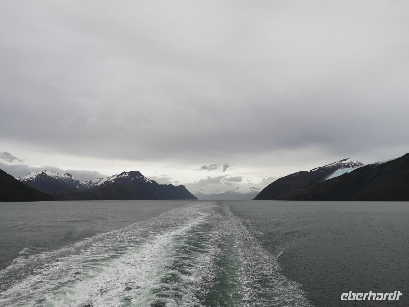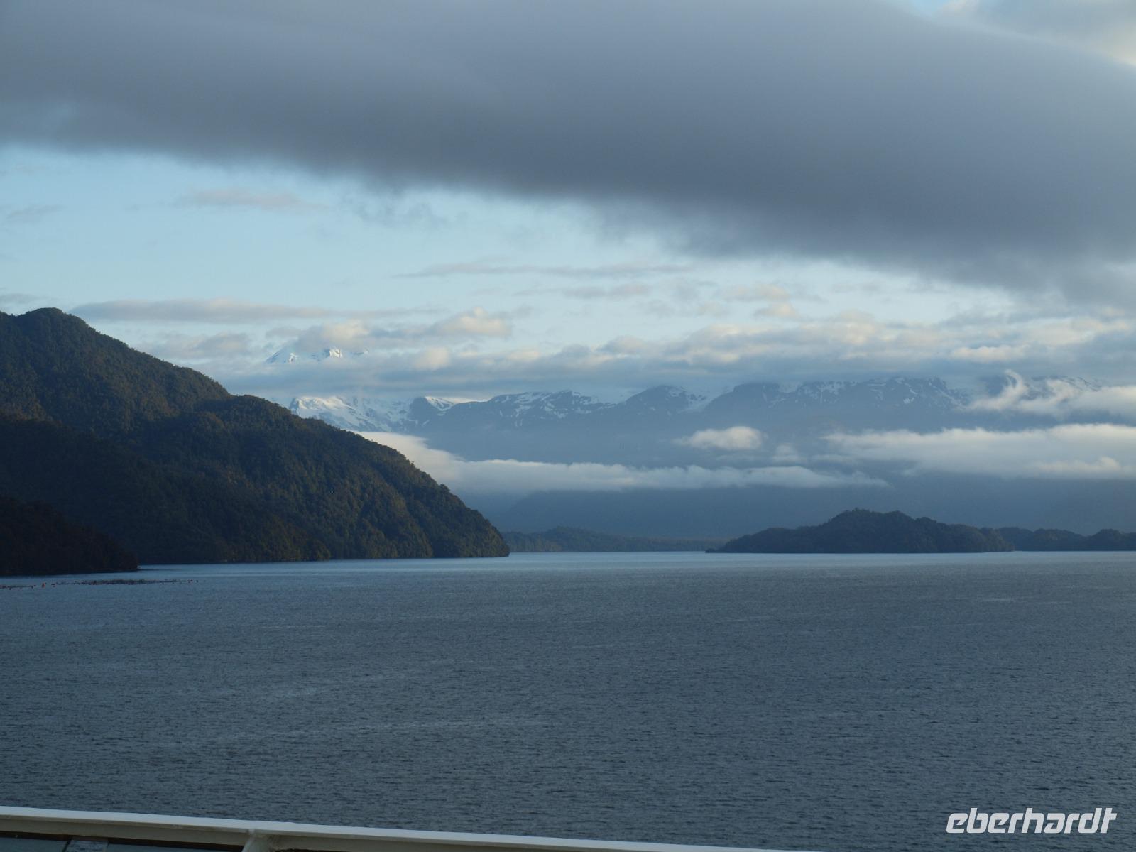 Wir erreichen die chilenischen Fjorde, bereits früh am Morgen haben wir eine beeindruckende Kulisse an Deck, die es mit der Kamera einzufangen gilt. Nach dem Frühstück erreichen wir dann auch den Hafen von Puerto Chacabuco, auch hier werden wir wieder tendern um an Land zu kommen. Etwas chaotisch, da recht viele Ausflüge auf einmal beginnen, aber irgendwie schaffen wir es dann doch an Land und in den richtigen Bus, der noch einmal ausgetauscht wird und wir schließlich mit dem Programm starten können. Wir fahren durch die alte Hafen- und Hauptstadt der Region Aysen, Port Aysen. Entlang der Strecke sehen wir eine tolle Landschaft an uns vorbeiziehen, schneebedeckte Berge, Wasserfälle, Moore... Nach einiger Fahrtzeit erreichen wir ein Besucherzentrum am Flussufer des Flusses Simpson. Hier unternehmen wir einen Spaziergang am Ufer um etwas von dieser tollen Natur hautnah zu erleben. Danach fahren wir noch in die neue Hauptstadt der Region, nach Coyhaique, haben etwas Zeit zum Füße vertreten und fahren schließlich wieder zurück zum Hafen. Wenig später sehen wir uns zum Abendessen, einem Absacker an der Bar und im Theater zur Show wieder.