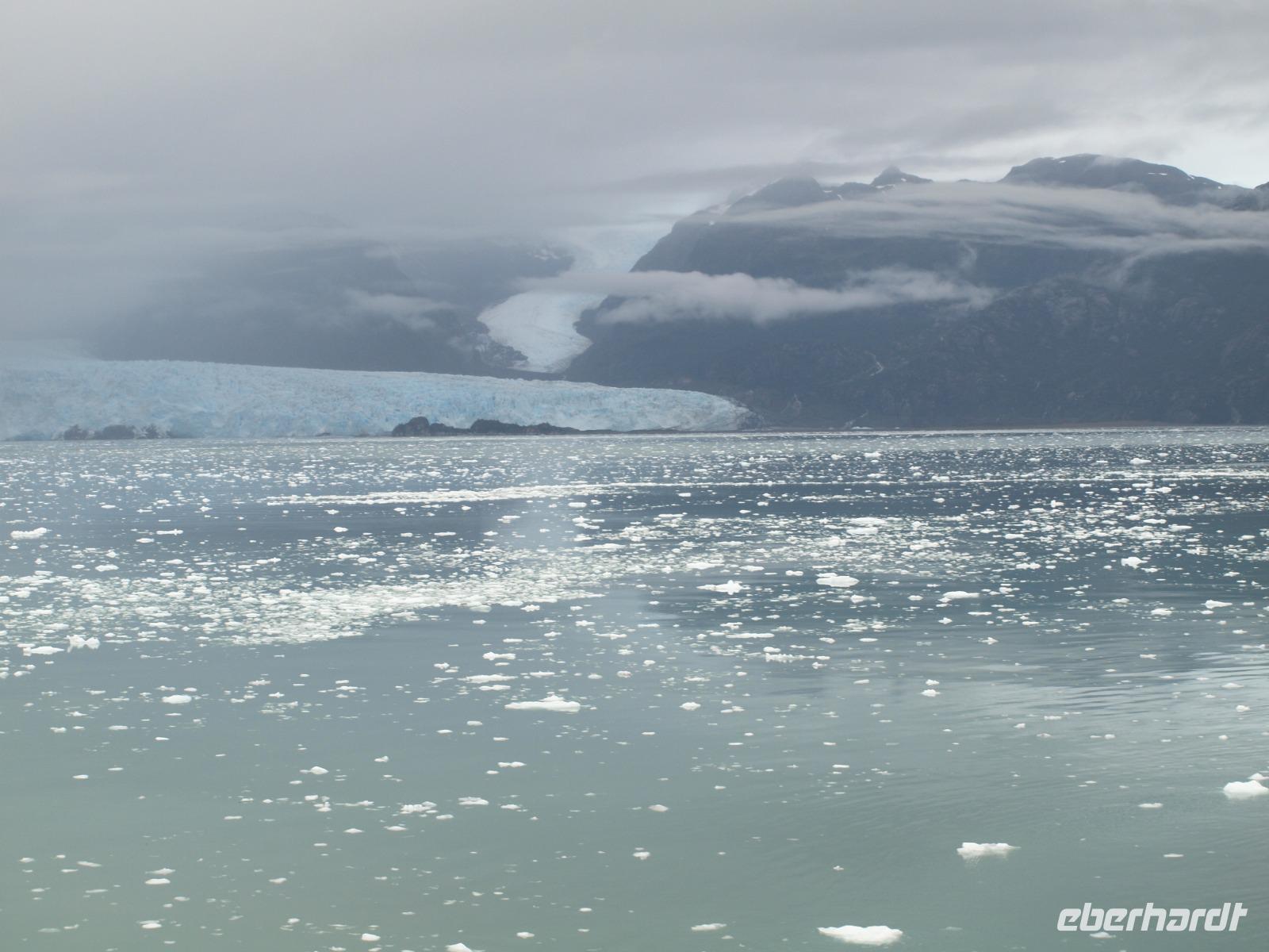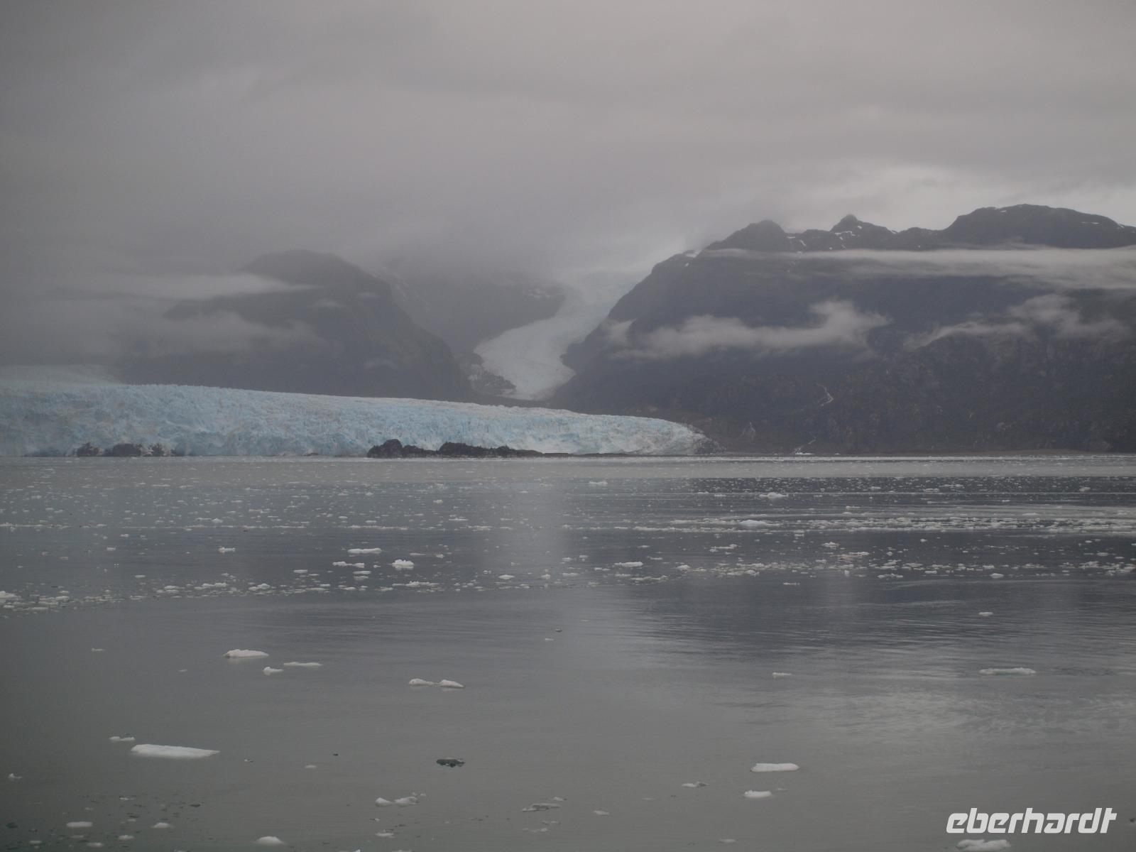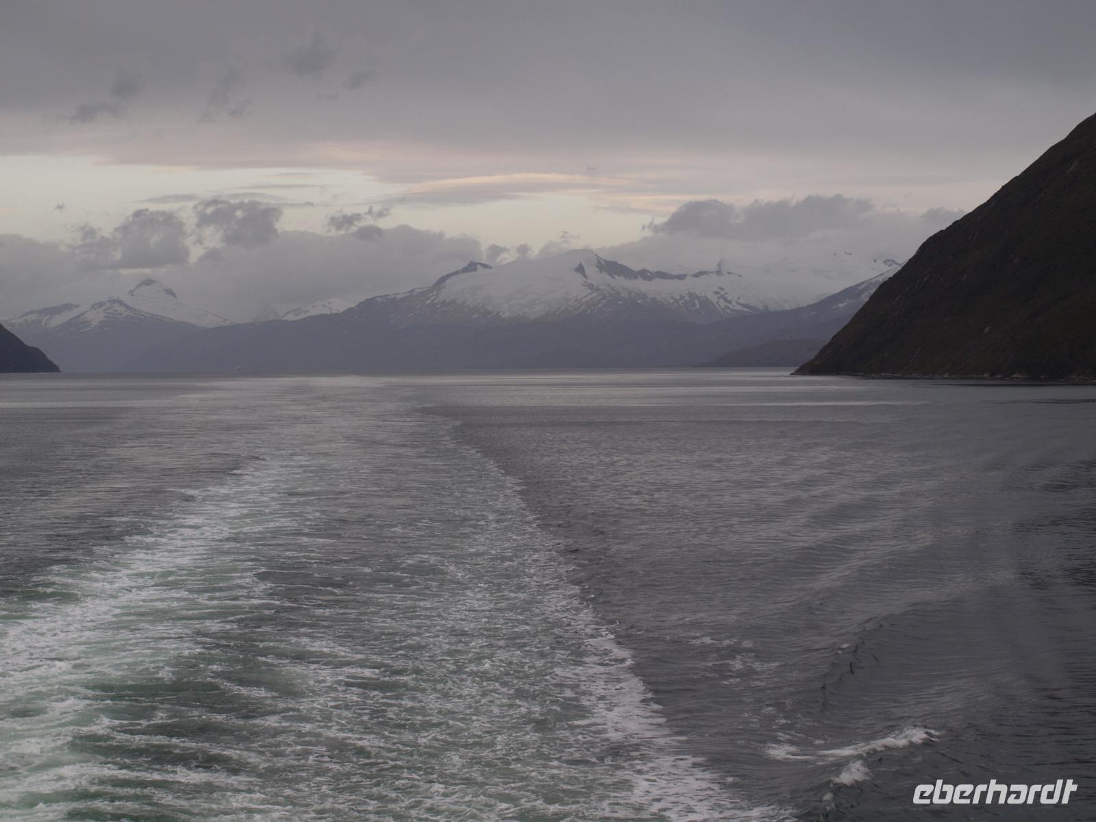 Früh am Morgen werden wir mit einer schrillen Bordansage darauf hingewiesen, dass wir den Beagle Kanal und seine Gletscherparade erreicht haben. Eingepackt in warmen Klamotten stehen wir nun also an Deck und warten auf den perfekten Moment um den Auslöser der Kamera zu bedienen. Vier große Gletscher, die nach dem Herkunftsländern bekannter Entdecker benannt sind haben unsere volle Aufmerksamkeit: Romanche, Alemania, Hollandia und Francia. Der Beagle Kanal wurde übrigens während der ersten Expedition von der Besatzung der „Beagle" und der „Adventure" (1826-1830) entdeckt. Es ist beeindruckend diese gewaltigen Eismassen zu sehen.
