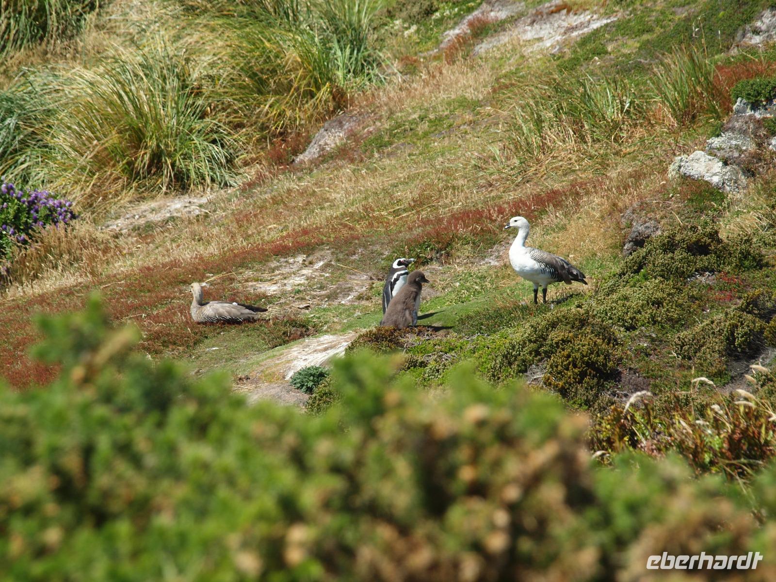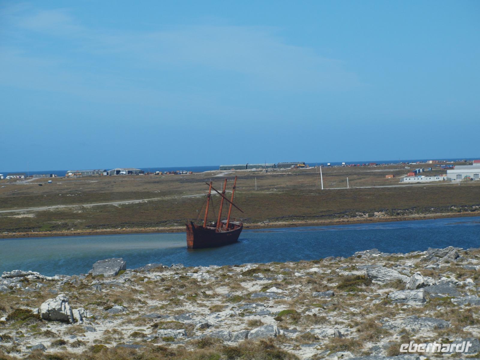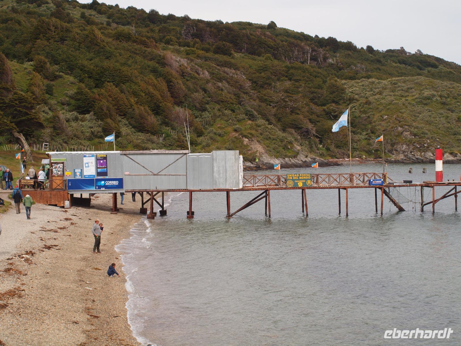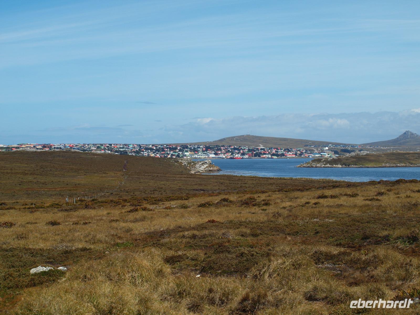 Da heute nicht alle von uns einen Ausflug über unser Schiff gebucht haben, unternehmen wir einen eigenen kleinen Ausflug. So versuchen wir gegen 11 Uhr von Bord zu gehen, was sich als etwas schwierig gestaltet, da die Fahrzeit mit den Tenderbooten nach Stanley wesentlich länger dauert, als bei den anderen Häfen. So stehen wir recht lange Schlange und endlich wieder Land unter unseren Füßen zu haben. Gleich am Hafen sehen wir schon die lebendigen Reklameschilder auf welchen „Gypsy Cove" zu lesen ist. Wir ergattern uns die Tickets und schlagen uns zum Bus durch. Die Transferzeit dauert etwa 15 Minuten. Bei schönstem Wetter erreichen wir die kleine Kolonie der Magellanpinguine. Ein kurzer Rundweg führt uns quasi an den Nestern der kleinen Frackträger vorbei, sogar einige Jungtiere sind zu erspähen. Zurück in Stanley schlendern wir noch etwas die Hafenstraße auf und ab, in einem gemütlichen Café kehren wir zum Ende hin noch ein und genießen einen warmen Kaffee und ein Stück Kuchen - richtig lecker! Auf dem Weg zurück zum Hafen sehen wir schon von weitem die lange Schlange - na dann stellen wir uns mal an um auf unser schwimmendes Hotel zurück zu kommen.