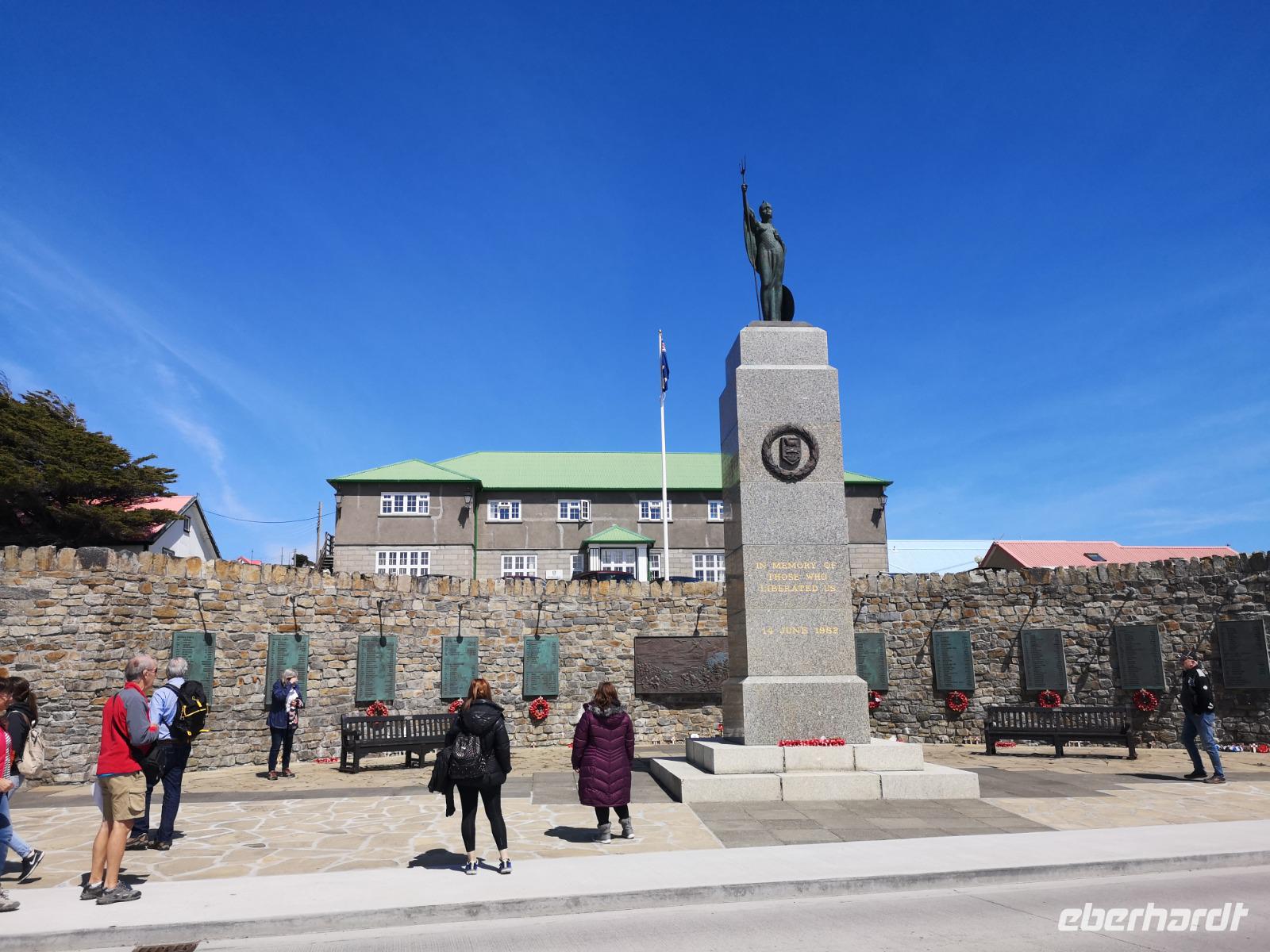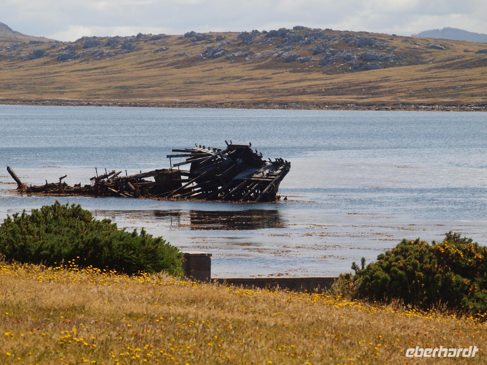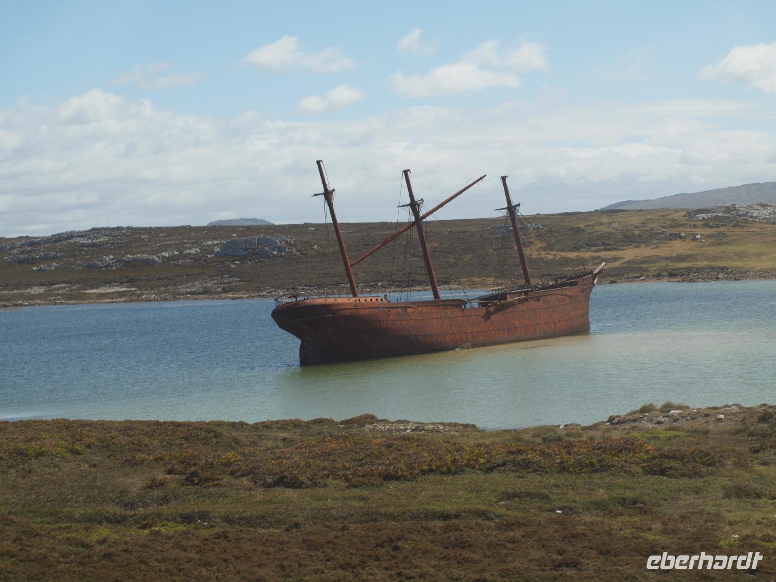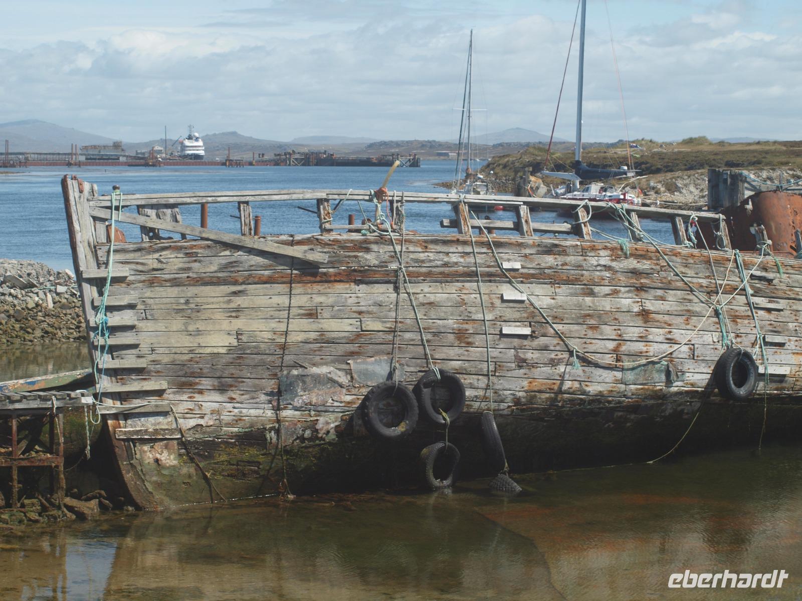 Da heute nicht alle von uns einen Ausflug über unser Schiff gebucht haben, unternehmen wir einen eigenen kleinen Ausflug. So versuchen wir gegen 11 Uhr von Bord zu gehen, was sich als etwas schwierig gestaltet, da die Fahrzeit mit den Tenderbooten nach Stanley wesentlich länger dauert, als bei den anderen Häfen. So stehen wir recht lange Schlange und endlich wieder Land unter unseren Füßen zu haben. Gleich am Hafen sehen wir schon die lebendigen Reklameschilder auf welchen „Gypsy Cove" zu lesen ist. Wir ergattern uns die Tickets und schlagen uns zum Bus durch. Die Transferzeit dauert etwa 15 Minuten. Bei schönstem Wetter erreichen wir die kleine Kolonie der Magellanpinguine. Ein kurzer Rundweg führt uns quasi an den Nestern der kleinen Frackträger vorbei, sogar einige Jungtiere sind zu erspähen. Zurück in Stanley schlendern wir noch etwas die Hafenstraße auf und ab, in einem gemütlichen Café kehren wir zum Ende hin noch ein und genießen einen warmen Kaffee und ein Stück Kuchen - richtig lecker! Auf dem Weg zurück zum Hafen sehen wir schon von weitem die lange Schlange - na dann stellen wir uns mal an um auf unser schwimmendes Hotel zurück zu kommen.