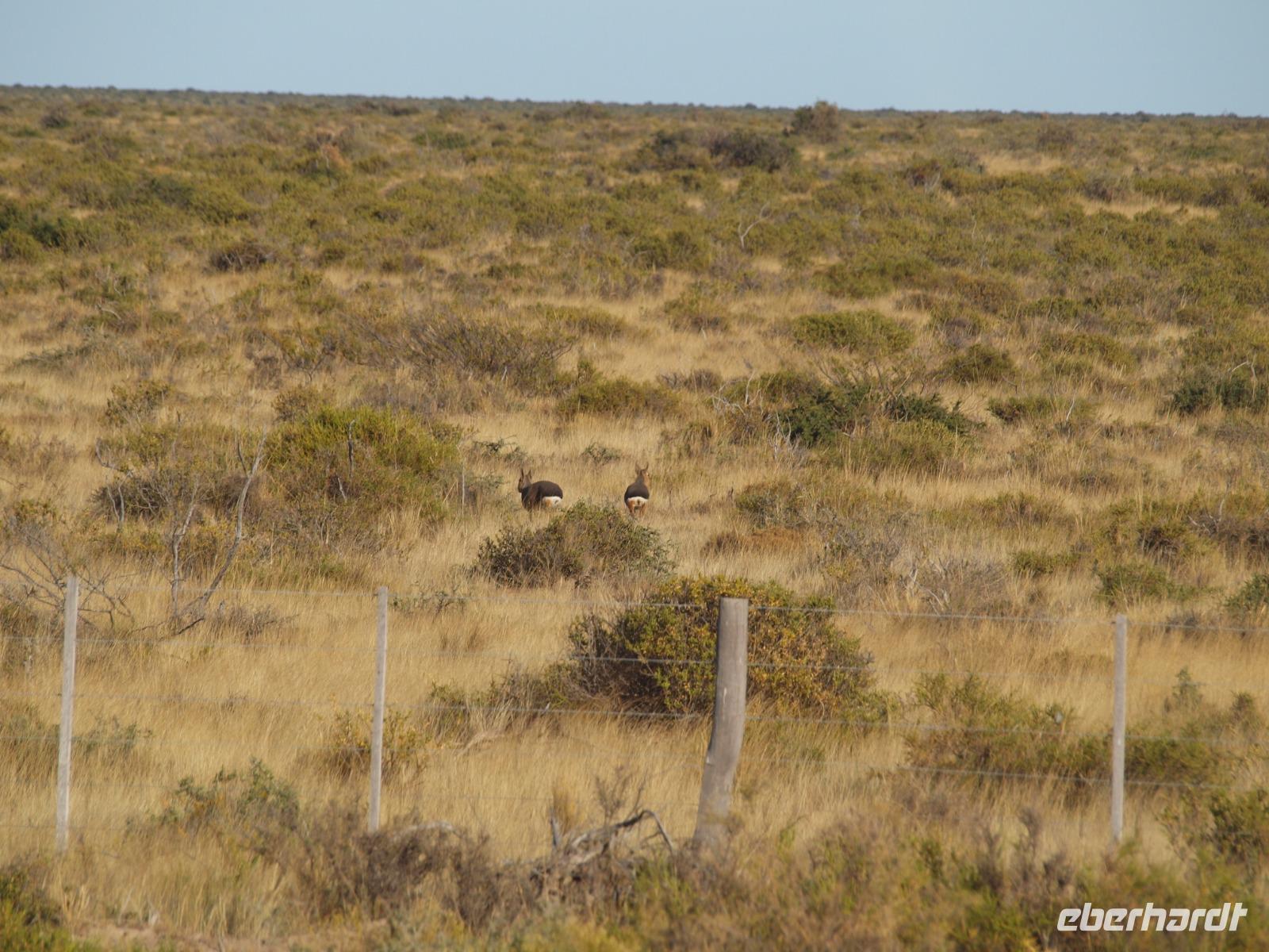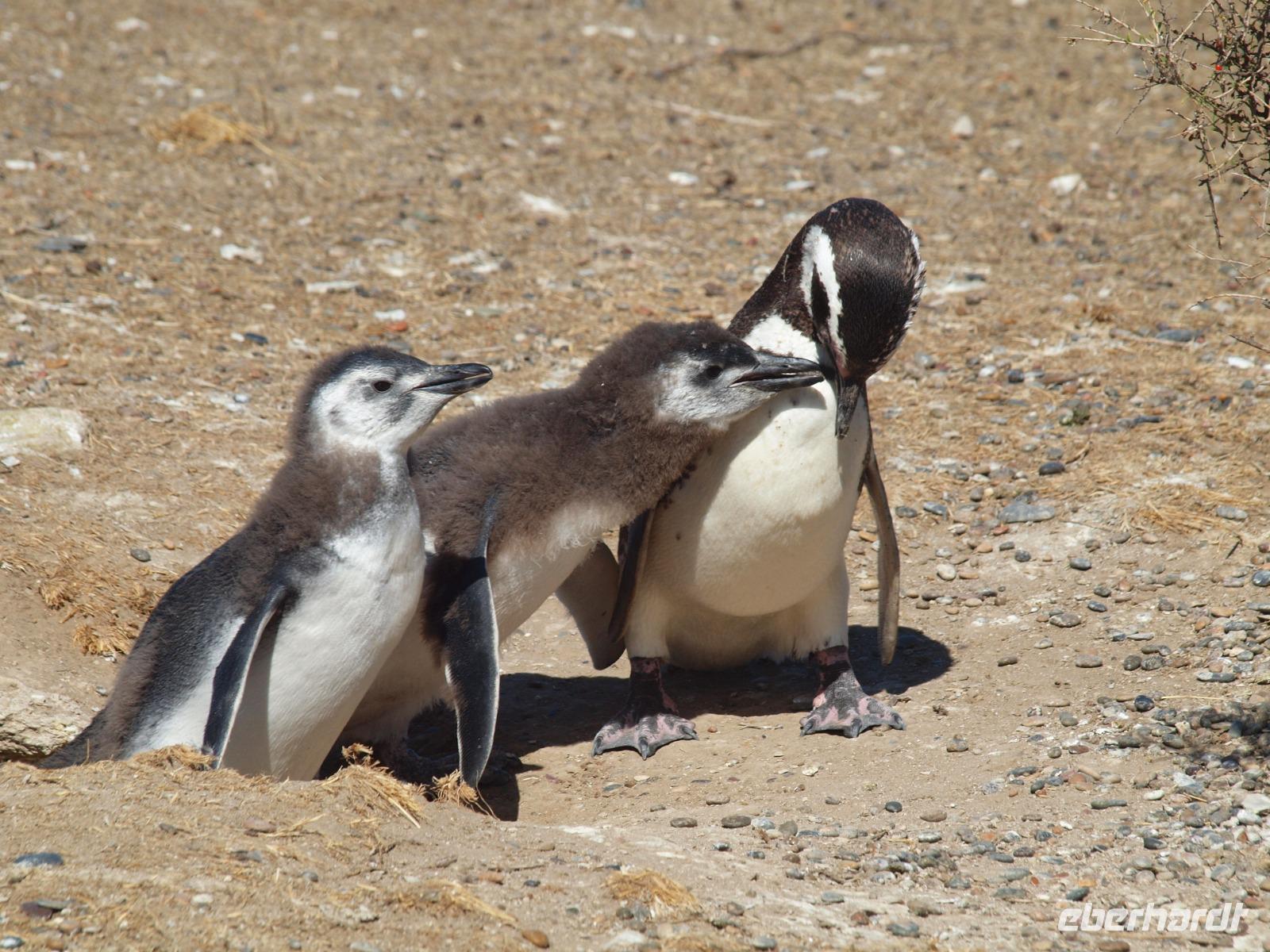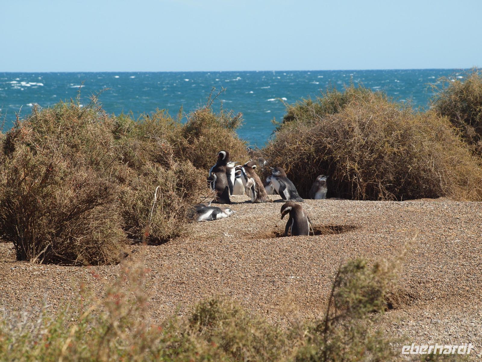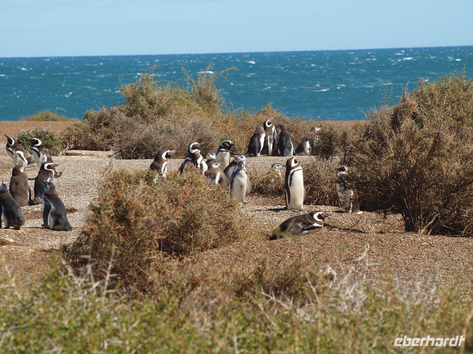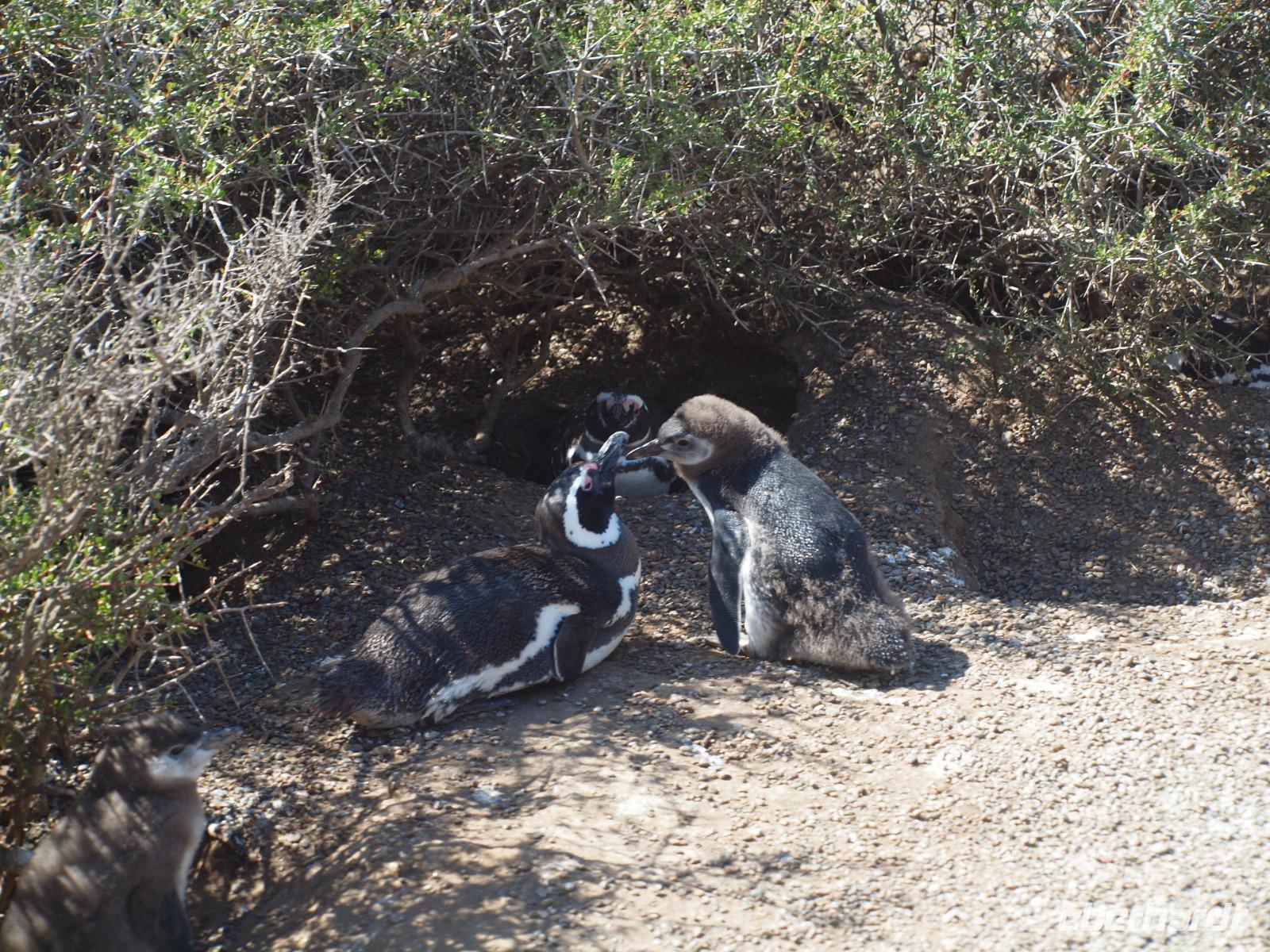 Nach einem sehr frühen Frühstück an Bord, stehen wir pünktlich zum Verlassen des Schiffes bereit. An Land wartet bereits unsere Reiseleiterin Vanessa auf uns und wir gehen gemeinsam den Pier entlang, bis zum Bus. Gemeinsam fahren wir hinaus aus der Stadt und auf die Halbinsel Valdes. Bevor wir die feste geteerte Straße verlassen, stoppen wir noch am Besucherzentrum und schlendern durch den kleinen Laden, sowie die kleine Ausstellung über Wale, inklusive Skelett eines Glattwales. Weiter geht es quasi querfeldein, über unbefestigte Straßen immer weiter Richtung Norden nach San Lorenzo. Wir haben heute besonders viel Glück und sehen während der Fahrt schon sehr viele Tiere, nicht zuletzt dank der scharfen Augen unseres Fahrers. Zuerst entdecken wir im Gebüsch die Riesenmeerschweinchen, Nara genannt, etwas später, zwischen den Merinoschafen auch noch Guanacos, aus der Familie der Lamas. Besonders selten sieht man wohl den kleinen grauen Fuchs und die tagaktiven Eulen, die in Erdhöhlen wohnen... Naja, was sollen wir sagen, Glück gehabt? Wenig später erreichen wir dann das Anwesen San Lorenzo, dort steigen wir dann in einen schmaleren Truck und fahren zur Kolonie, schon auf dem Weg dorthin beginnt das Pinguingebiet und dicht neben der Straße sehen wir die kleinen schwarzweißen Frackträger. Wir unternehmen einen ausgiebigen Spaziergang durch die Kolonie. Immer wieder kreuzen sich die Wege und hier gilt besonders eine Regel: Pinguine haben Vorfahrt!
