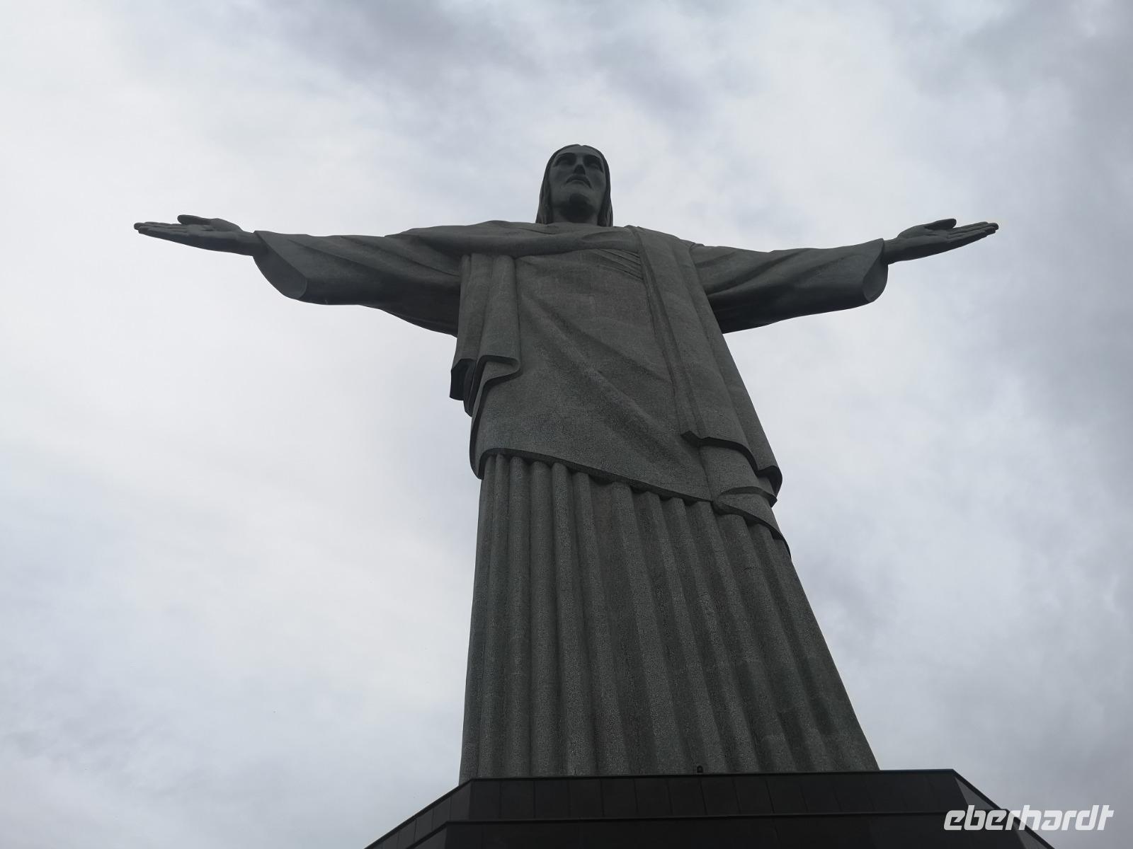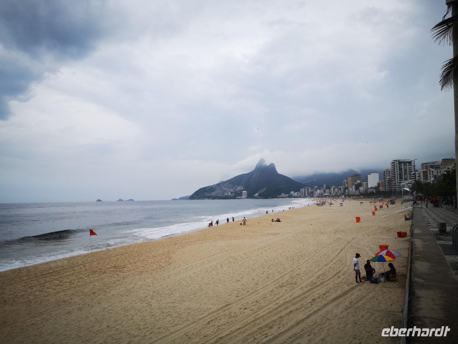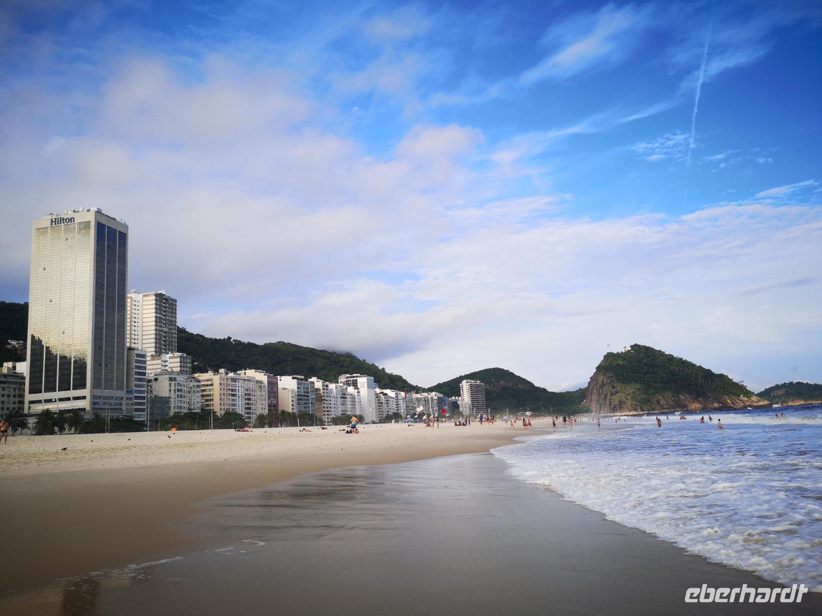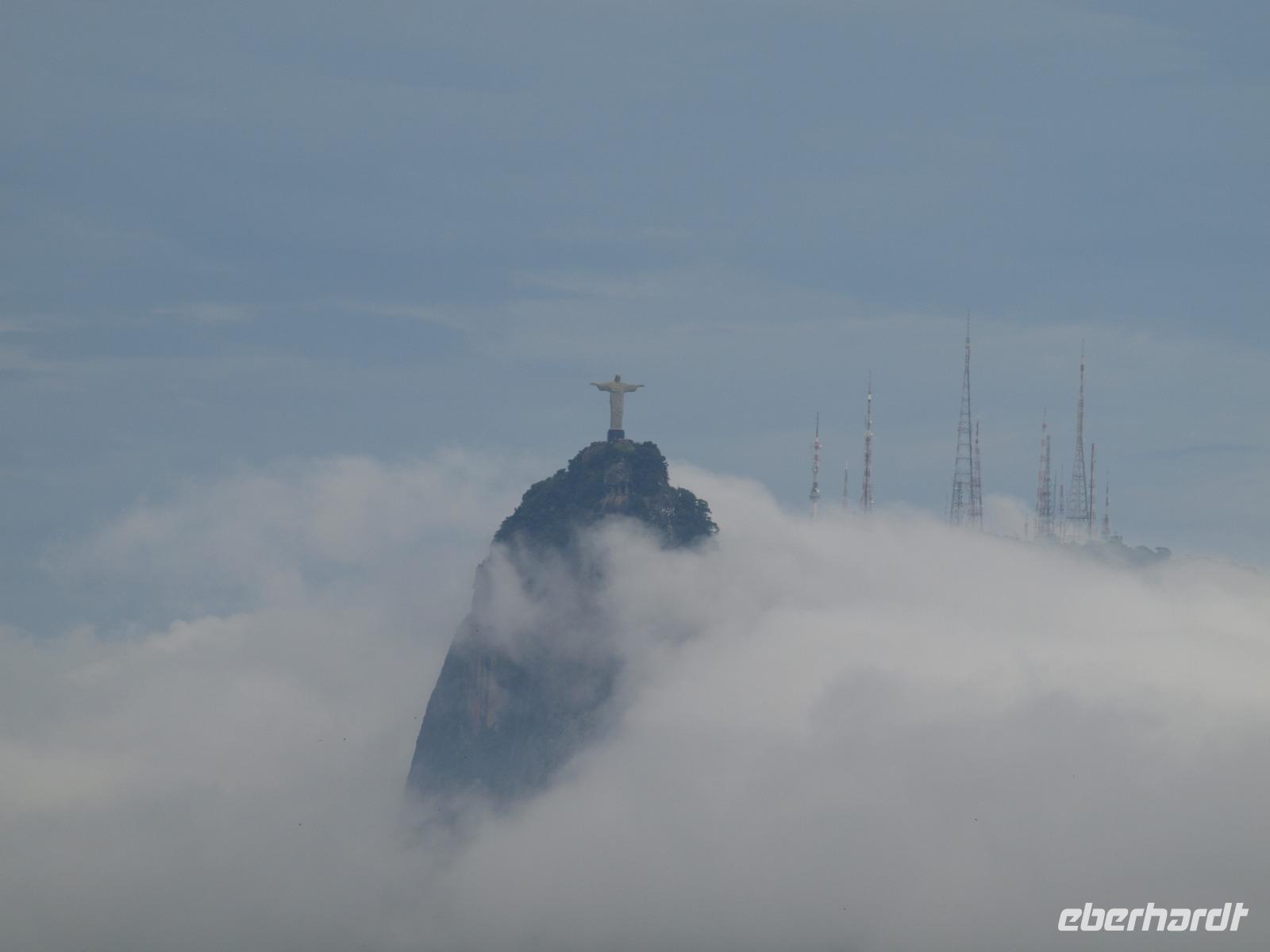 Unsere Stadtrundfahrt beginnt mit der Auffahrt zum Cristo Rei, dem Corcovado. Von hier oben hat man einen einmaligen Blick, zum einen auf Jesus, zum anderen auf Rio. Immer wieder ziehen Nebelschwaden durchs Bild und verleiht dem Anblick etwas Mystisches, Malerisches. Unser nächstes Ziel ist die Kathedrale San Sebastian von Rio de Janeiro. Sie wurde in einem modernen, brutalen Stil entworfen, der aber auch auf dem Maya-Baustil der Pyramiden basiert. Besonders beeindruckend sind die vier geradlinigen Glasfenster, welche 64 Meter vom Boden bis zur Decke empor ragen. Etwas weiter erreichen wir die „spanische" Treppe Rios - die Escadaria Selarón. Johannes dreht noch ein paar Runden um die wichtigsten Gebäude der Stadt und endet schließlich am weltberühmten Maracana Stadion - welch ein Gefühl das wohl damals gewesen sein muss... Am Nachmittag sind wir zurück im Hotel und verbringen die freie Zeit am Strand. Später treffen wir uns zum Abendessen im Hotel wieder und lassen den Abend gemeinsam an der Poolbar auf dem Dach des Hotels ausklingen.