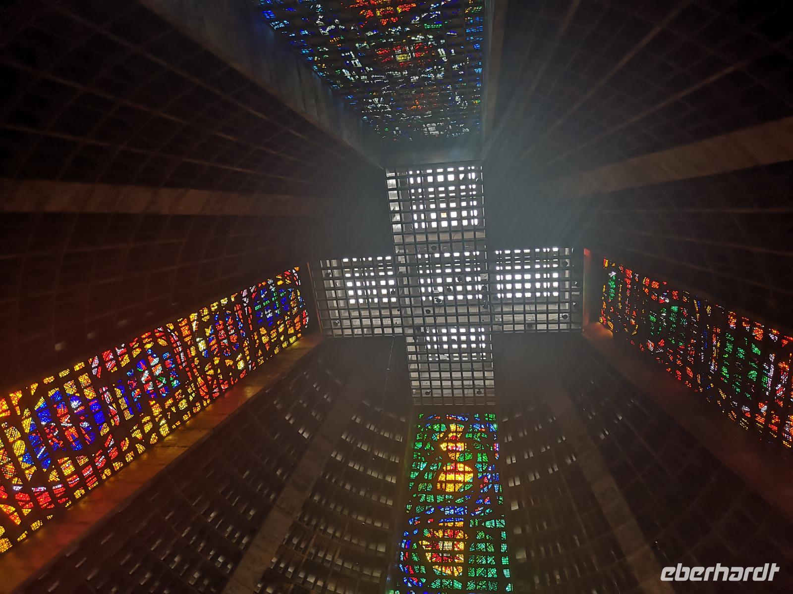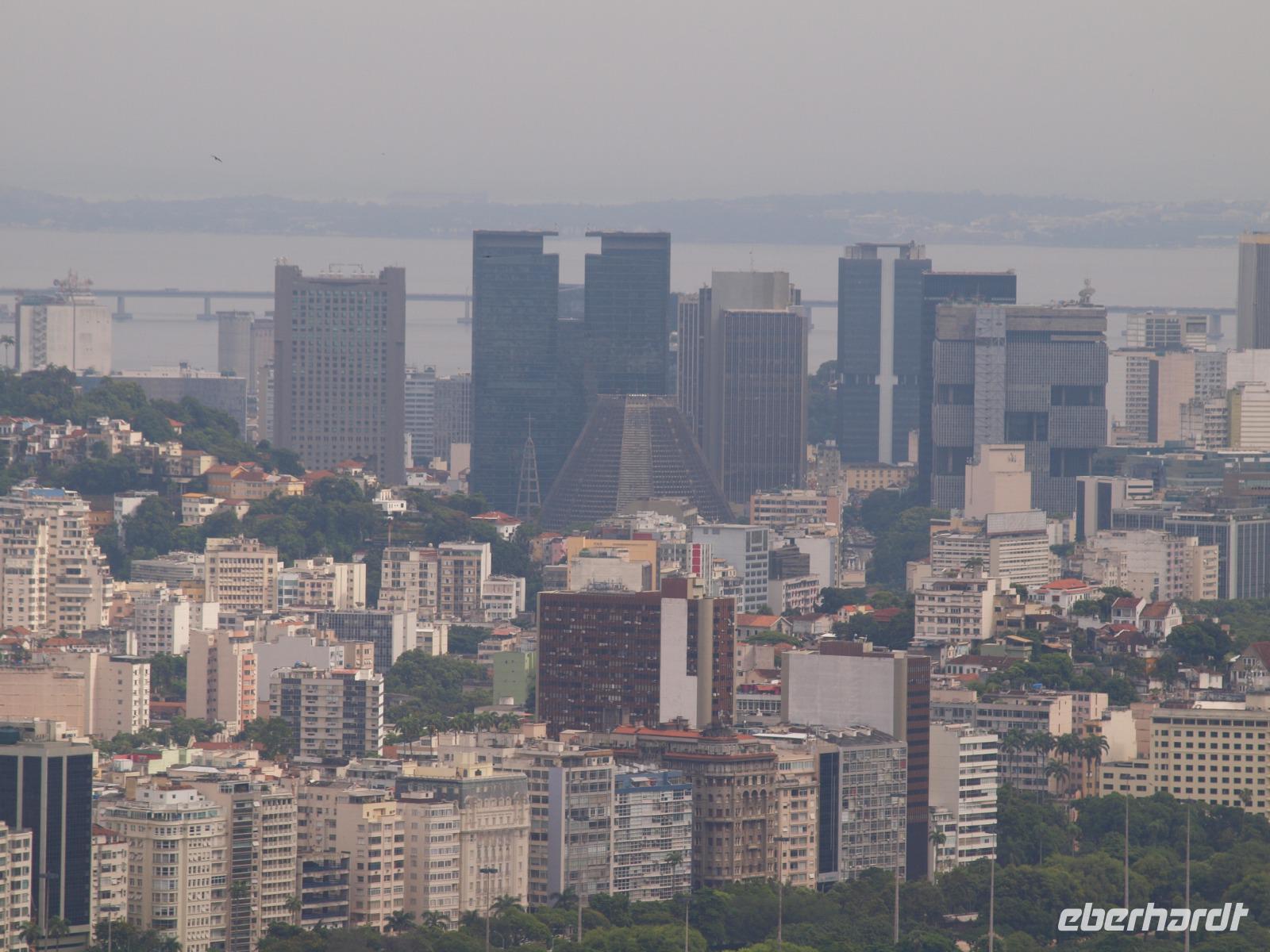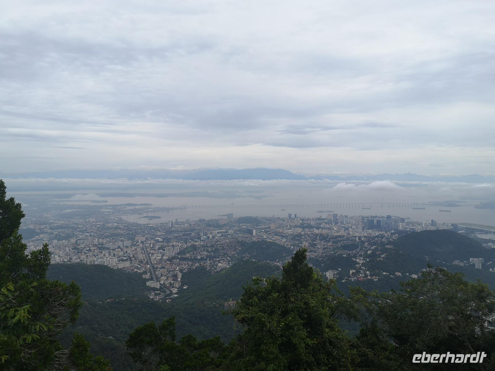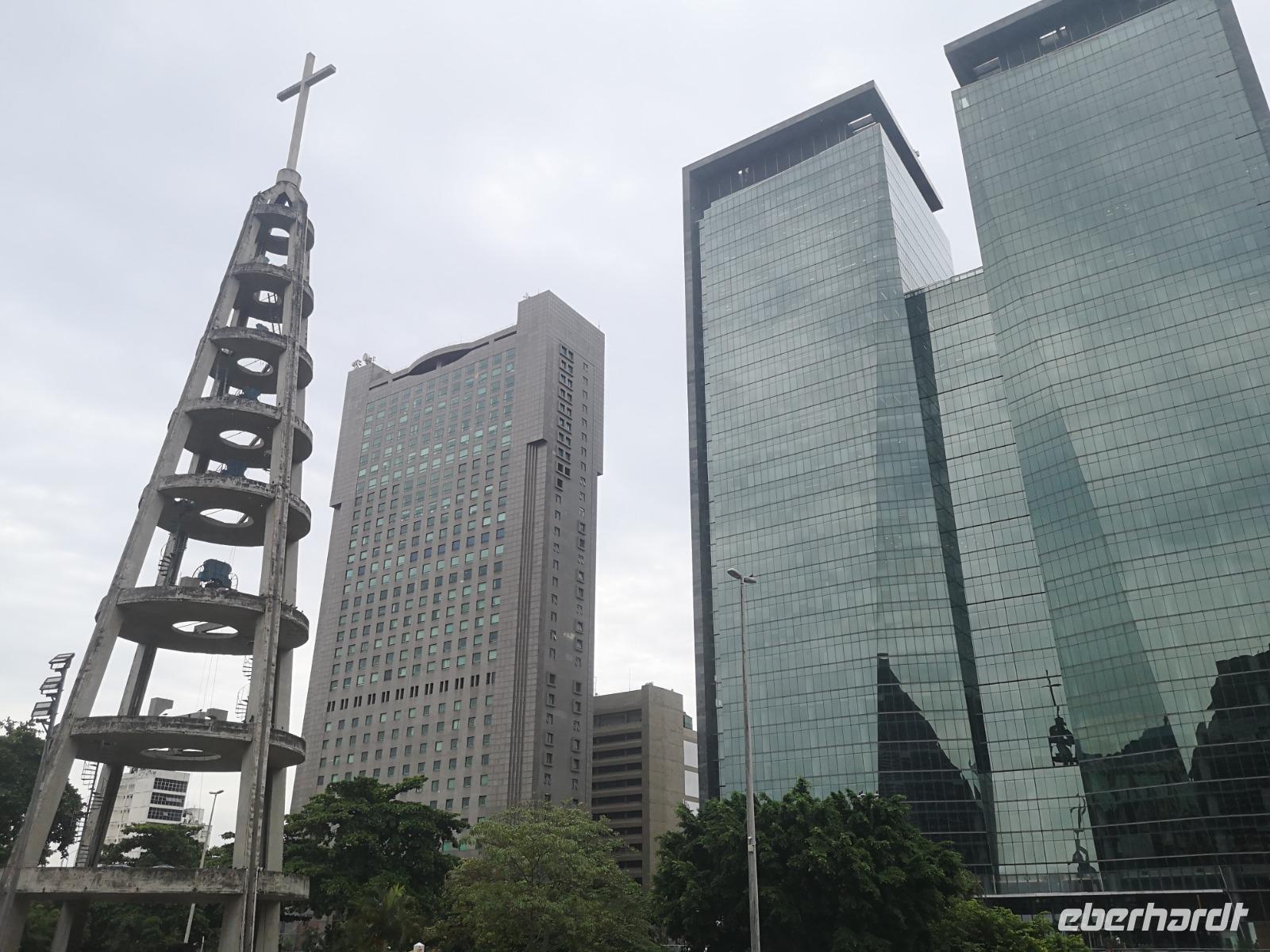 Unsere Stadtrundfahrt beginnt mit der Auffahrt zum Cristo Rei, dem Corcovado. Von hier oben hat man einen einmaligen Blick, zum einen auf Jesus, zum anderen auf Rio. Immer wieder ziehen Nebelschwaden durchs Bild und verleiht dem Anblick etwas Mystisches, Malerisches. Unser nächstes Ziel ist die Kathedrale San Sebastian von Rio de Janeiro. Sie wurde in einem modernen, brutalen Stil entworfen, der aber auch auf dem Maya-Baustil der Pyramiden basiert. Besonders beeindruckend sind die vier geradlinigen Glasfenster, welche 64 Meter vom Boden bis zur Decke empor ragen. Etwas weiter erreichen wir die „spanische" Treppe Rios - die Escadaria Selarón. Johannes dreht noch ein paar Runden um die wichtigsten Gebäude der Stadt und endet schließlich am weltberühmten Maracana Stadion - welch ein Gefühl das wohl damals gewesen sein muss... Am Nachmittag sind wir zurück im Hotel und verbringen die freie Zeit am Strand. Später treffen wir uns zum Abendessen im Hotel wieder und lassen den Abend gemeinsam an der Poolbar auf dem Dach des Hotels ausklingen.