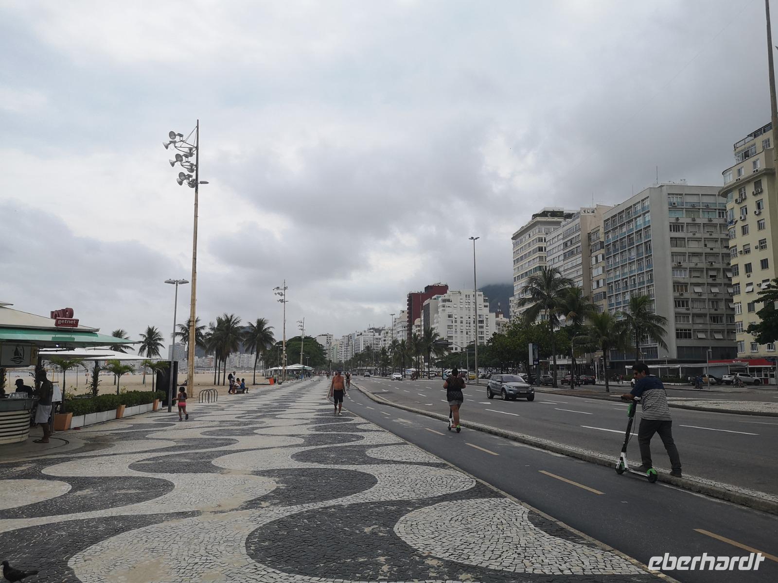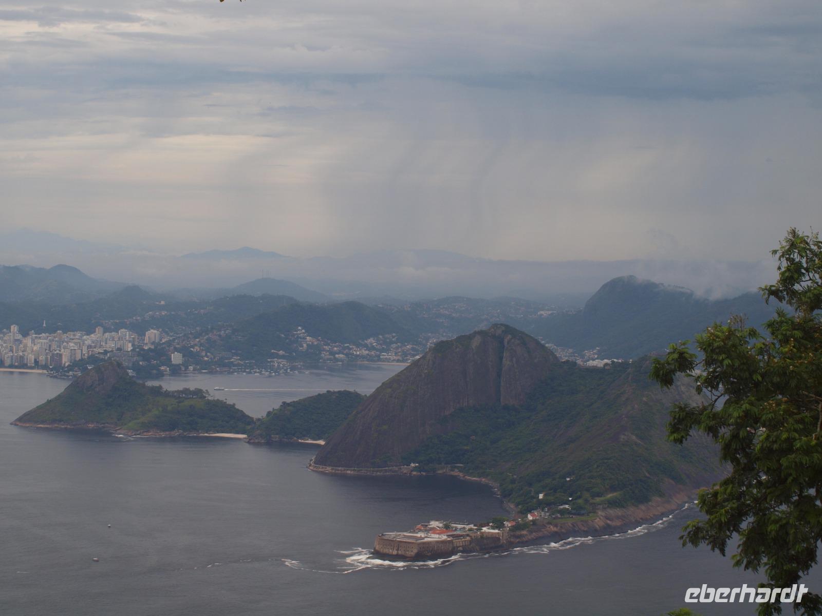 Bevor wir nach Rio fliegen, schauen wir uns die Wasserfälle noch von der brasilianischen Seite aus an, doch vorher gibt es für wagemutige noch die Chance, dieses Naturwunder aus der Luft zu bestaunen, nämlich vom Helikopter aus. Im Nationalpark auf der brasilianischen Seite führt uns wieder ein sehr gut ausgebauter Spazierweg zu den Wasserfällen. Immer wieder müssen wir einfach anhalten und diese einmalige Kulisse aus jedem Winkel festhalten. Begleitet werden wir auch heute wieder teilweise von den neugierigen Nasenbären, aber auch die eine oder andere große Eidechse lauert auf dem Weg. Und dann stehen wir und jede Menge andere Touristen vor den donnernden Wassermassen, die quasi auf uns herabfallen. Spektakulär! Wir nutzen jede Minute um diese Bilder in uns einzuspeichern. Noch eine gute Stärkung im Restaurant und dann geht's auch schon wieder zum Flughafen. Unser Flug kommt relativ pünktlich in Rio an und wir werden hier tatsächlich von einem Gewitter willkommen geheißen, wo gibt's denn sowas? Wesentlich freundlicher empfängt uns dafür unser neuer Reiseleiter Johannes. Scheinbar voller Tatendrang schafft er es die Fahrt bis zum Hotel im Fluge vergehen zu lassen, da er uns einfach schon mit ganz vielen interessanten Informationen zur Stadt und den nächsten Tagen gibt. Im Hotel angekommen, welches unweit der Copacabana liegt, beziehen wir schnell unsere Zimmer und finden uns dann beim Abendessen im Hotel wieder. Schnell noch ein paar offene Dinge besprechen und dann schließlich aufs Zimmer um sich für den kommenden Tag auszuruhen.