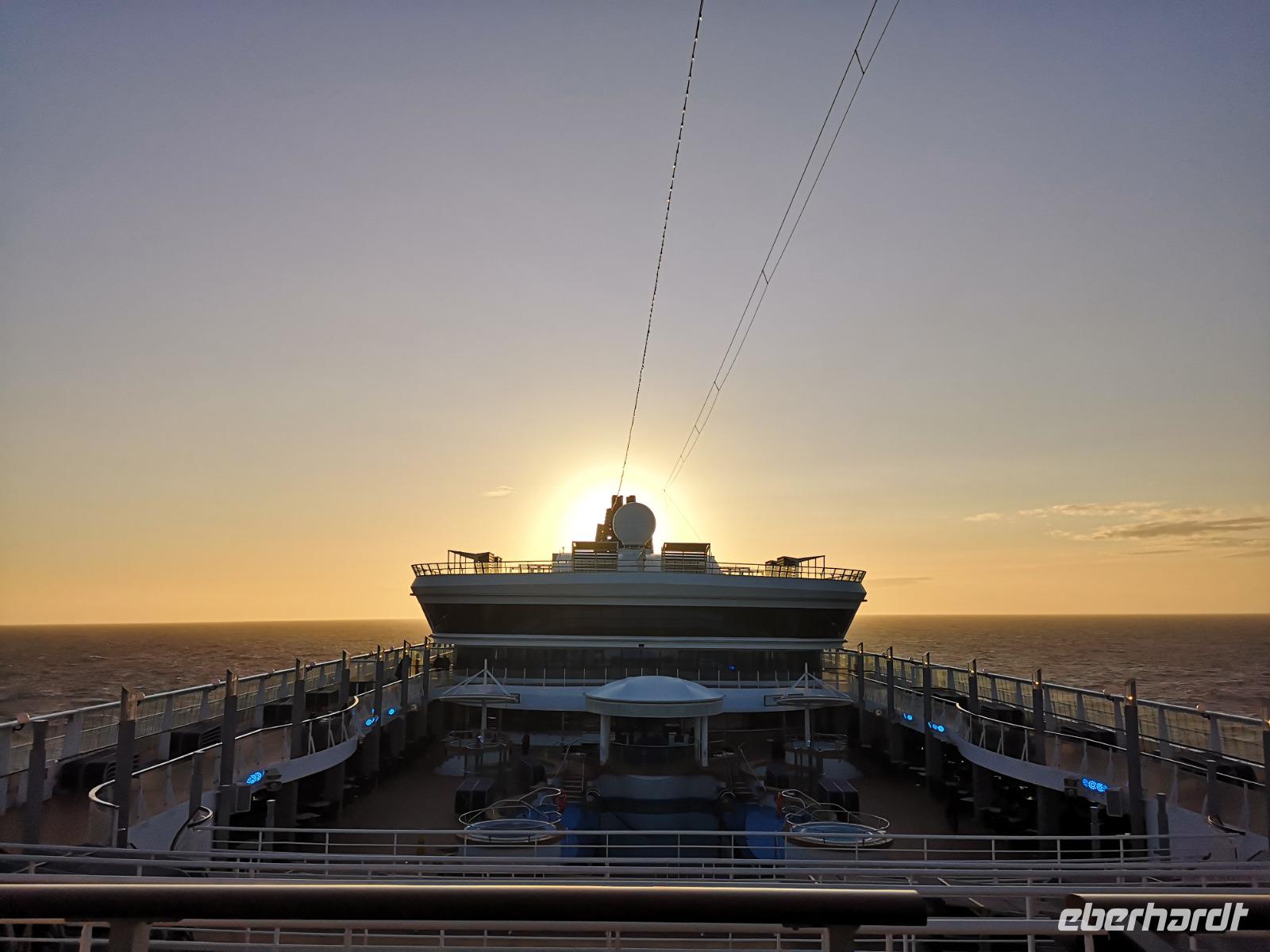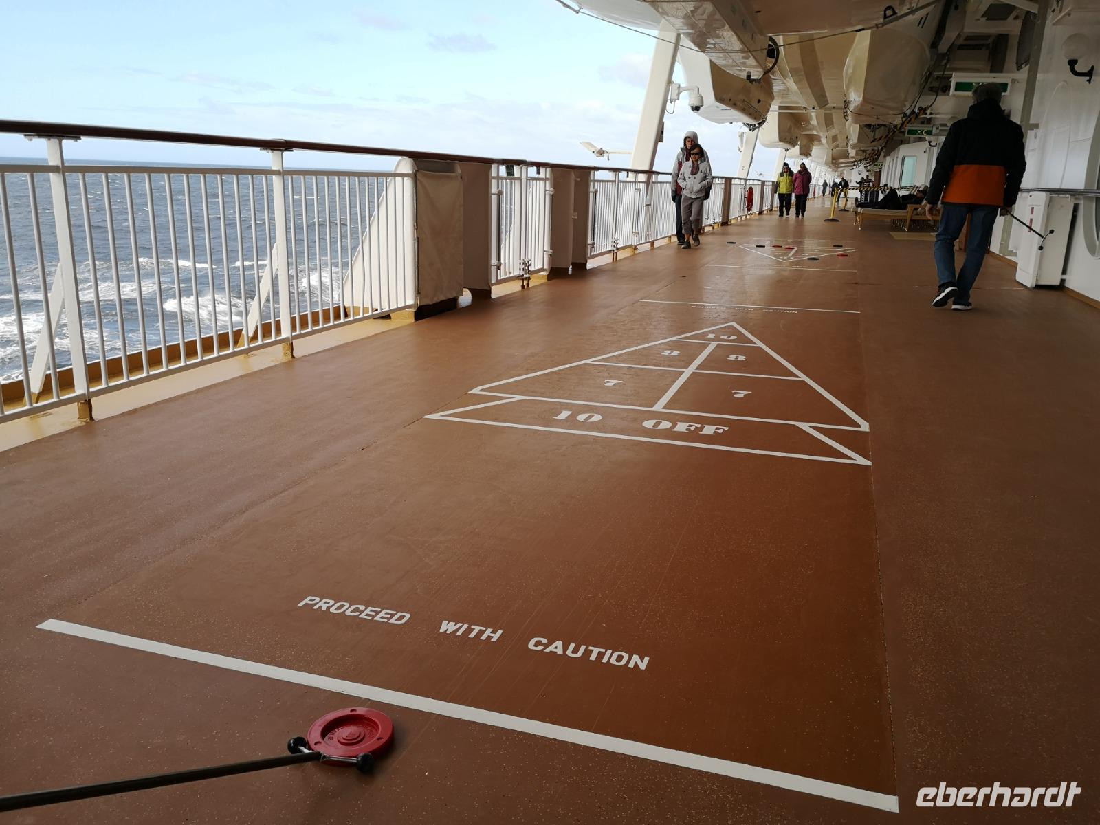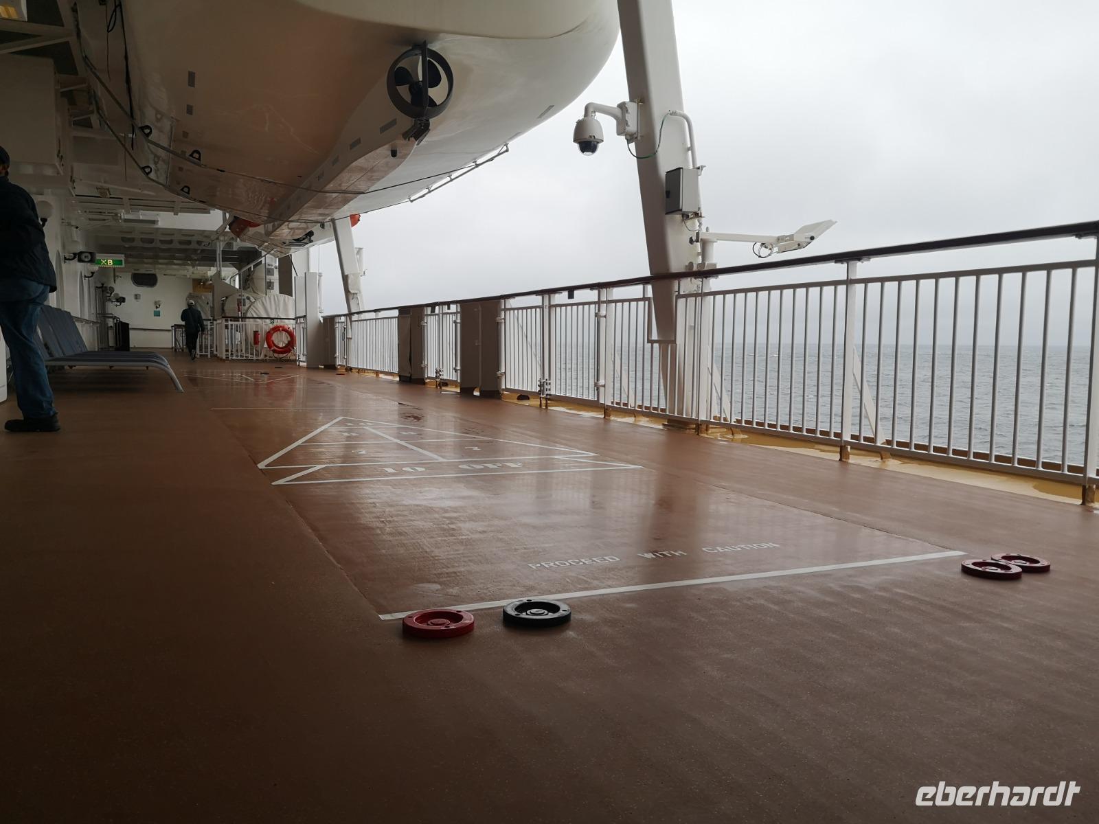 Es ist Zeit sich mit dem Thema Kofferpacken auseinanderzusetzen, aber auch um noch einmal all die Vorzüge unseres schwimmenden Hotels auszunutzen. Bei strahlendem Sonnenschein entspannt man doch am besten am Pooldeck. Eine Runde Karten und Shuffleboard und schon ist der Tag auch vorbei - beim Abendessen kommen wir wieder zusammen und besprechen so langsam die nächsten Tage...