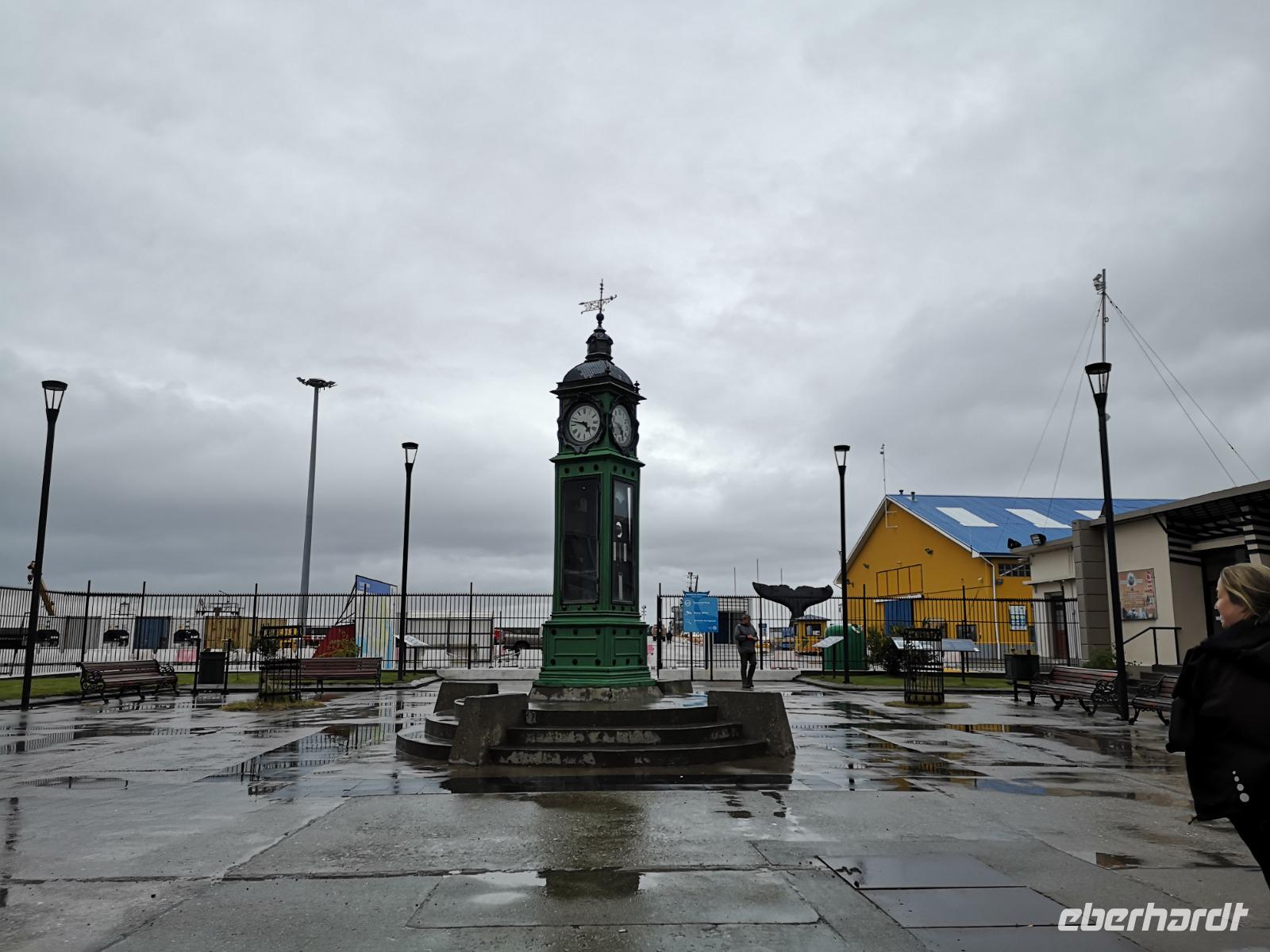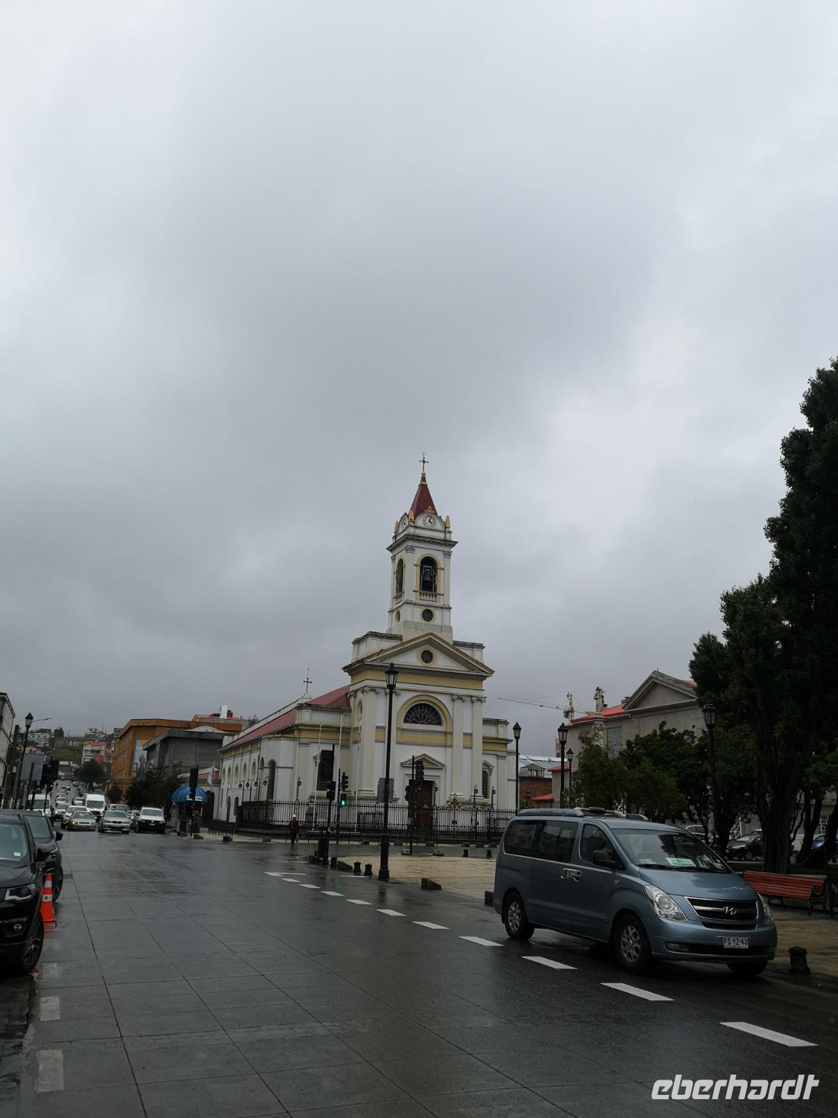 Wir erreichen am Morgen die südlichste Stadt Chiles, Punta Arenas. Leider meint es das Wetter nur kurzzeitig gut mit uns, als wir von Bord gehen wollen um die Stadt auf eigene Faust zu erkundigen, schlägt es um und wir stehen wortwörtlich im Regen. Wir erreichen das Hafenterminal und sind eigentlich schon komplett durchnässt... weiter kämpfen wir uns bis zum großen Casino und von dort einmal bis zum Hauptplatz. Hier verlässt uns dann die Zuversicht, dass es sich eventuell nur um einen kurzen Schauer handeln könnte. Wir statten noch schnell der Kathedrale einen Besuch ab, bevor wir uns endgültig auflösen und die einen den direkten Weg zum Schiff, die anderen zum warmen und trockenen Café oder Pub einschlagen. Pünktlich zum Ende des Tages hört der Regen wieder auf und wer noch an Land ist, der kann zumindest noch eine knappe Stunde in der Stadt genießen.