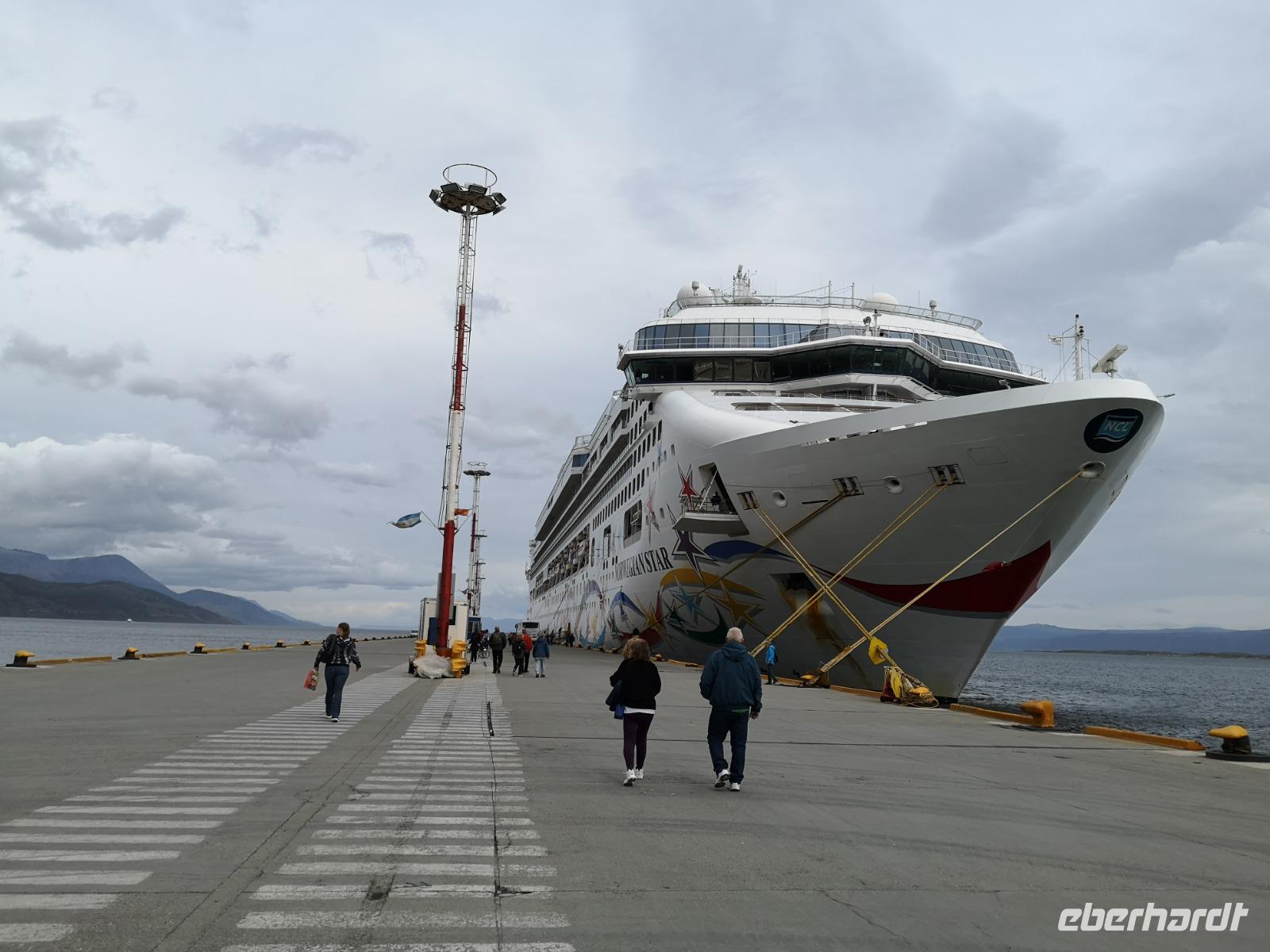 Gegen Mittag erreichen wir dann Ushuaia, Argentinien und gehen gemeinsam von Bord um an einem Ausflug in den Nationalpark Tierro del Fuego zu unternehmen. Wir gehen heute sogar einmal ohne Tenderboot von Bord und fallen direkt in unseren Bus hinein. Kurz darauf beginnt unser Ausflug. Wir fahren auf direktem Weg in den Nationalpark. Gemeinsam erkunden wir an verschiedenen Stopps den Nationalpark. Immer wieder bewundern wir die Gelassenheit unseres Fahrers beim Manövrieren des Buses. Wir überqueren schmale Brücken, fahren enge Kurven und sehen eine wundervolle Landschaft an uns vorbei ziehen. Um dem Ganzen noch näher zu sein, gibt es einige Möglichkeiten unterwegs sich die Beine zu vertreten, kleine Spaziergänge zu unternehmen und natürlich die Natur zu genießen. Ein wirklich toller Tag hier in Feuerland. Auf dem Rückweg zum Schiff steigen wir vorher noch in der Stadt aus um zu Fuß noch einmal zumindest die Hauptstraße von Ushuaia kennenzulernen. Mit vielen neuen Eindrücken sind wir am späten Nachmittag wieder zurück an Bord. Ein toller Tag am Ende der Welt geht zu Ende.
